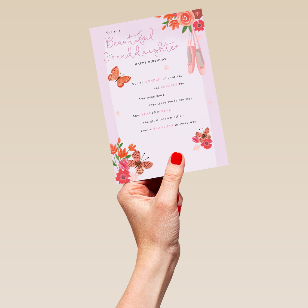 Show them you care with a personalised for granddaughter traditional birthday verse floral car... View more details