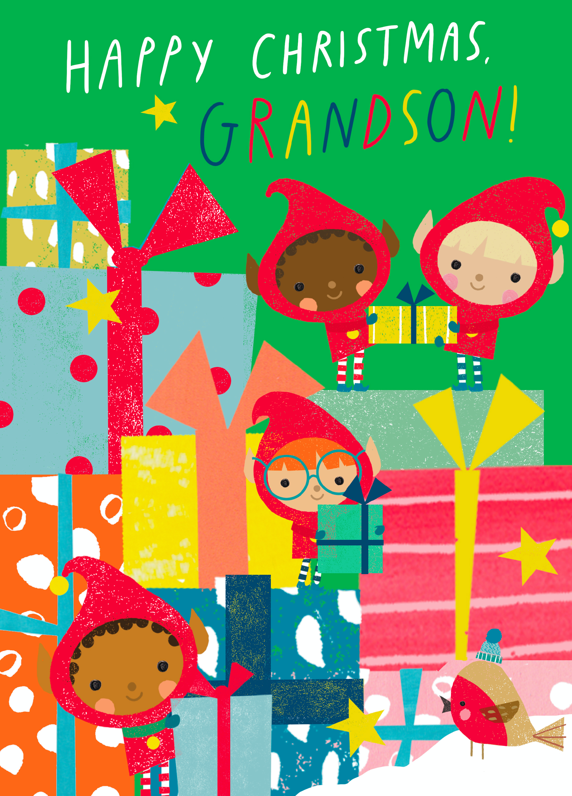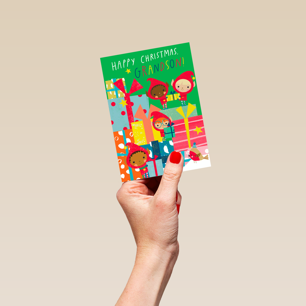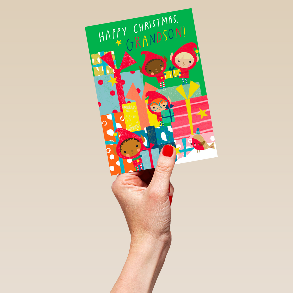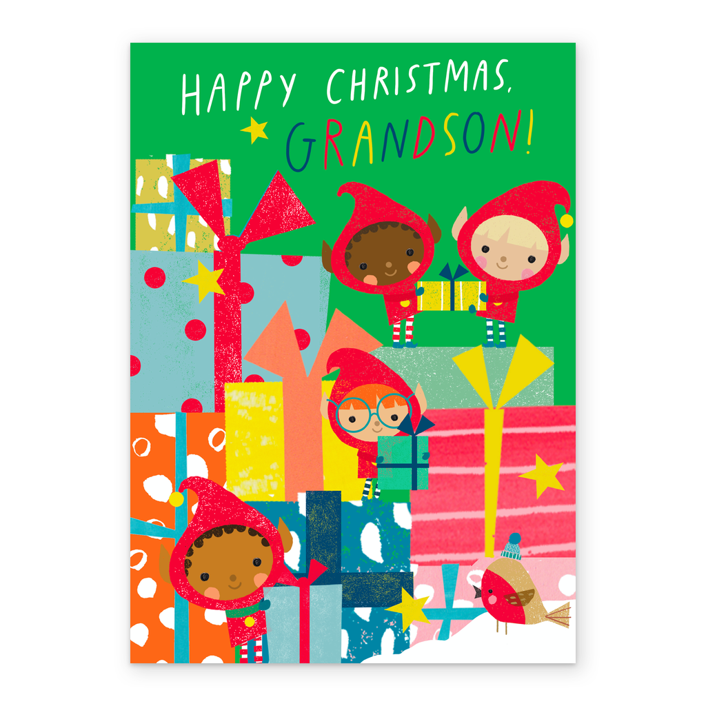 Show them you care with a personalised grandson elves card from Hallmark. Our Christmas cards are printed on premium quality, FSC®-certified card & delivered nationwide. This card is available as standard 12cm by 16.7cm and large 15.5cm by 21.6cm.