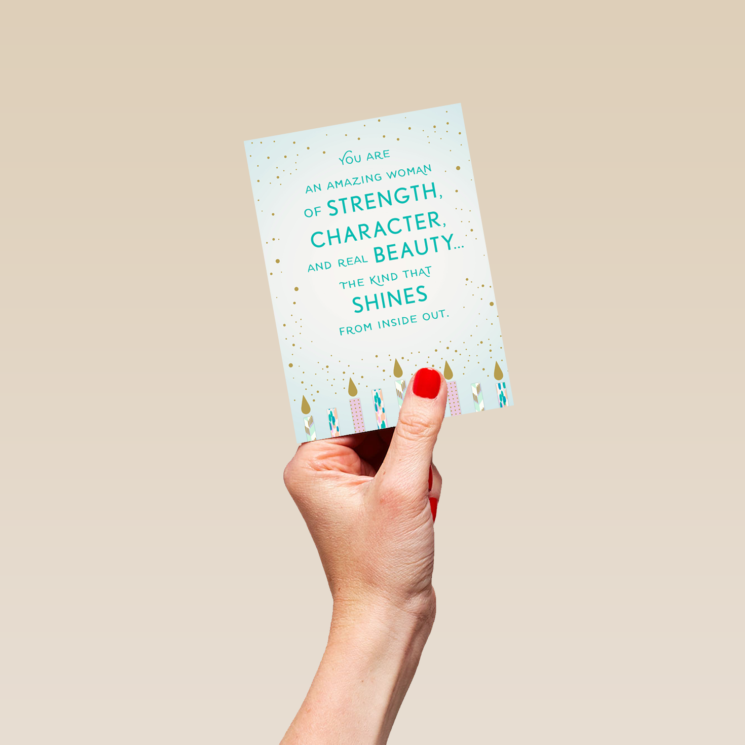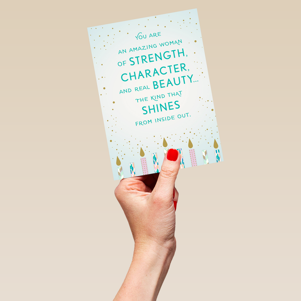 Show them you care with a personalised for her verse encouragement card from Hallmark. Our just because cards are printed on premium quality, FSC®-certified card & delivered nationwide. This card is available as standard 12cm by 16.7cm and large 15.5cm by 21.6cm.