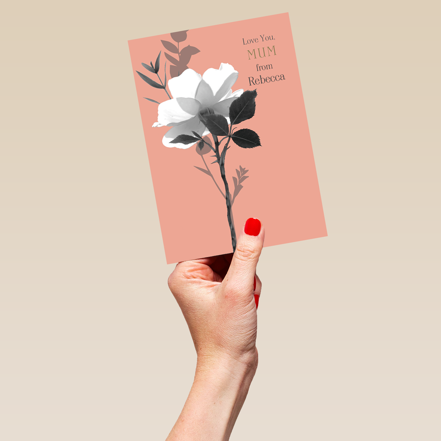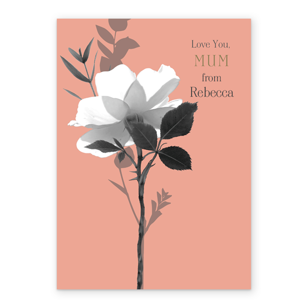 Show them you care with a personalised for mum editable classic white rose birthday card from Hallmark. Our birthday cards are printed on premium quality, FSC®-certified card & delivered nationwide. This card is available as standard 12cm by 16.7cm and large 15.5cm by 21.6cm.
