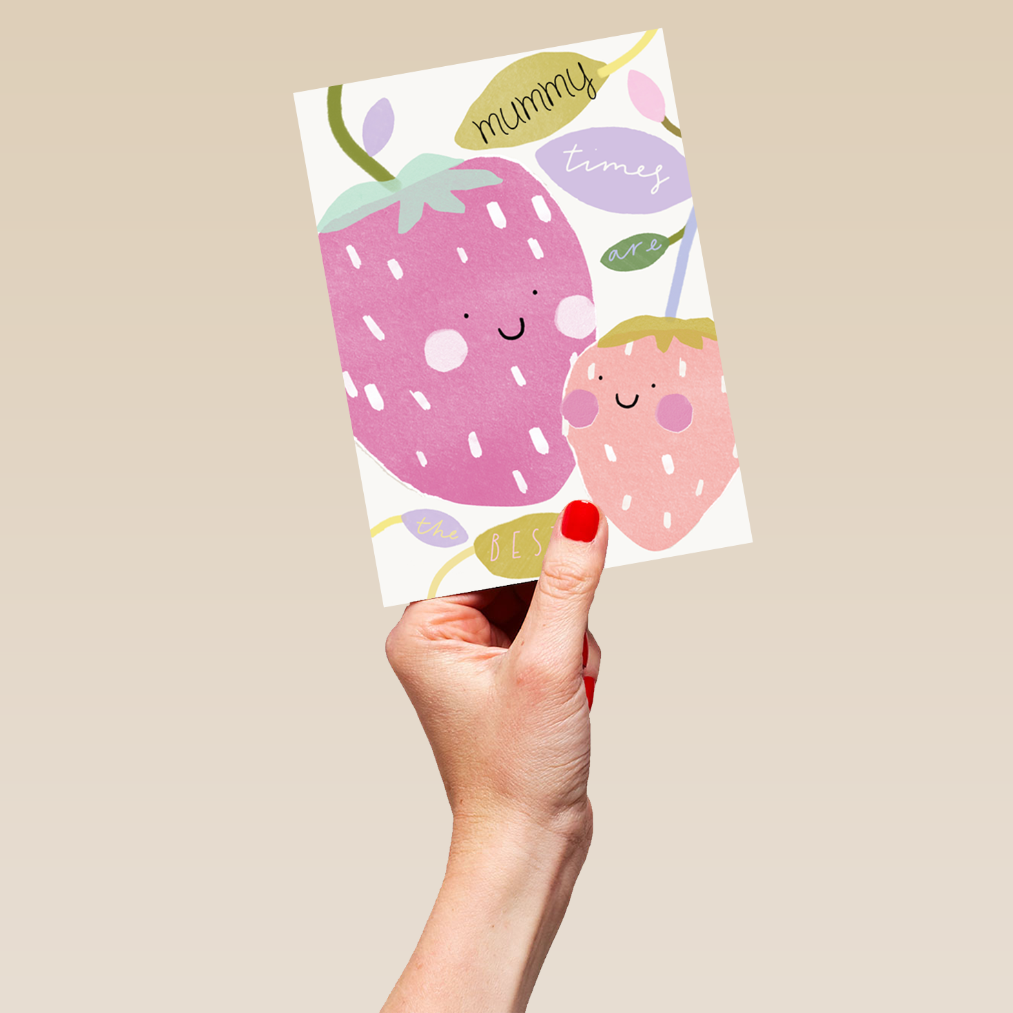 Show them you care with a personalised for mummy cute big & little strawberry birthday car... View more details
