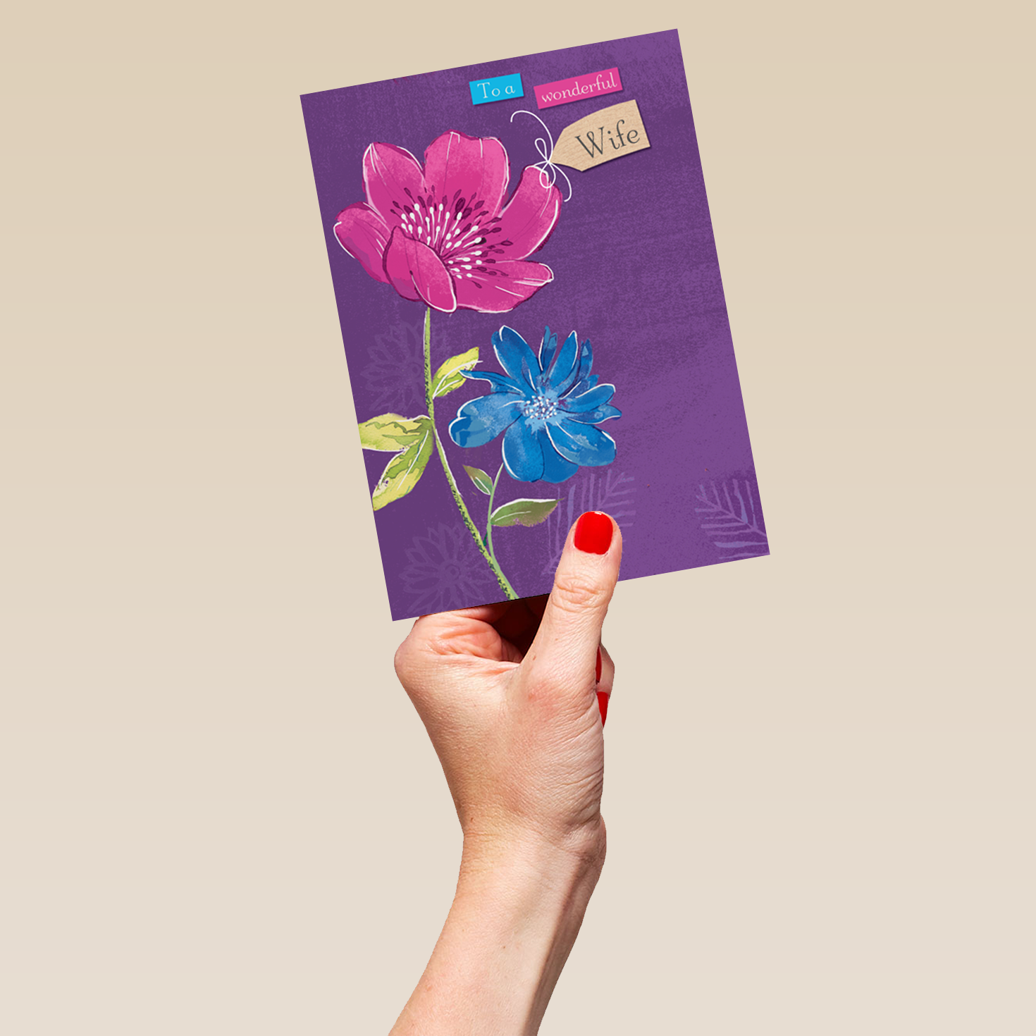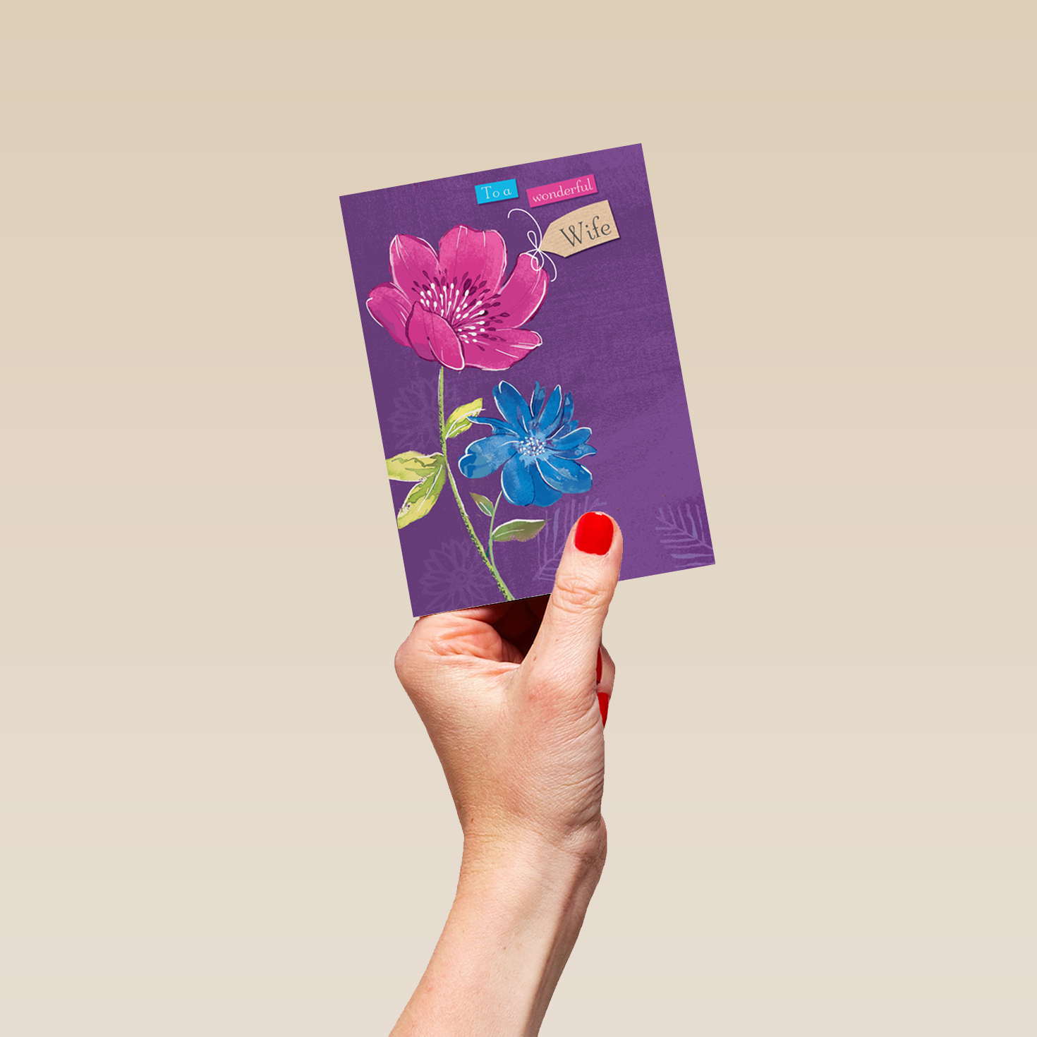 Show them you care with a personalised for wife editable classic red rose card from Hallmark. Our birthday cards are printed on premium quality, FSC®-certified card & delivered nationwide. This card is available as standard 12cm by 16.7cm and large 15.5cm by 21.6cm.