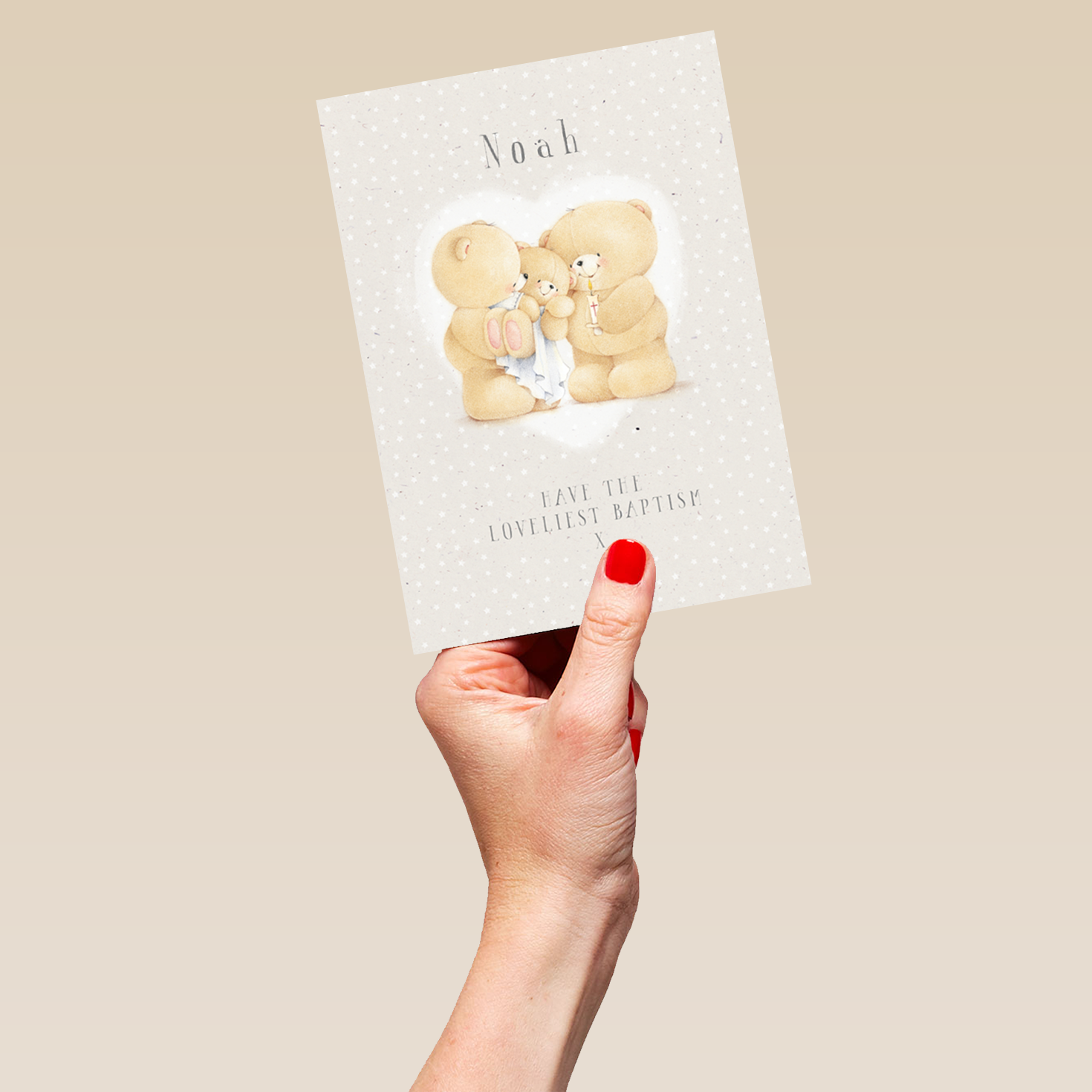 Show them you care with a personalised Forever Friends baby's baptism card from Hallmark. Our greetings cards are printed on premium quality, FSC®-certified card & delivered nationwide. This card is available as standard 12cm by 16.7cm and large 15.5cm by 21.6cm.