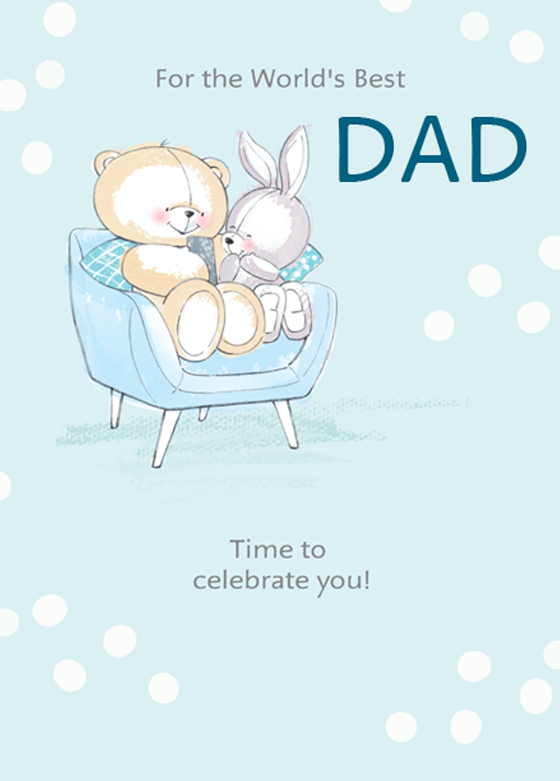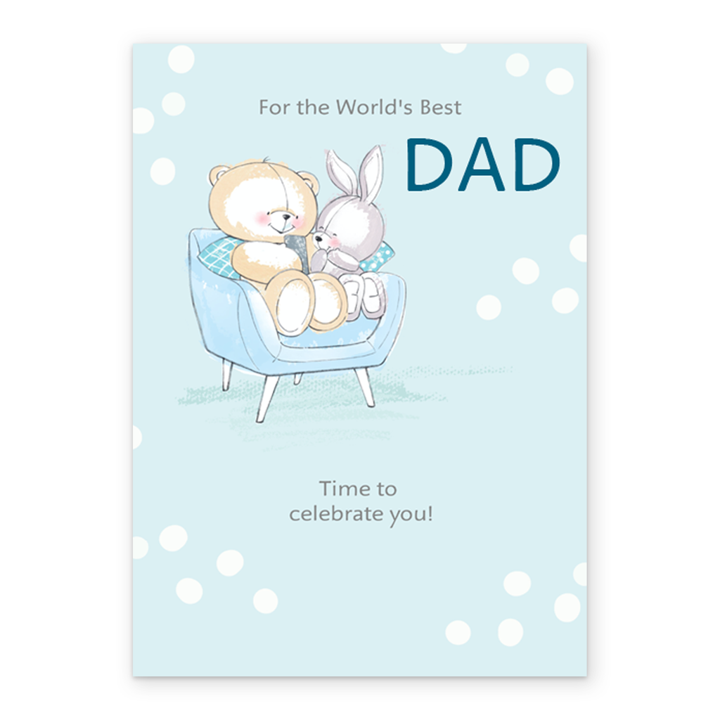 Show them you care with a personalised Forever Friends bear & bunny father's day card for dad from Hallmark. Our Father's Day cards are printed on premium quality, FSC®-certified card & delivered nationwide.This card is available as standard 12cm by 16.7cm and large 15.5cm by 21.6cm.