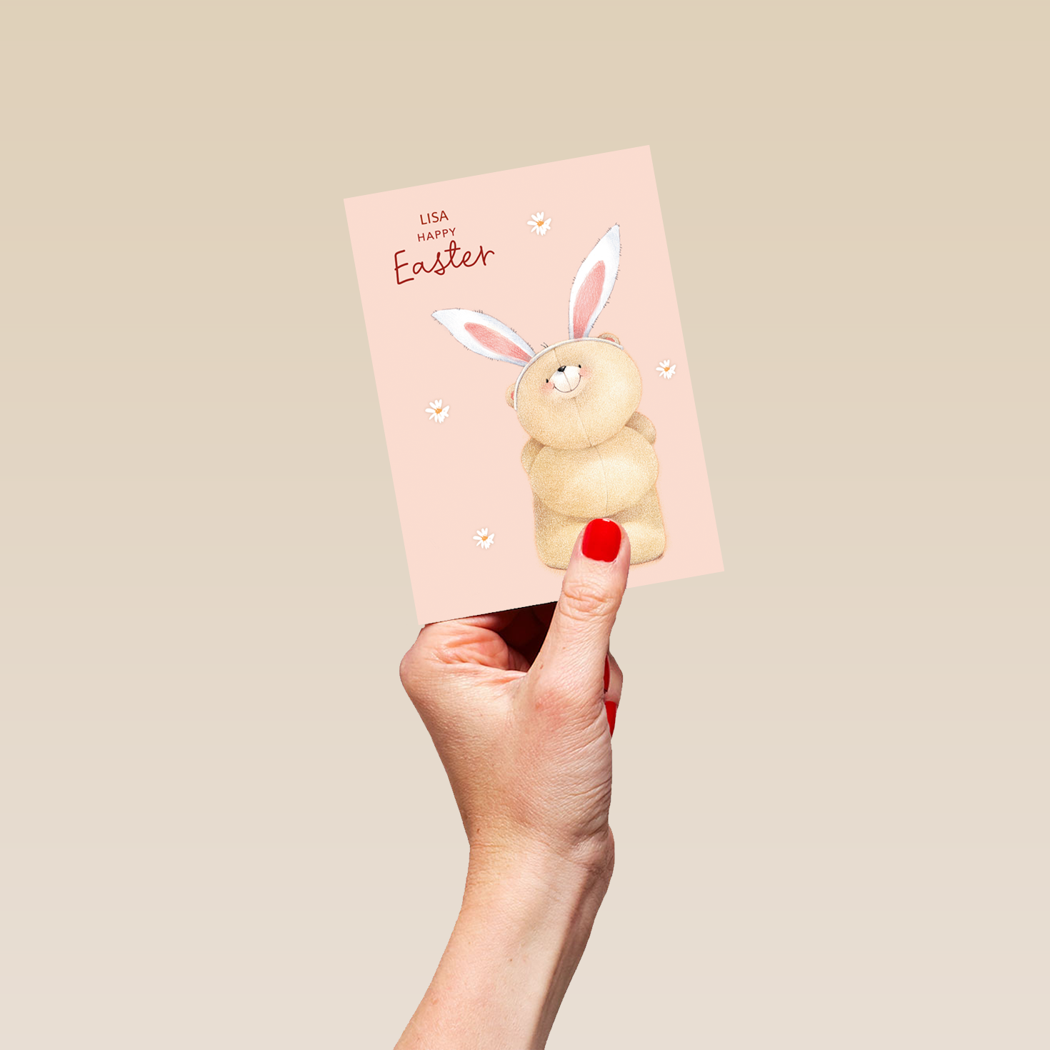 Personalised Forever Friends Bunny Ears Bear Easter Card
