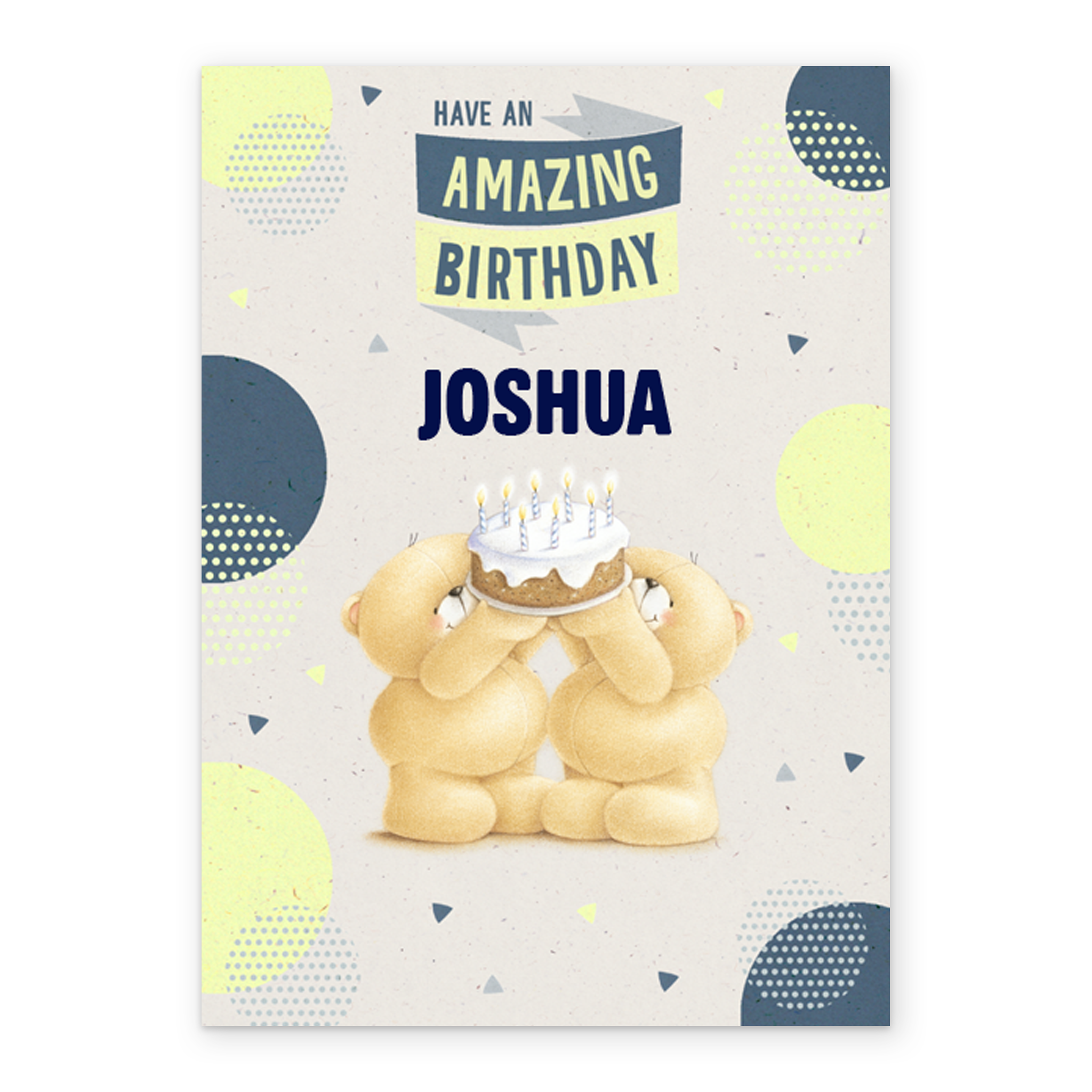 Show them you care with a personalised Forever Friends birthday card from Hallmark. Our bear cards are printed on premium quality, FSC®-certified card & delivered nationwide. This card is available as standard 12cm by 16.7cm and large 15.5cm by 21.6cm.