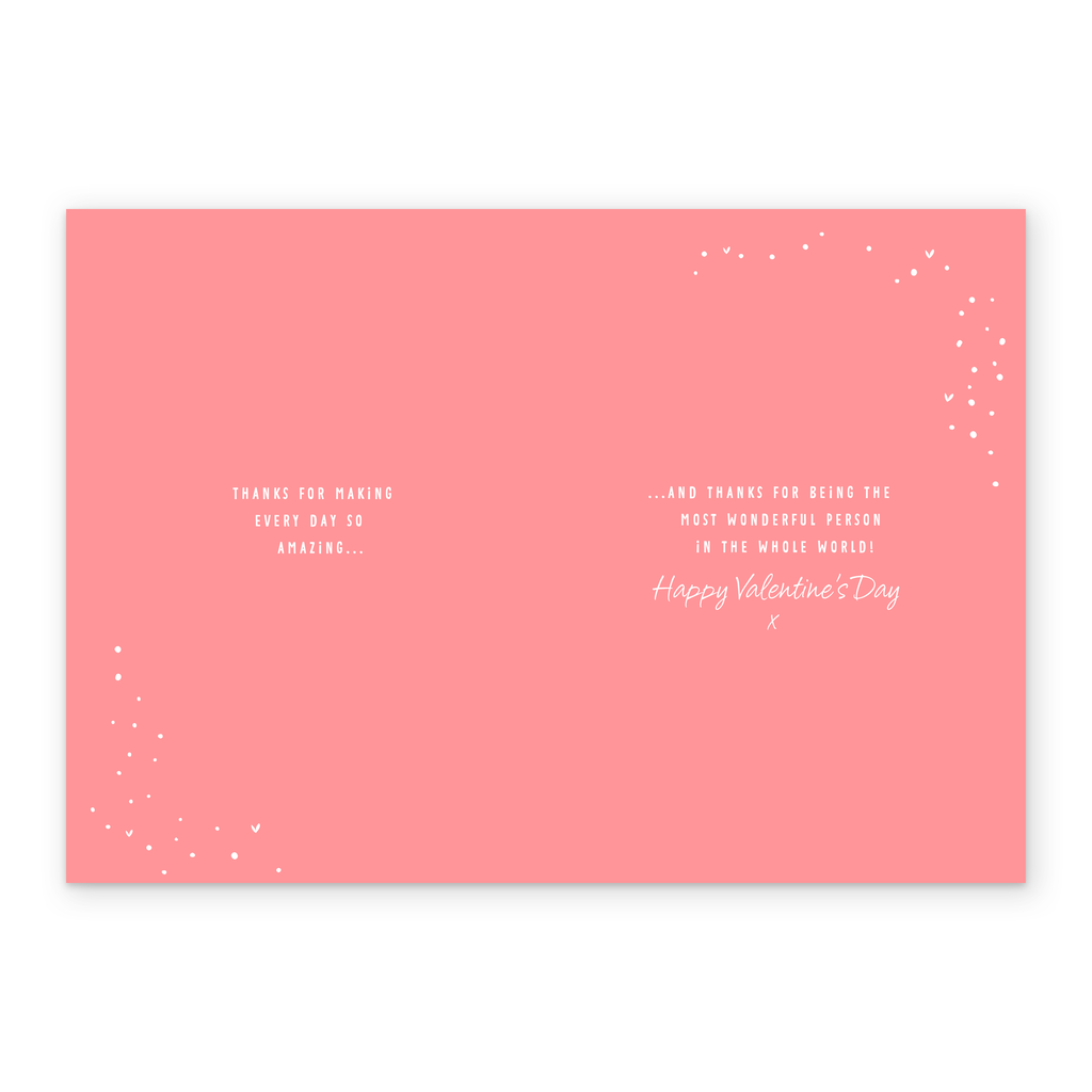 Message Inside Reads: Thanks for making every day so amazing… and thanks for being the most wonderful person in the whole world! Happy Valentine's Day x