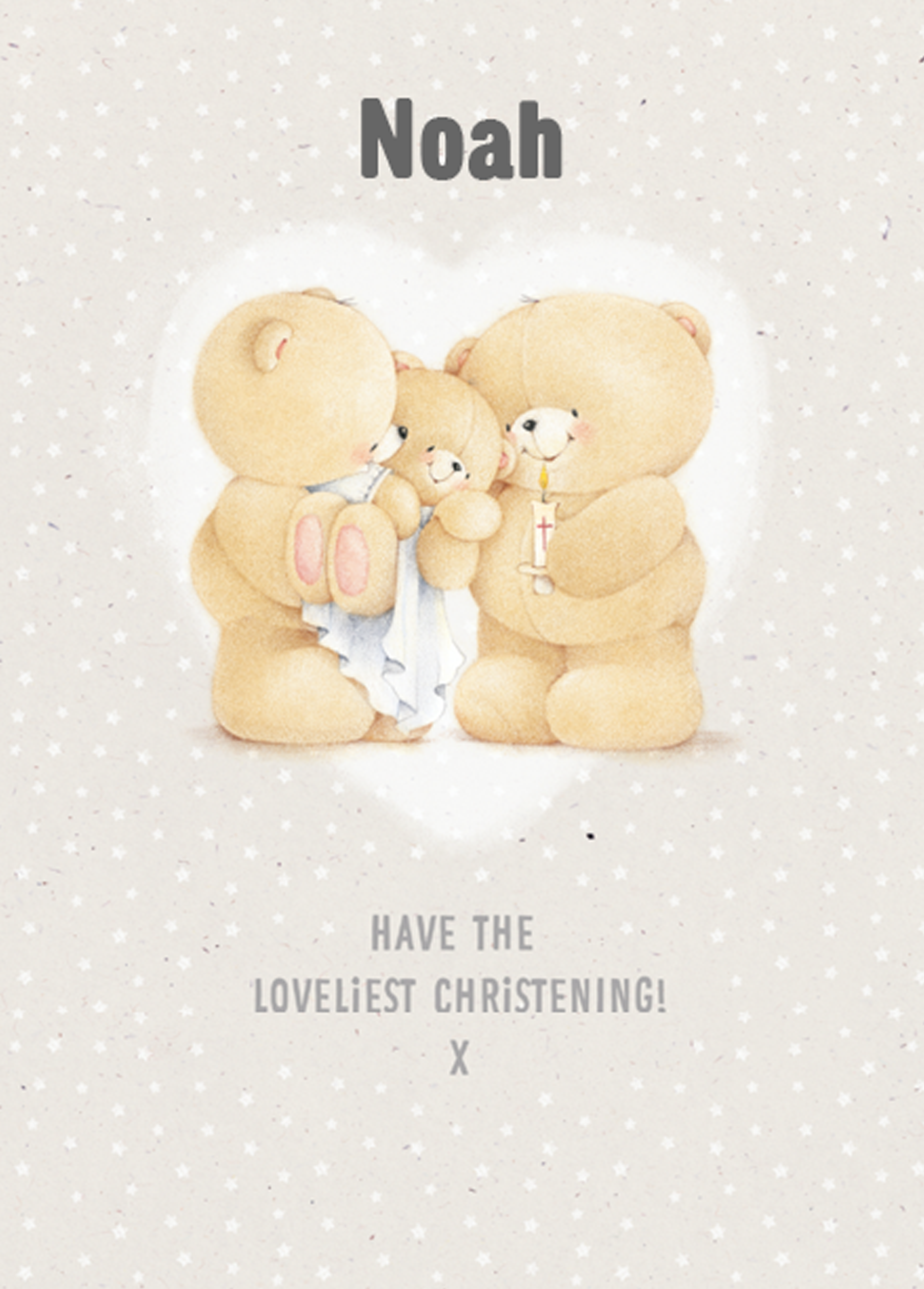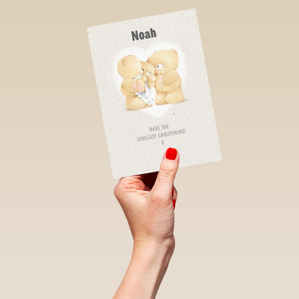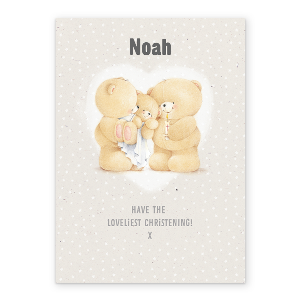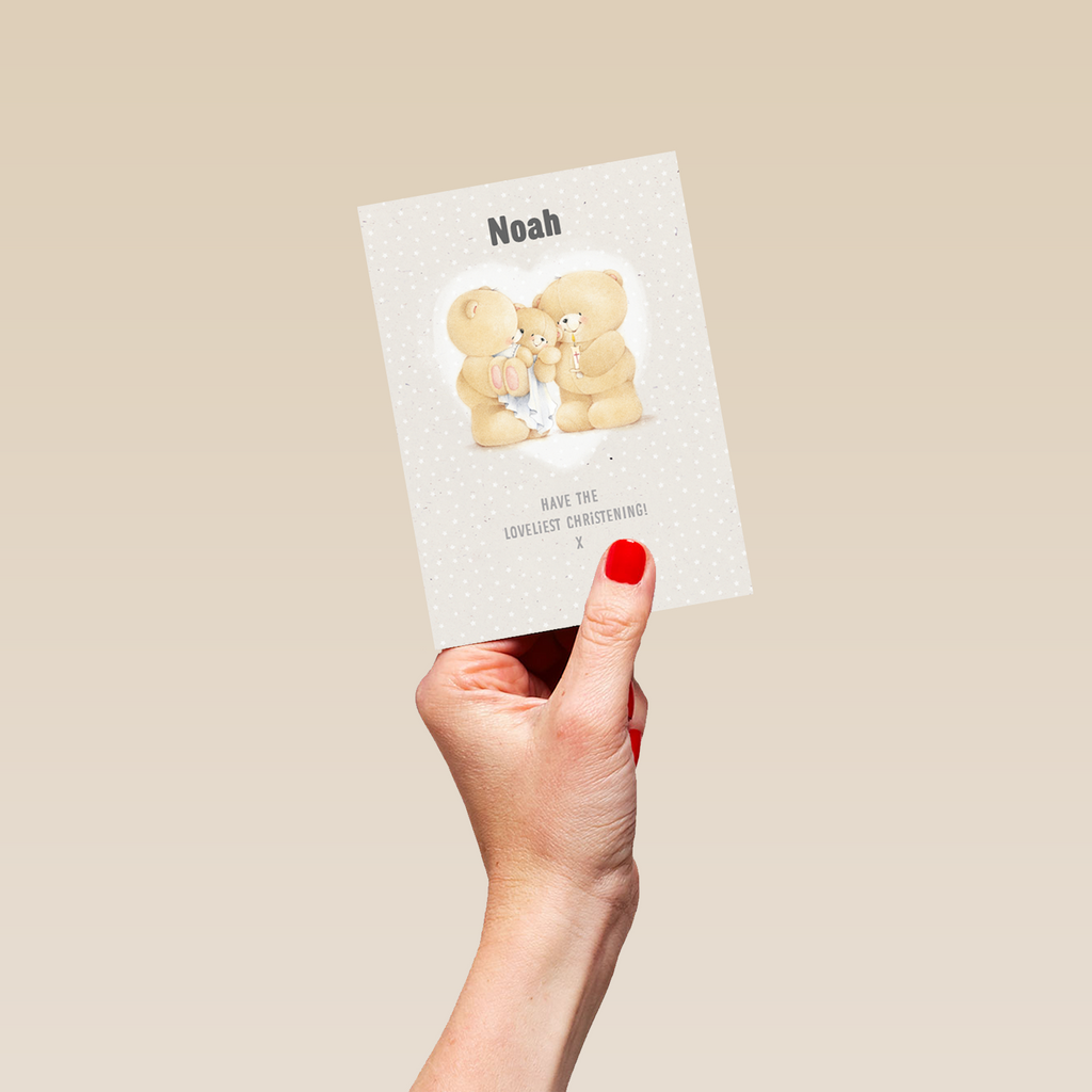 Show them you care with a personalised Forever Friends cute christening card from Hallmark. Our baby cards are printed on premium quality, FSC®-certified card & delivered nationwide. This card is available as standard 12cm by 16.7cm and large 15.5cm by 21.6cm.
