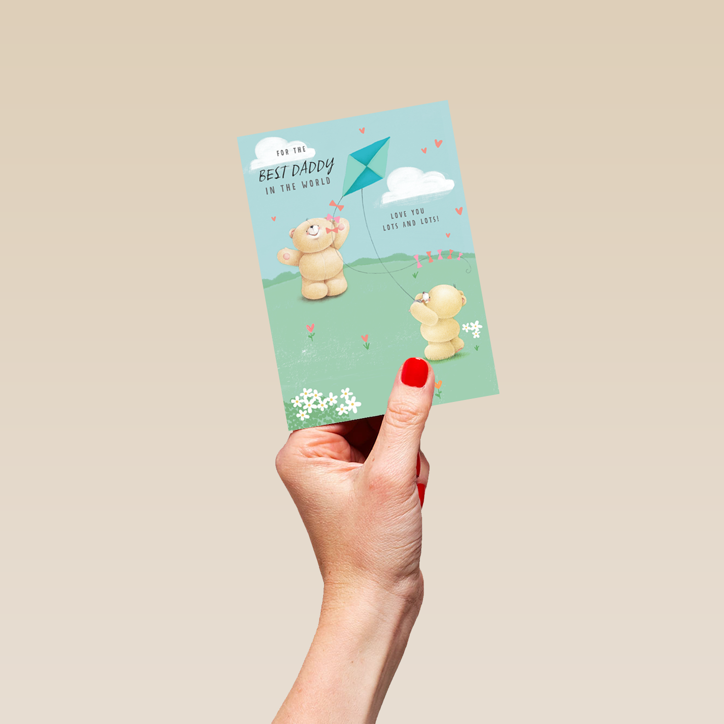 Show them you care with a personalised Forever Friends father's day card for daddy from Hallmark. Our Father's Day cards are printed on premium quality, FSC®-certified card & delivered nationwide.This card is available as standard 12cm by 16.7cm and large 15.5cm by 21.6cm.