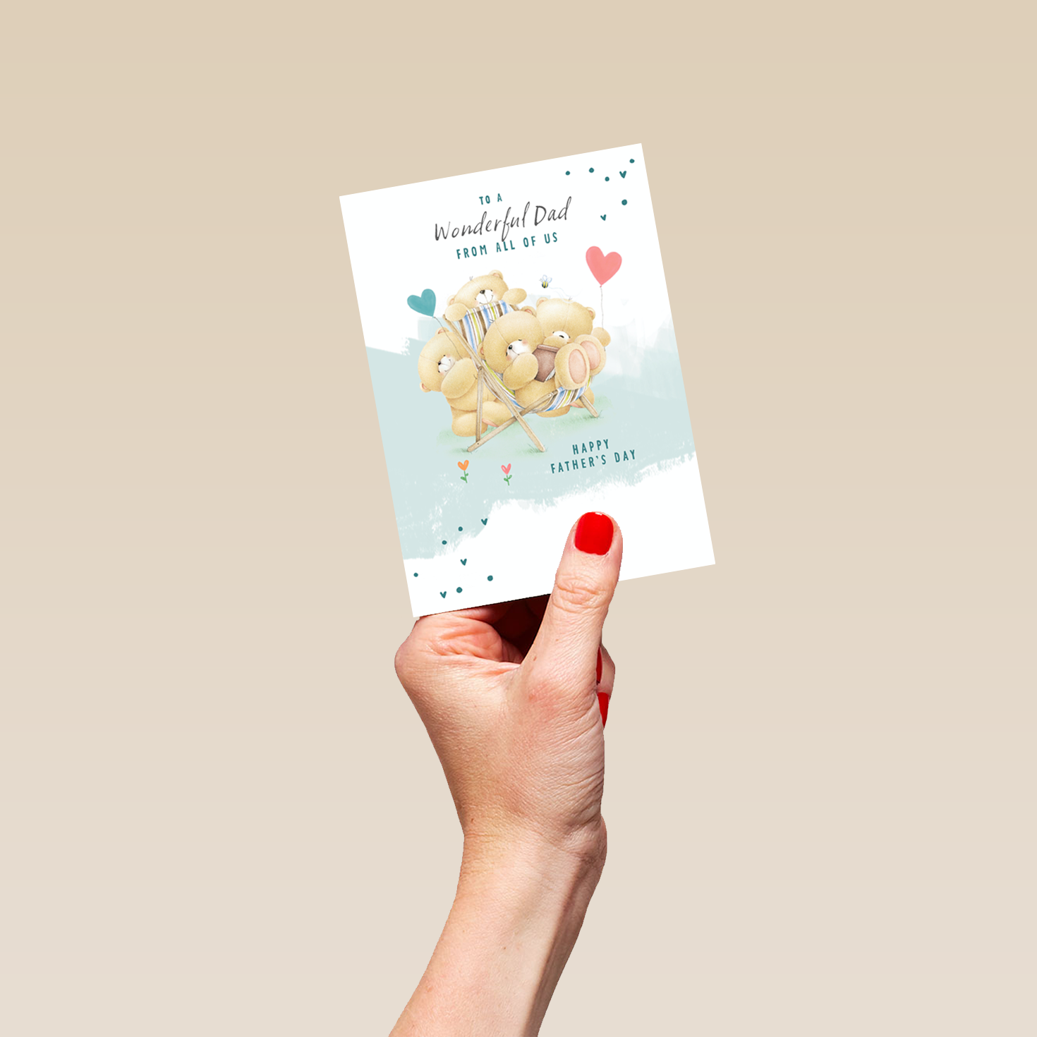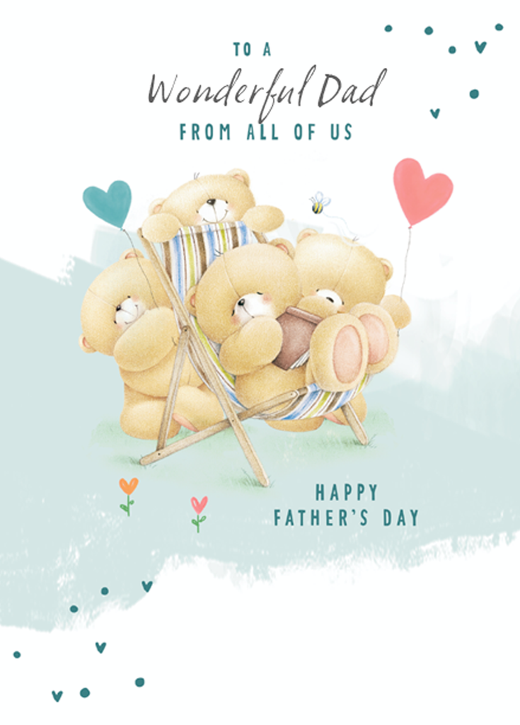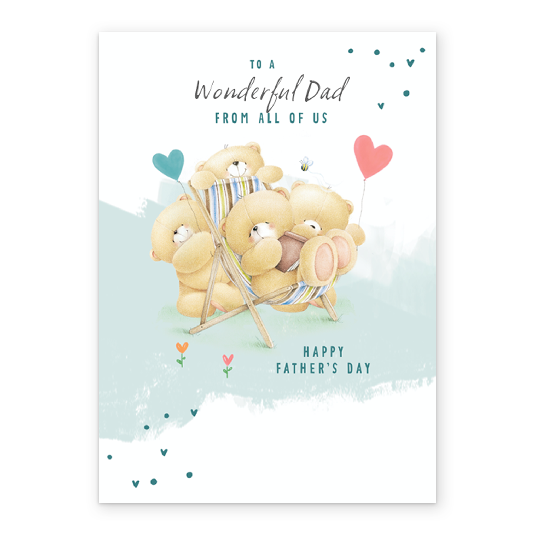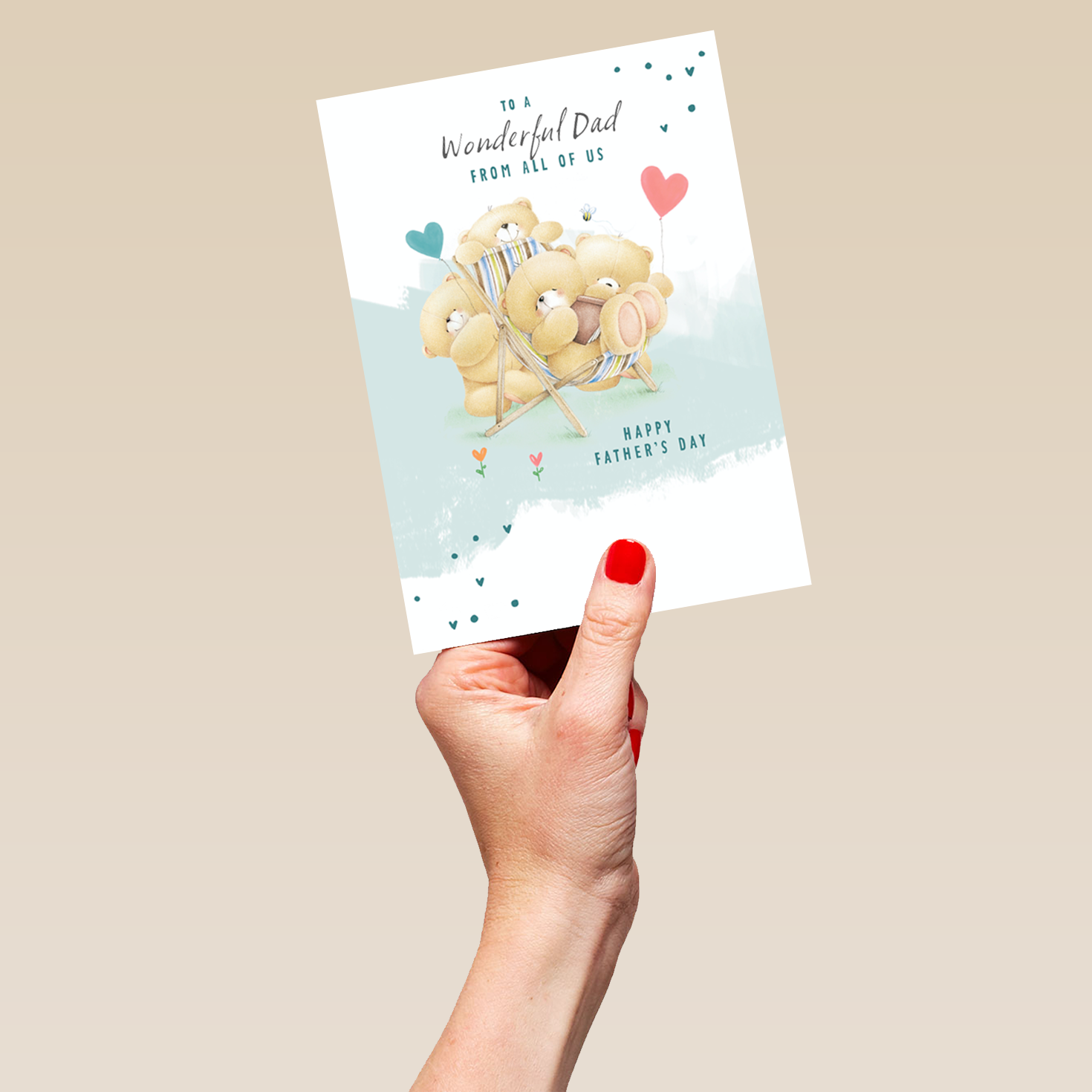 Show them you care with a personalised Forever Friends for dad father's day card from Hallmark. Our Father's Day cards are printed on premium quality, FSC®-certified card & delivered nationwide. This card is available as standard 12cm by 16.7cm and large 15.5cm by 21.6cm.