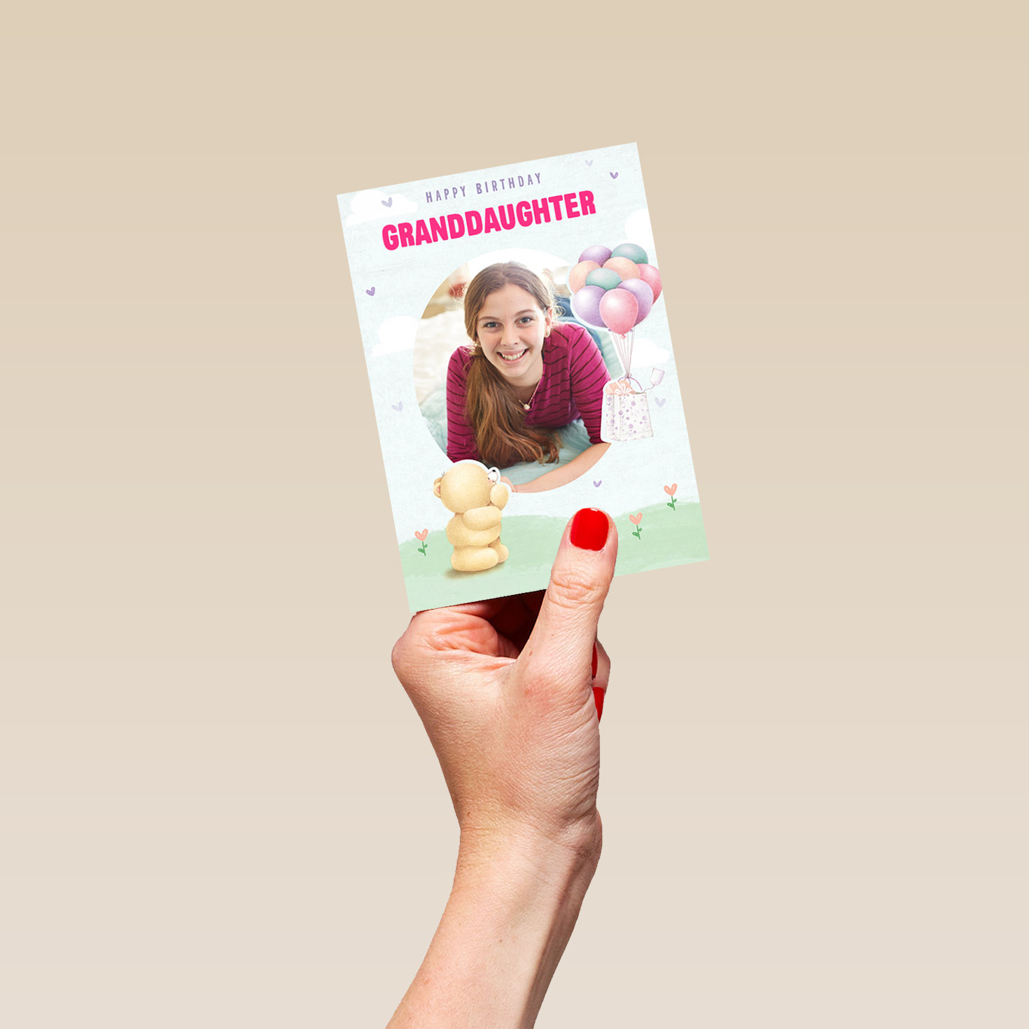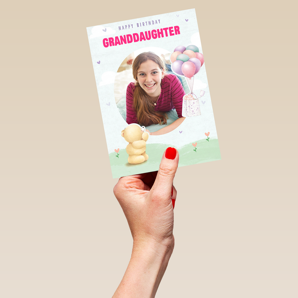 Show them you care with a personalised Forever Friends photo birthday card for granddaughter from Hallmark. Our birthday cards are printed on premium quality, FSC®-certified card & delivered nationwide. This card is available as standard 12cm by 16.7cm and large 15.5cm by 21.6cm.
