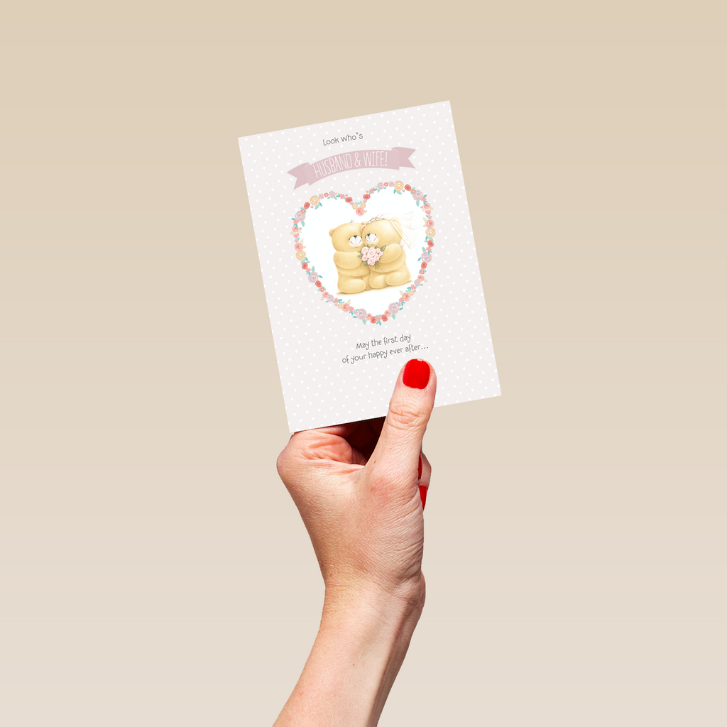 Show them you care with a personalised Forever Friends wedding card from Hallmark. Our wedding cards are printed on premium quality, FSC®-certified card & delivered nationwide. This card is available as standard 12cm by 16.7cm and large 15.5cm by 21.6cm.
