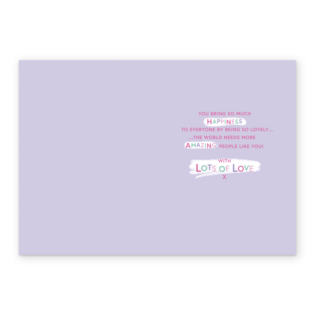 Message inside reads: You bring so much happiness to everyone by being so lovely… …the world needs more amazing people like you! With lots of love x