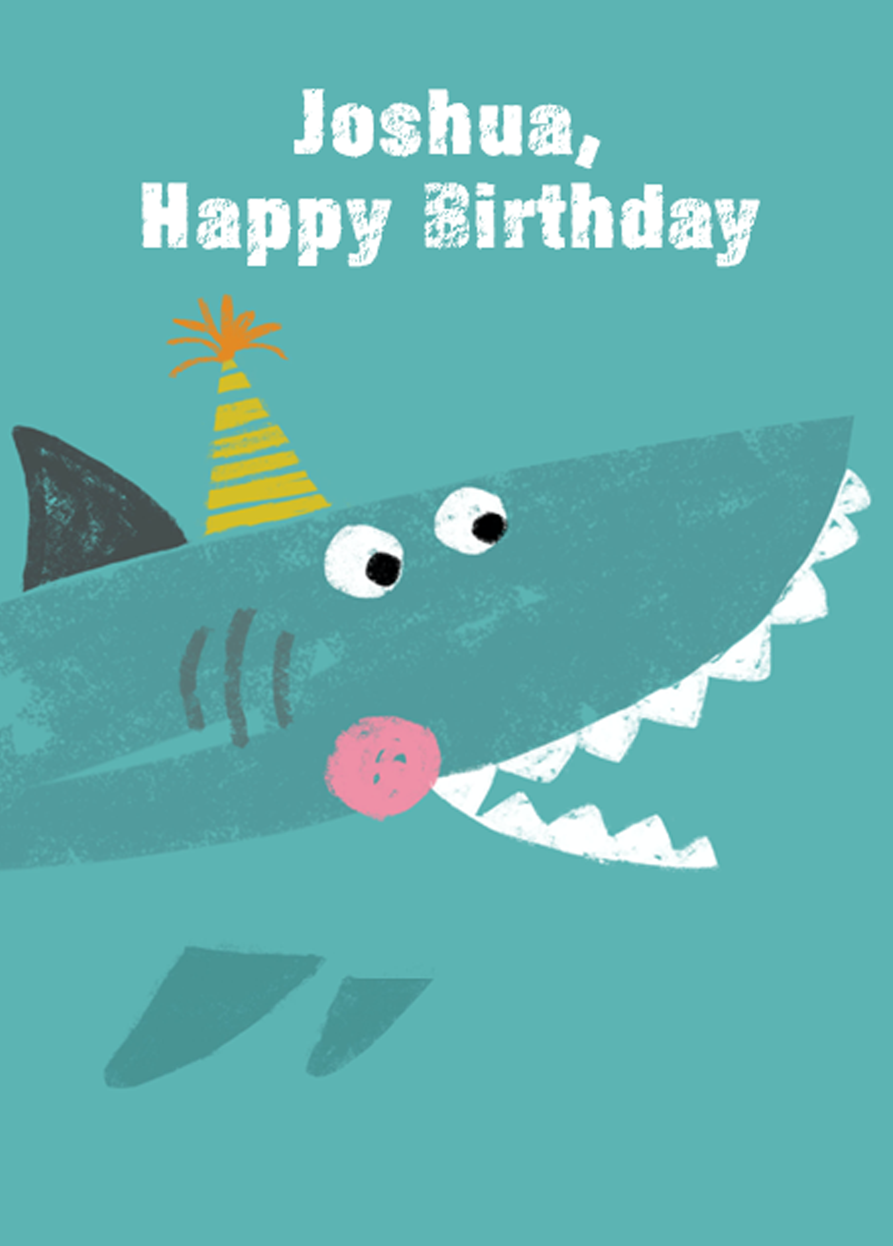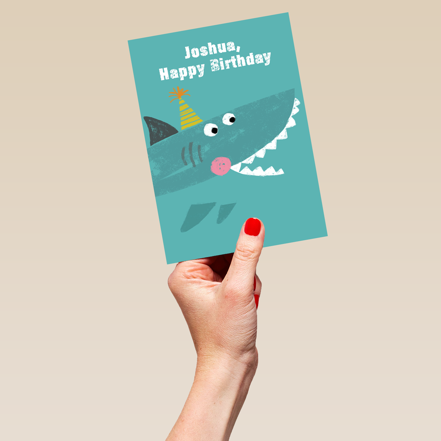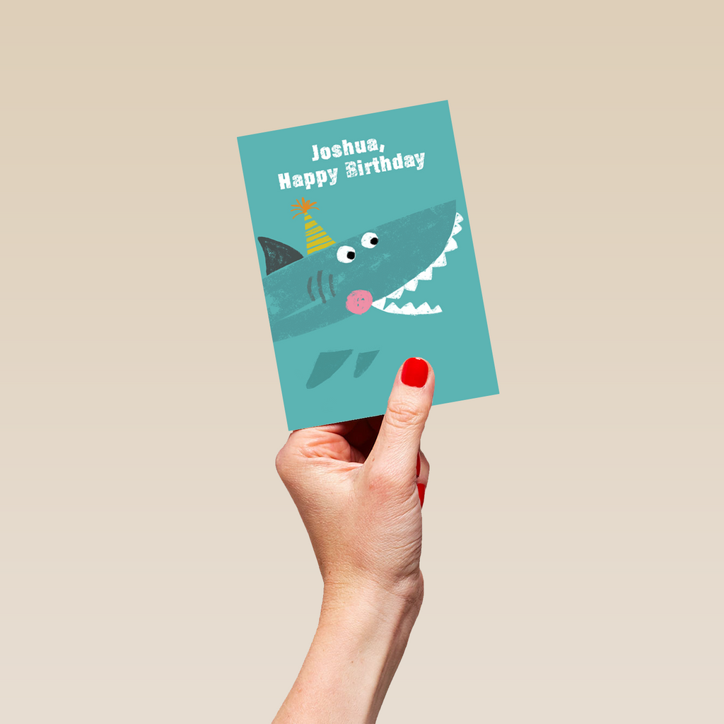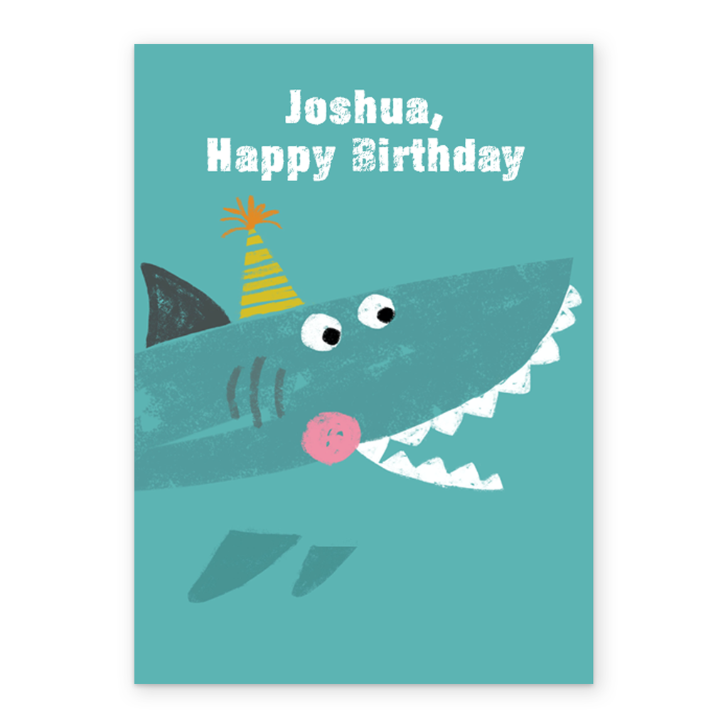 Show them you care with a personalised fun smiley shark party hat kids birthday card from Hallmark. Our greetings cards are printed on premium quality, FSC®-certified card & delivered nationwide.
