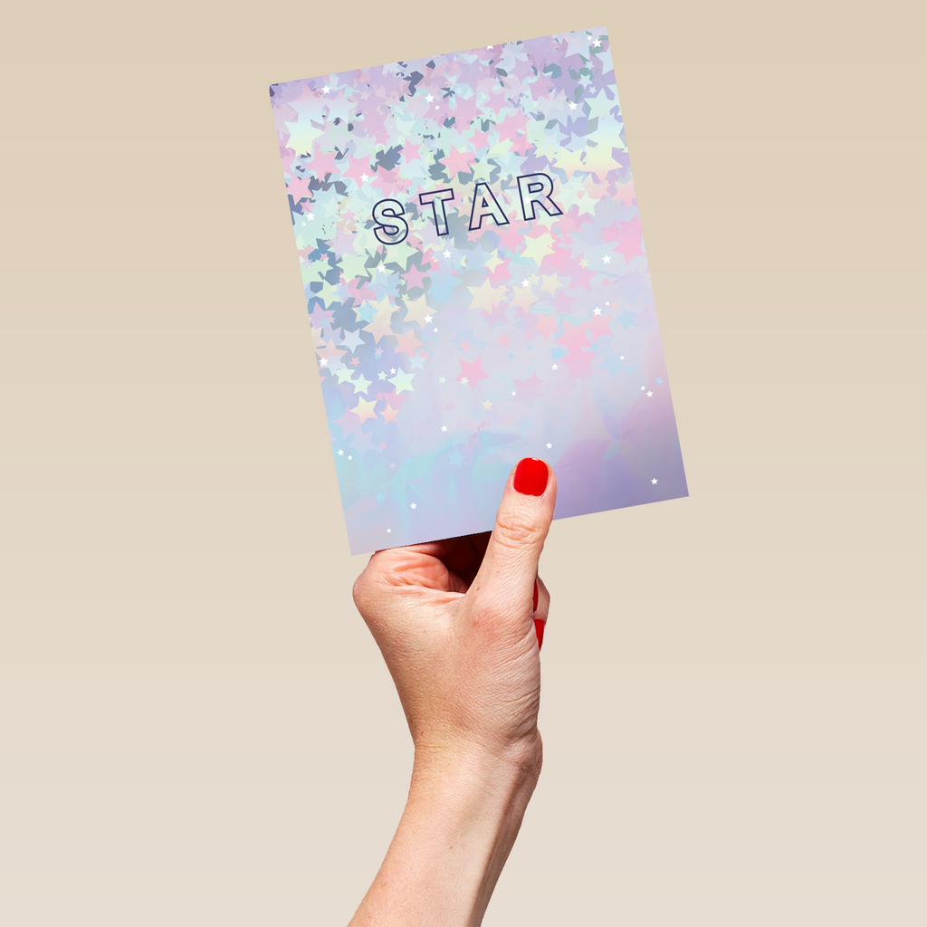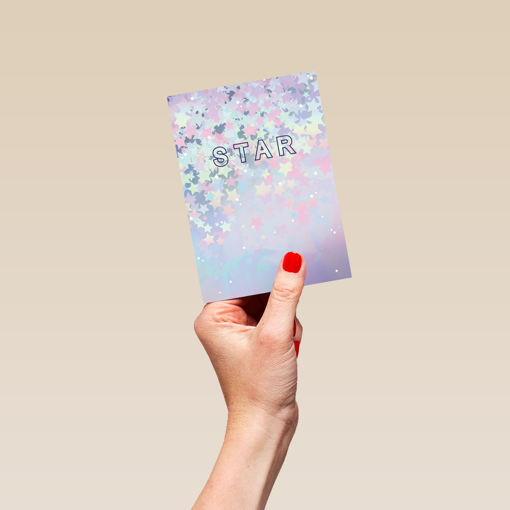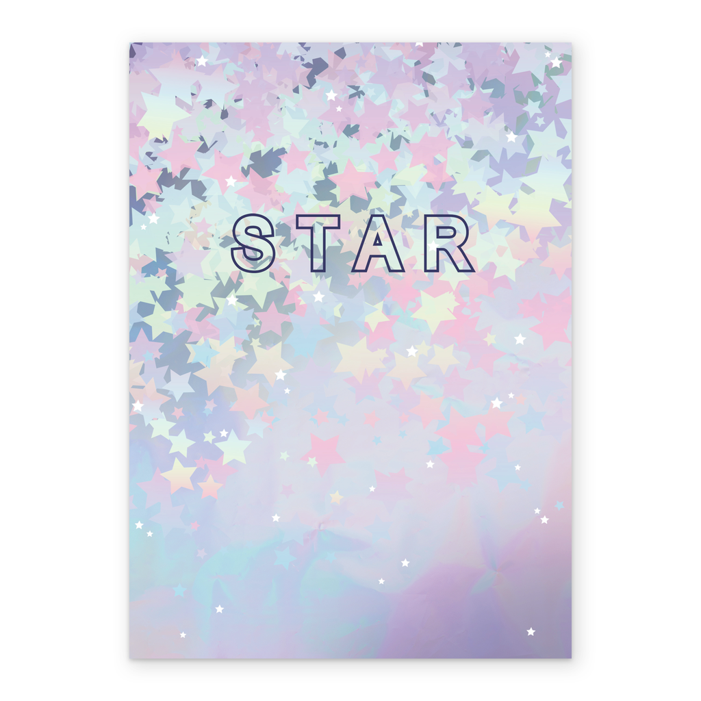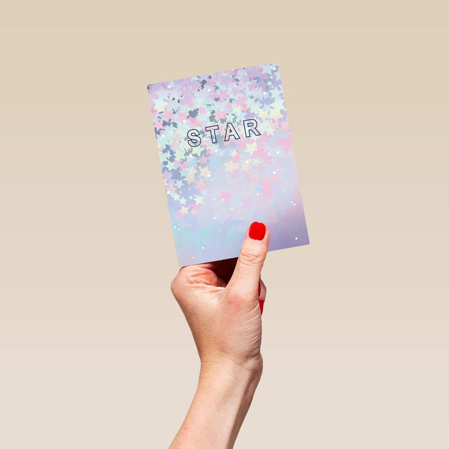 Printed on premium-quality board, this card features a colourful starry background, and 'STAR' text on top, and comes complete with a co-ordinating white envelope.