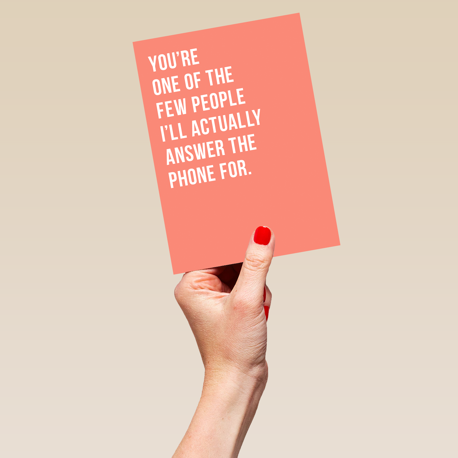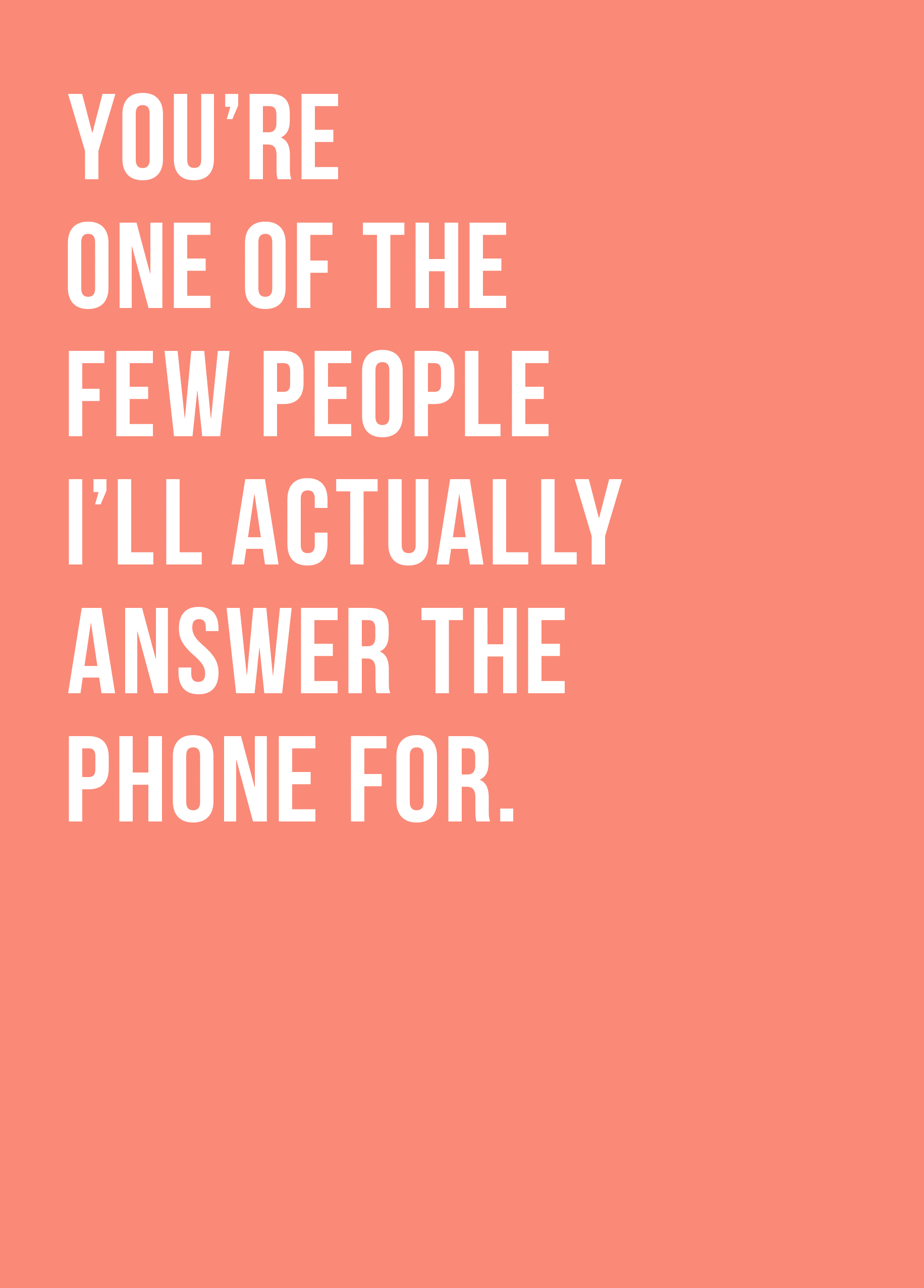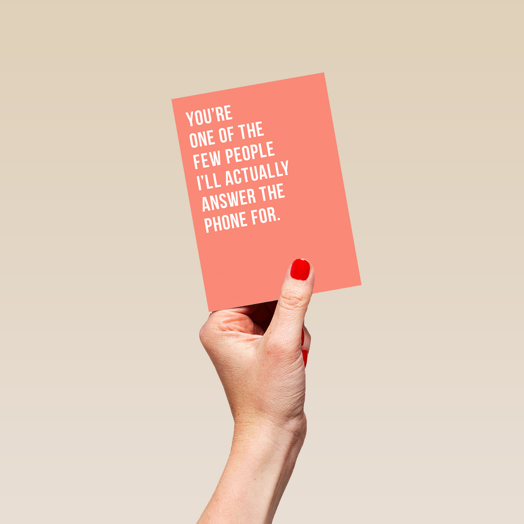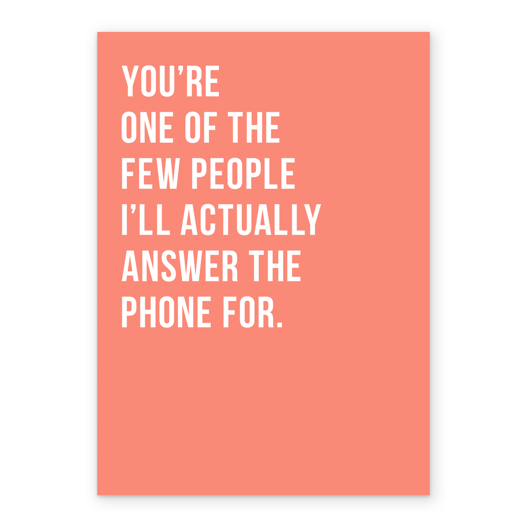 Printed on premium-quality board, this card features a funny and heartfelt verse, with the message 'You're one of the few people I'll actually answer the phone for', and comes complete with a co-ordinating white envelope.