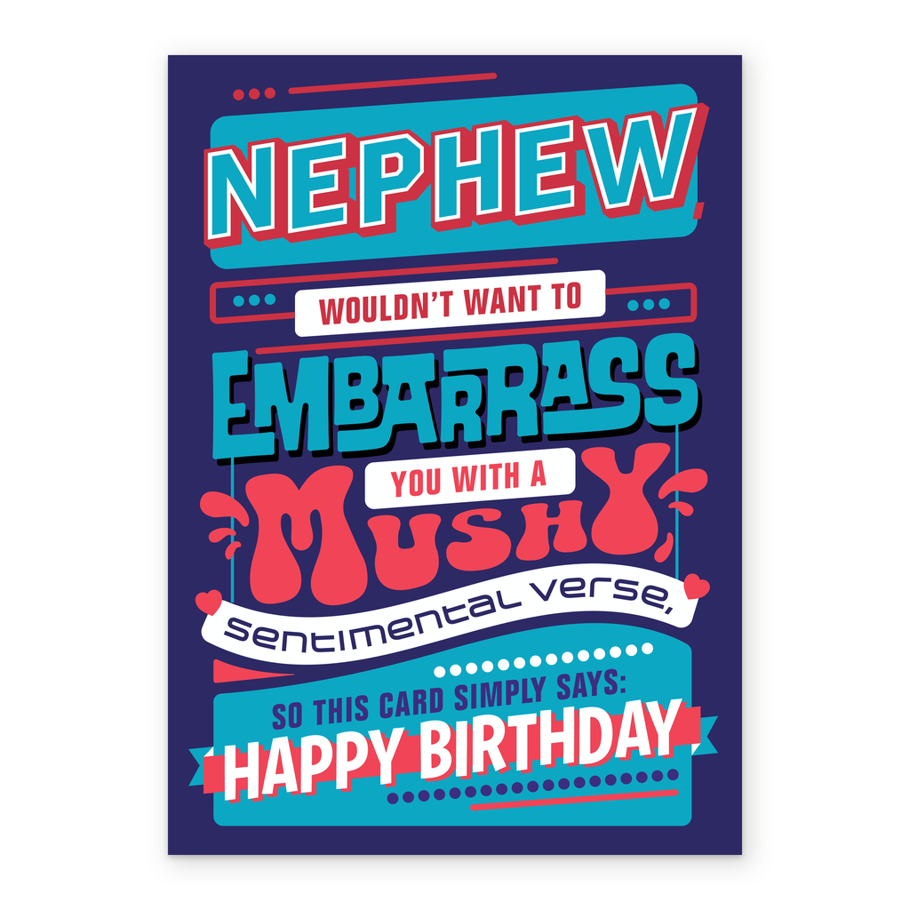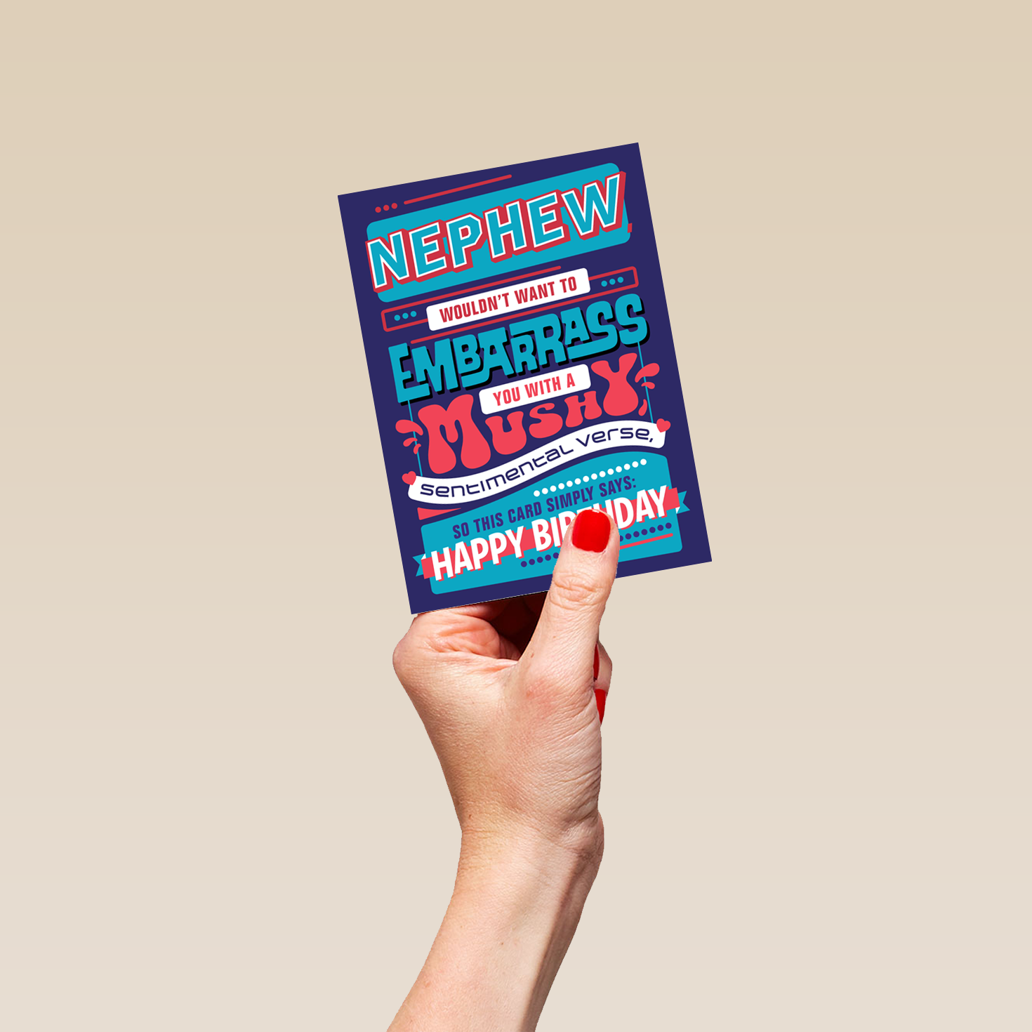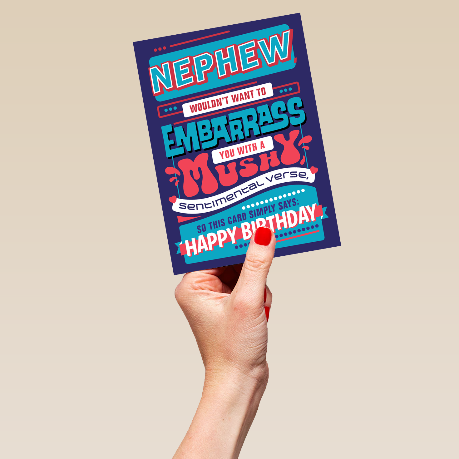 Personalised Funny Birthday Text Embarrassing Mushy Card For Nephew