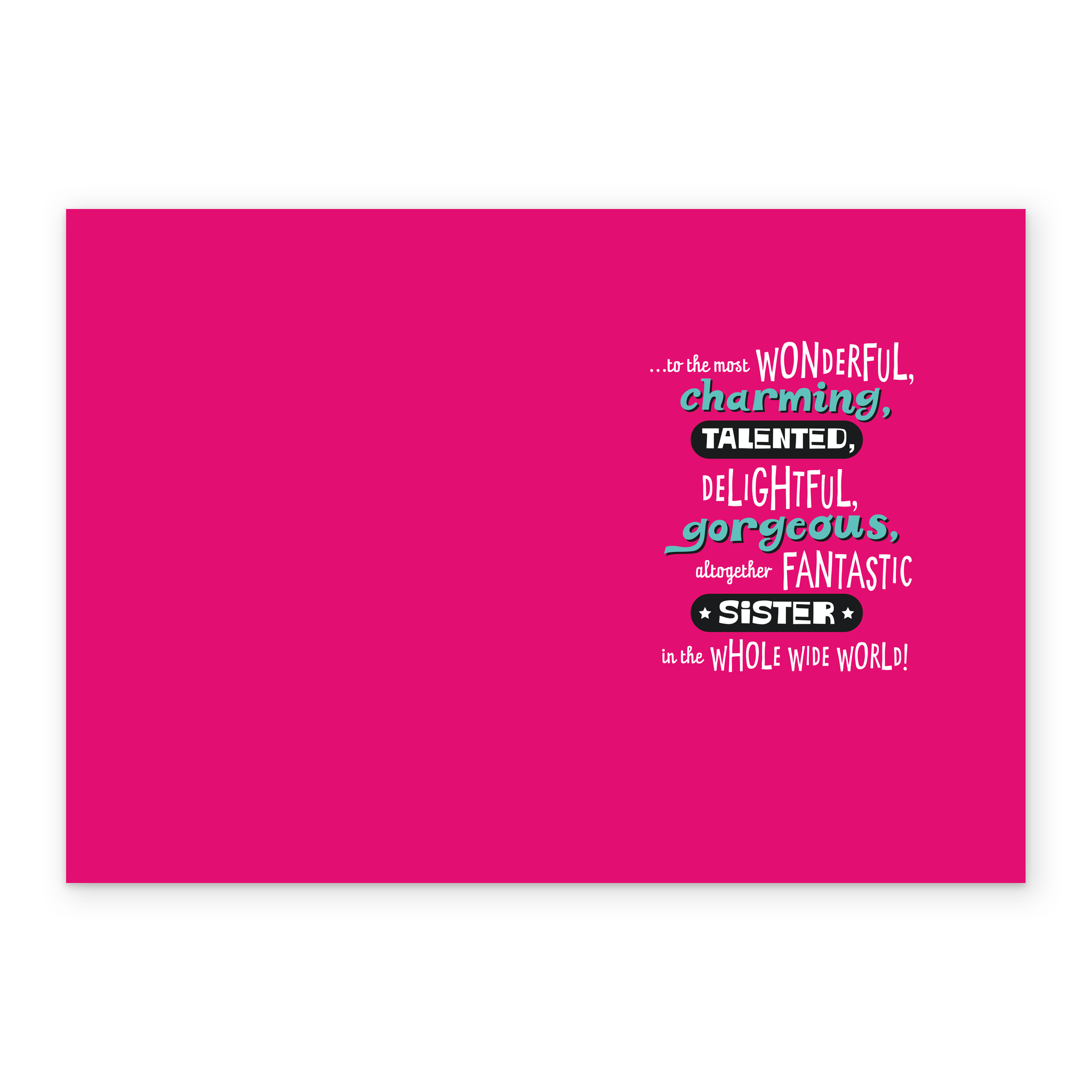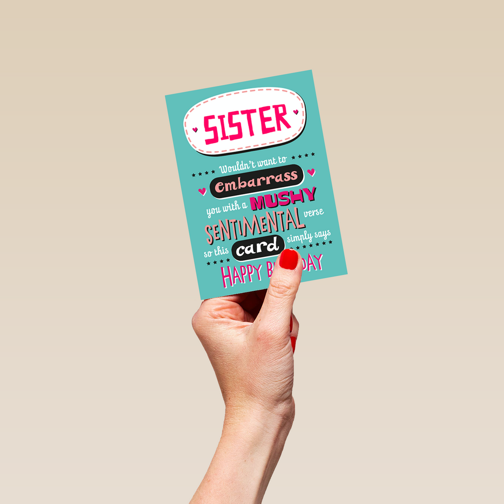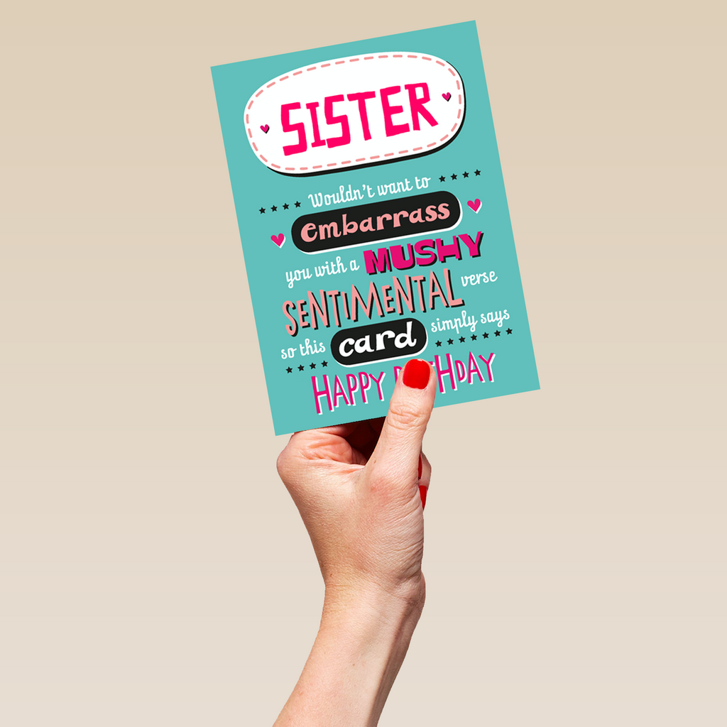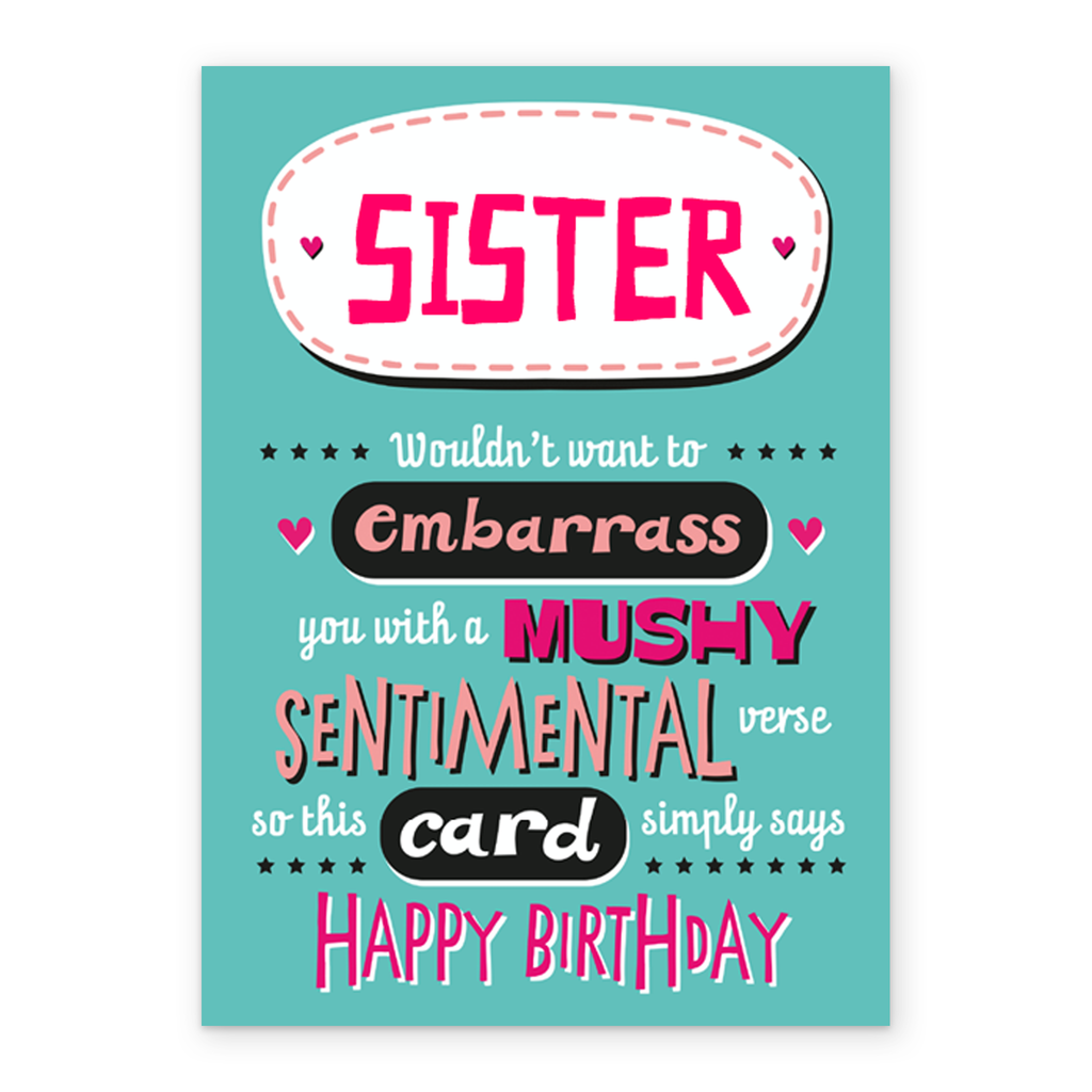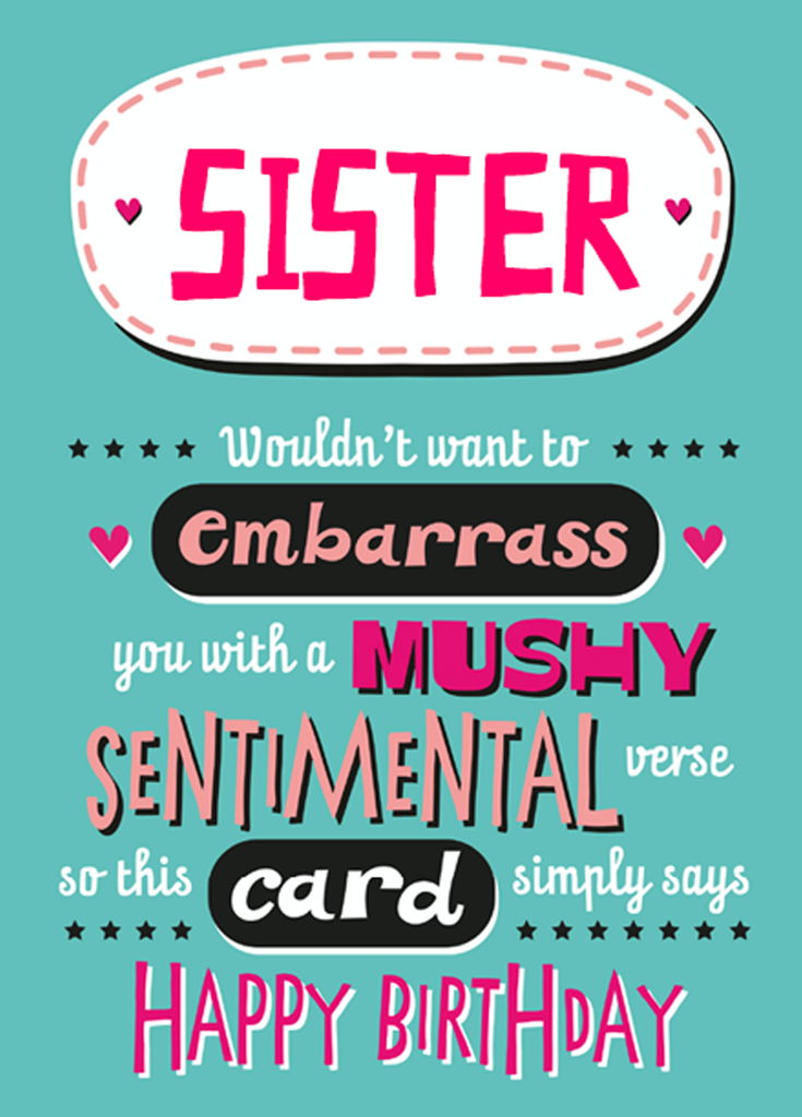 Show them you care with a personalised funny birthday text sister card from Hallmark. Our birthday cards are printed on premium quality, FSC®-certified card & delivered nationwide. This card is available as standard 12cm by 16.7cm and large 15.5cm by 21.6cm.