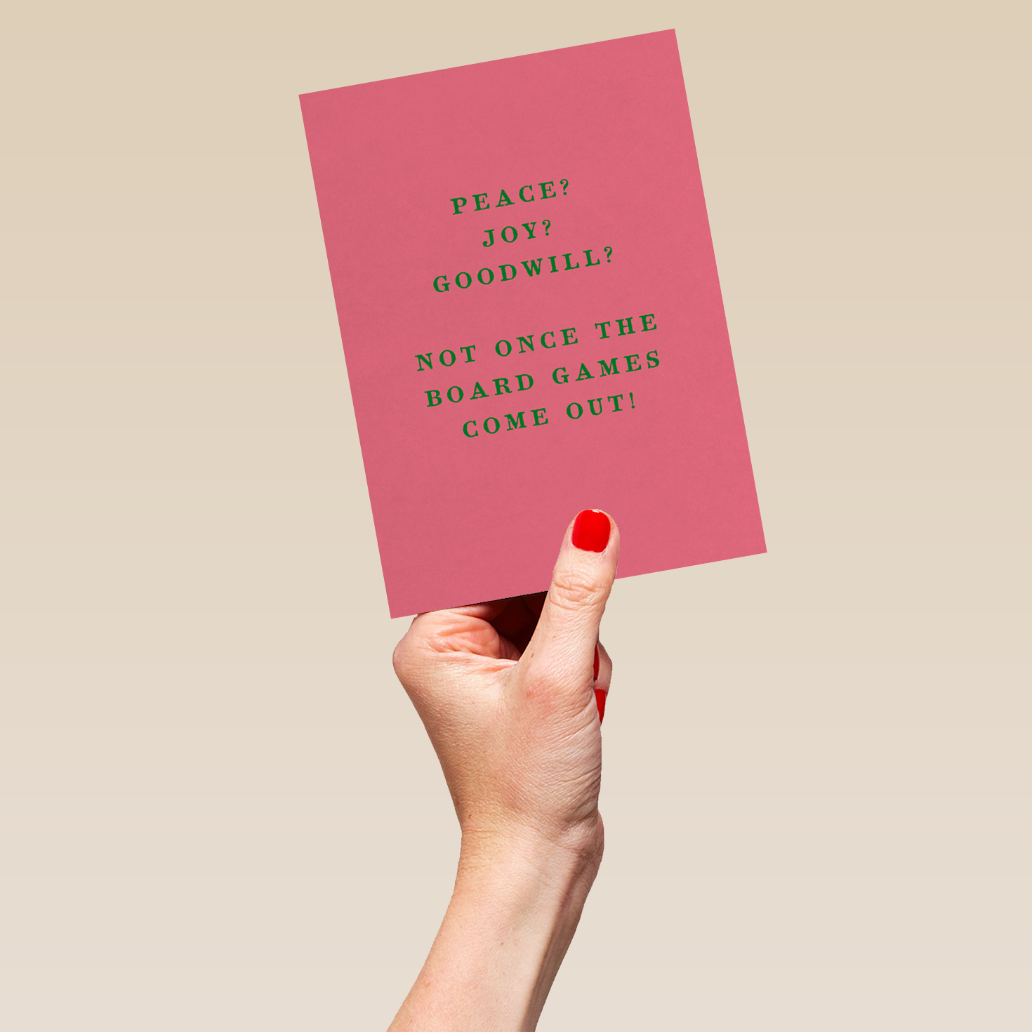 Show them you care with a personalised funny board games Christmas card from Hallmark. Our greetings cards are printed on premium quality, FSC®-certified card & delivered nationwide. This card is available as standard 12cm by 16.7cm and large 15.5cm by 21.6cm.