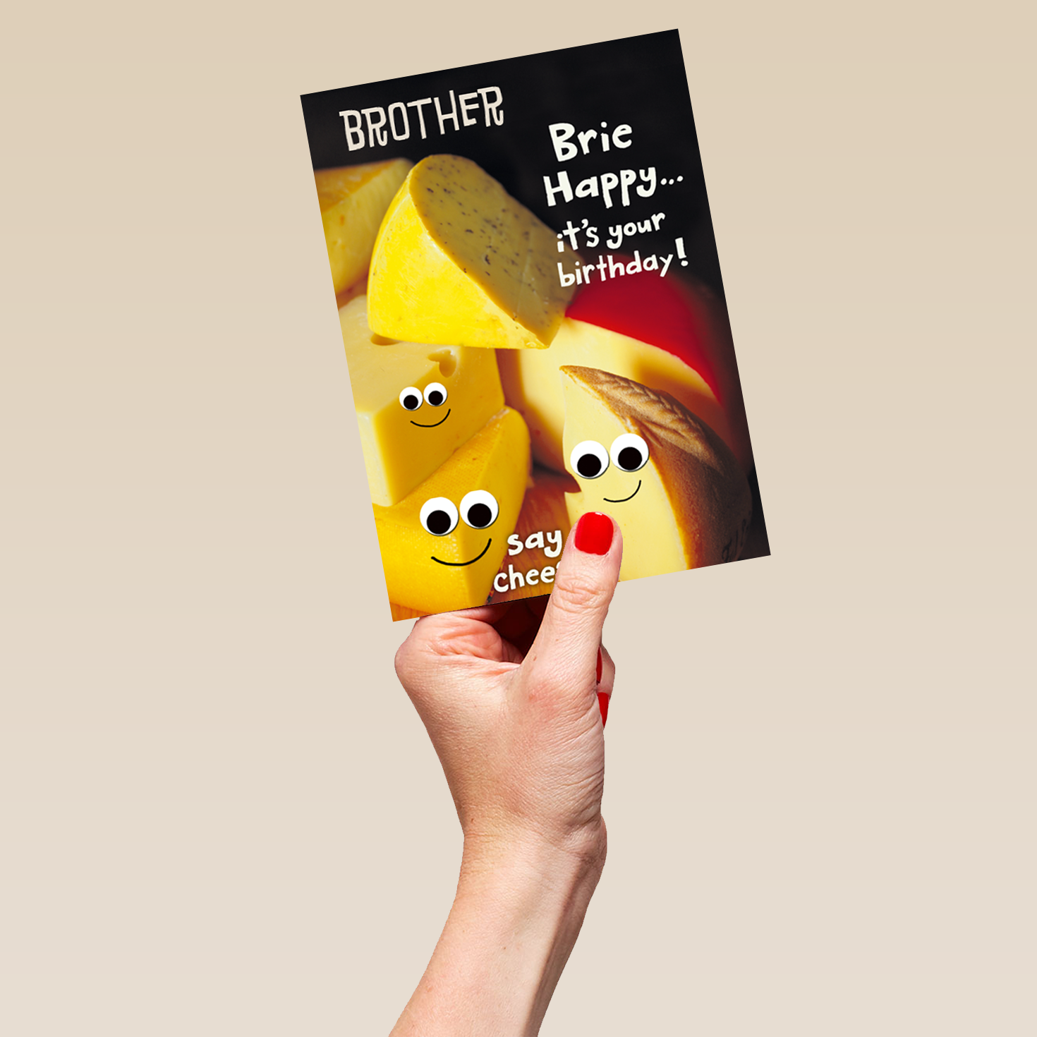 Show them you care with a personalised funny cheese googly eyes birthday card for brother from... View more details