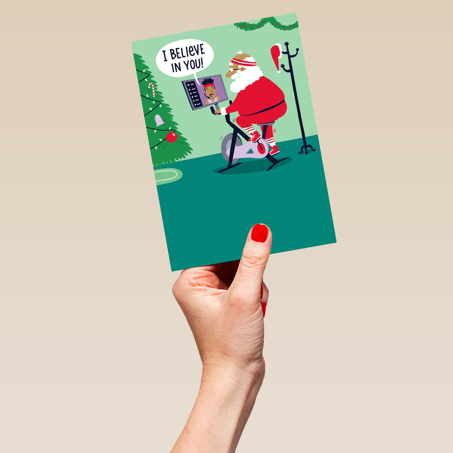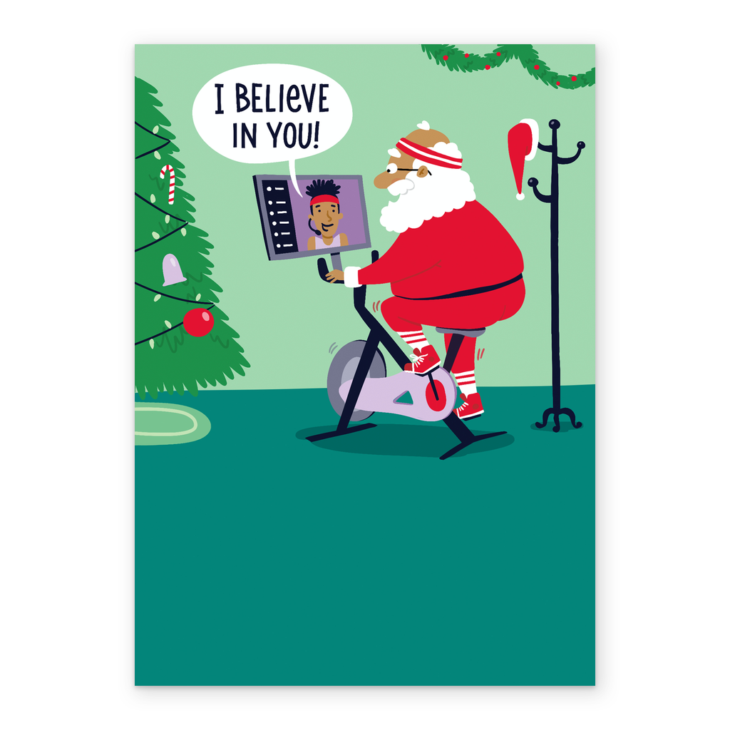 Show them you care with a personalised funny Christmas Shoebox cartoon Santa exercise card from Hallmark. Our greetings cards are printed on premium quality, FSC®-certified card & delivered nationwide. This card is available as standard 12cm by 16.7cm and large 15.5cm by 21.6cm.