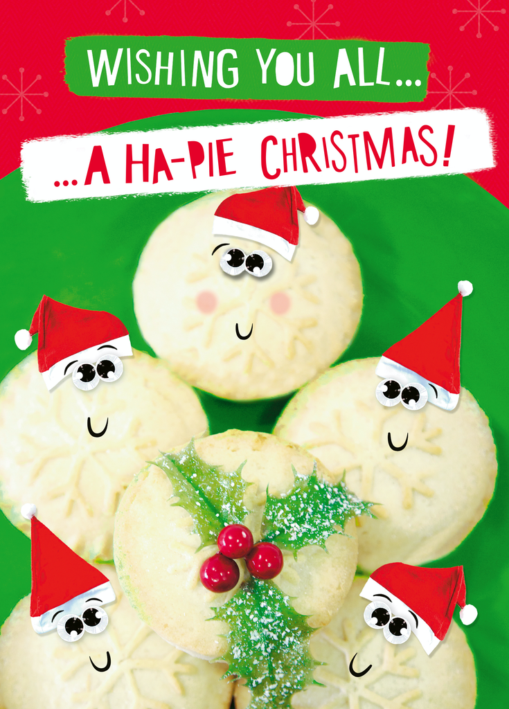 Show them you care with a personalised funny Christmas to all of you family mince pies card from Hallmark. Our greetings cards are printed on premium quality, FSC®-certified card & delivered nationwide. This card is available as standard 12cm by 16.7cm and large 15.5cm by 21.6cm.
