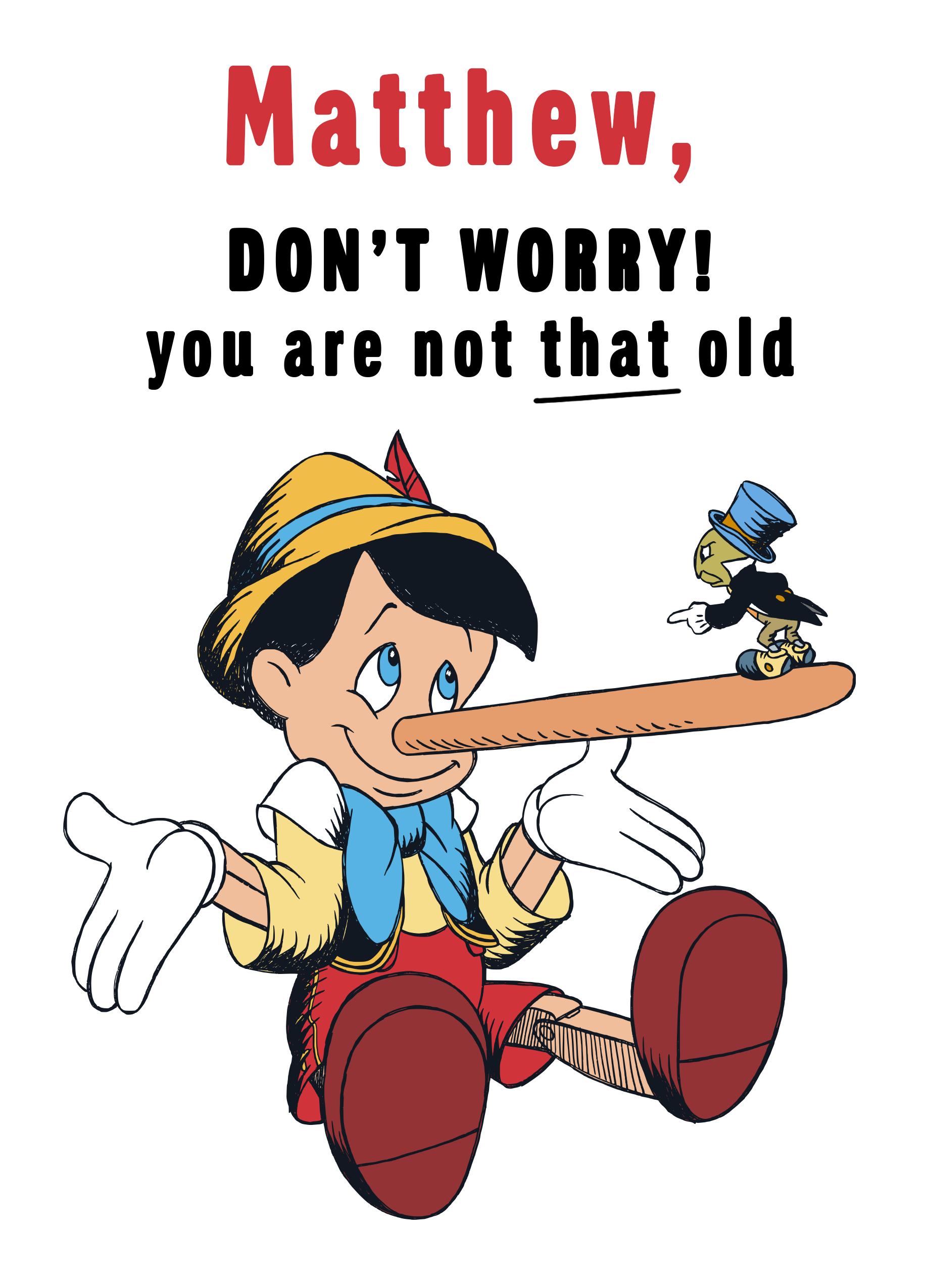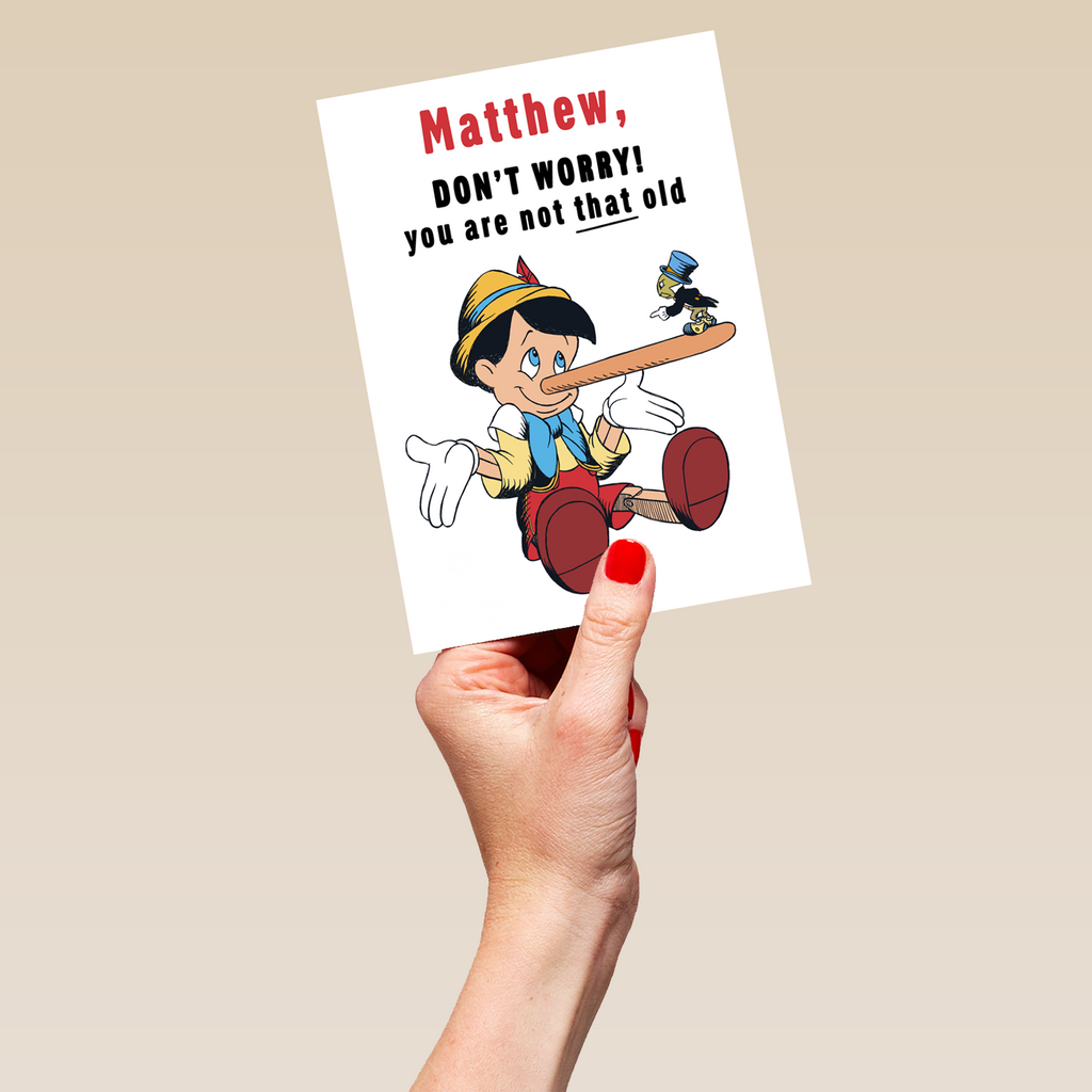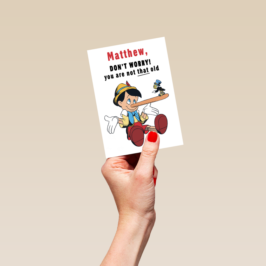 Send a card that'll make them laugh with this funny personalised Disney Pinocchio birthday card, the perfect way to make them laugh on their big day.