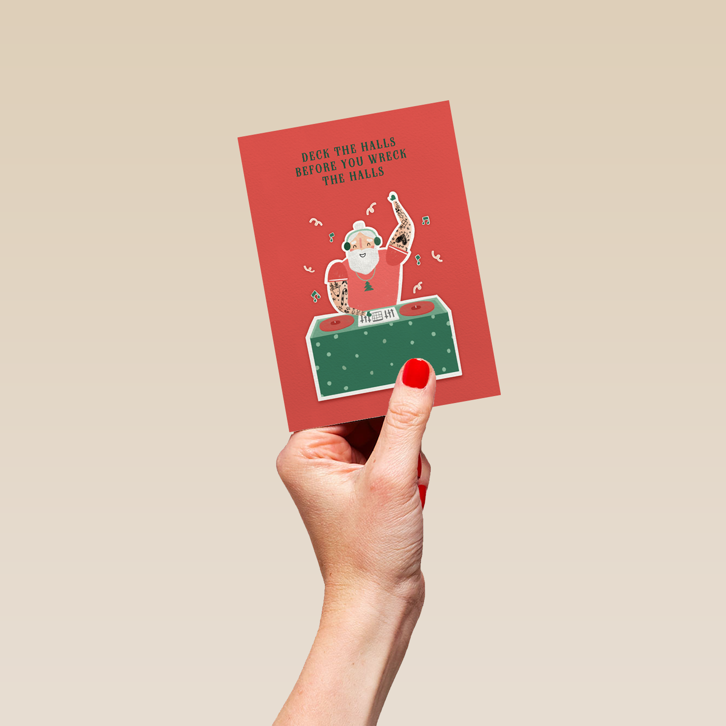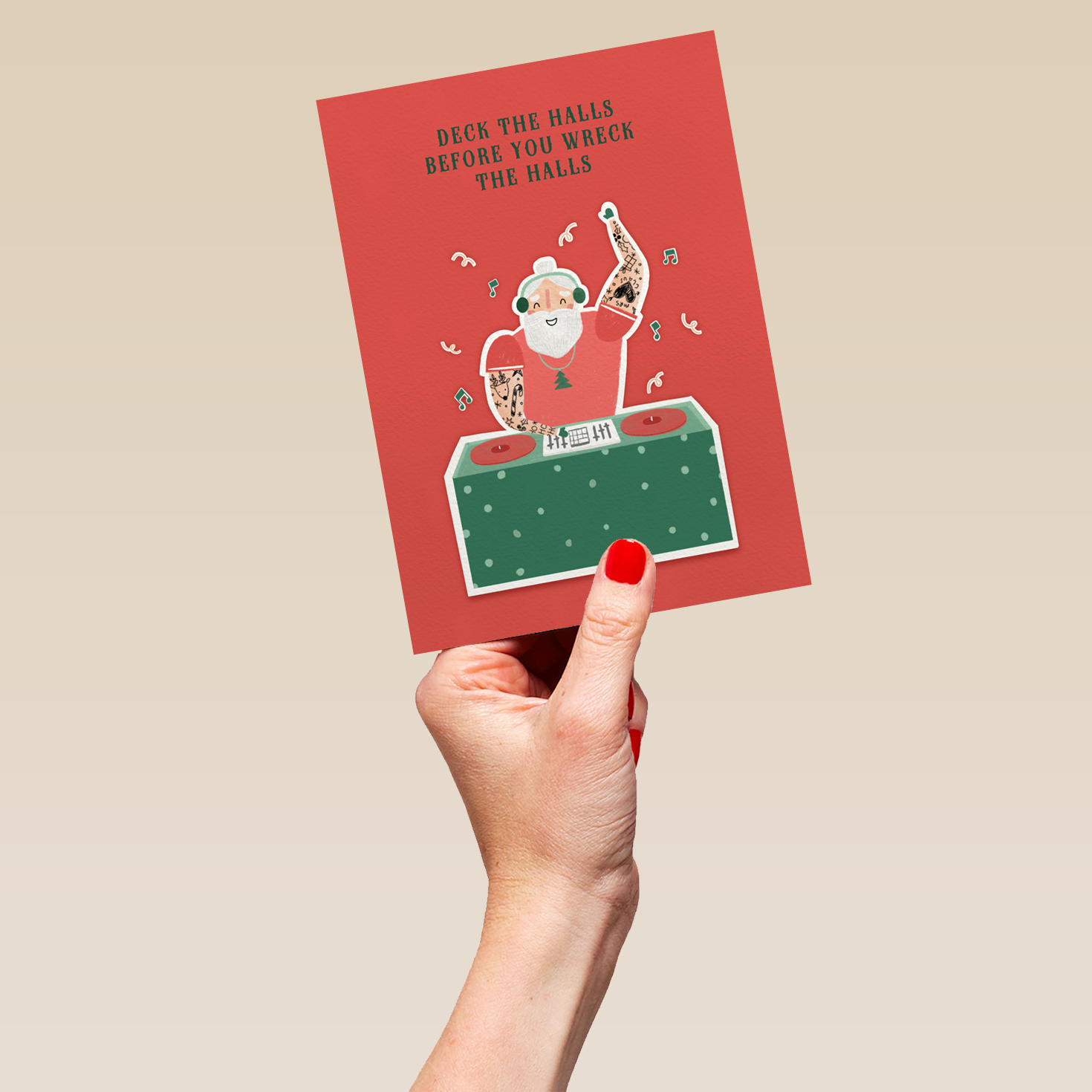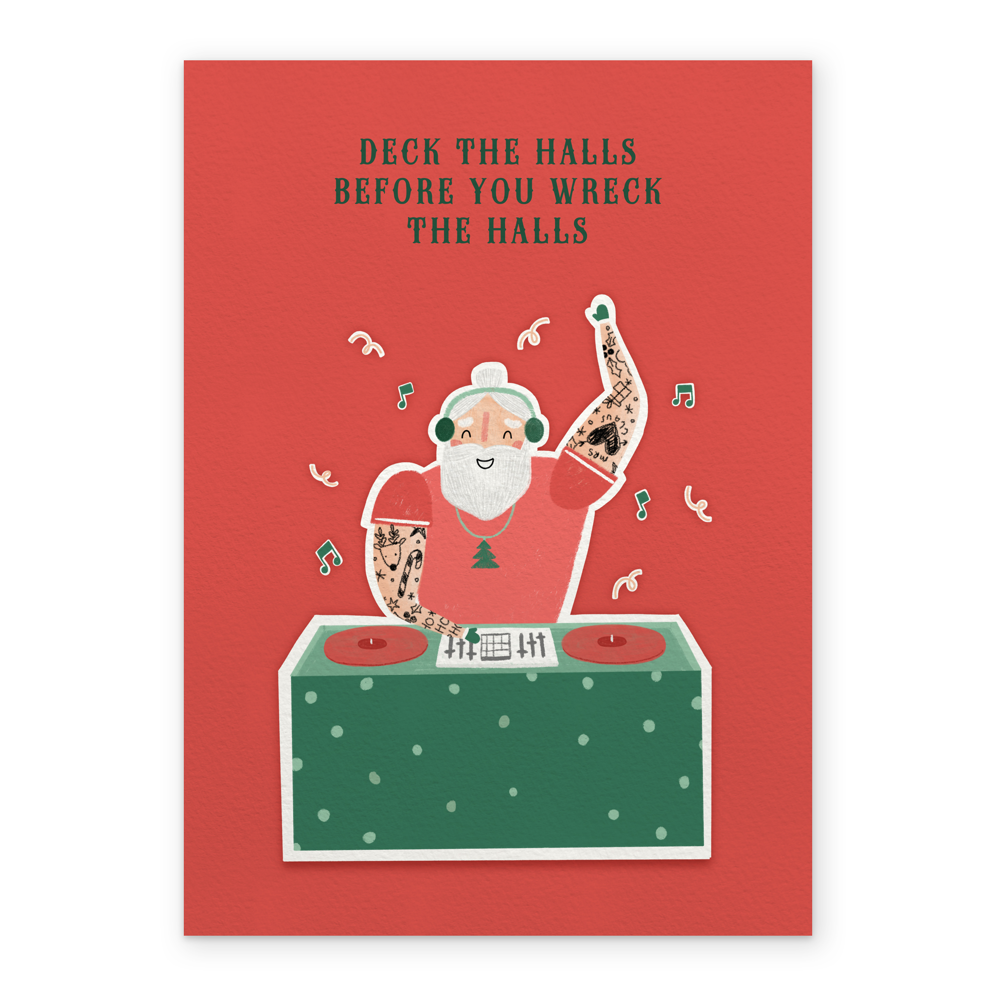 Personalised Funny DJ Santa Wreck The Halls Christmas Card