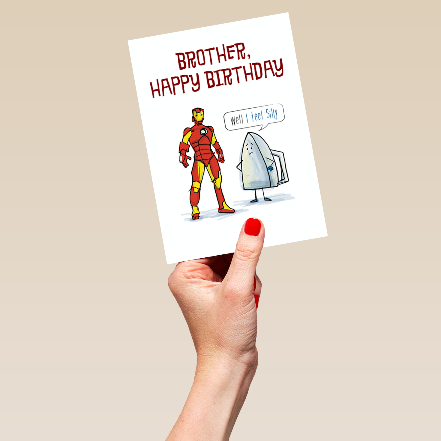 Personalised Funny Editable Iron Man Cartoon Birthday Card for Brother