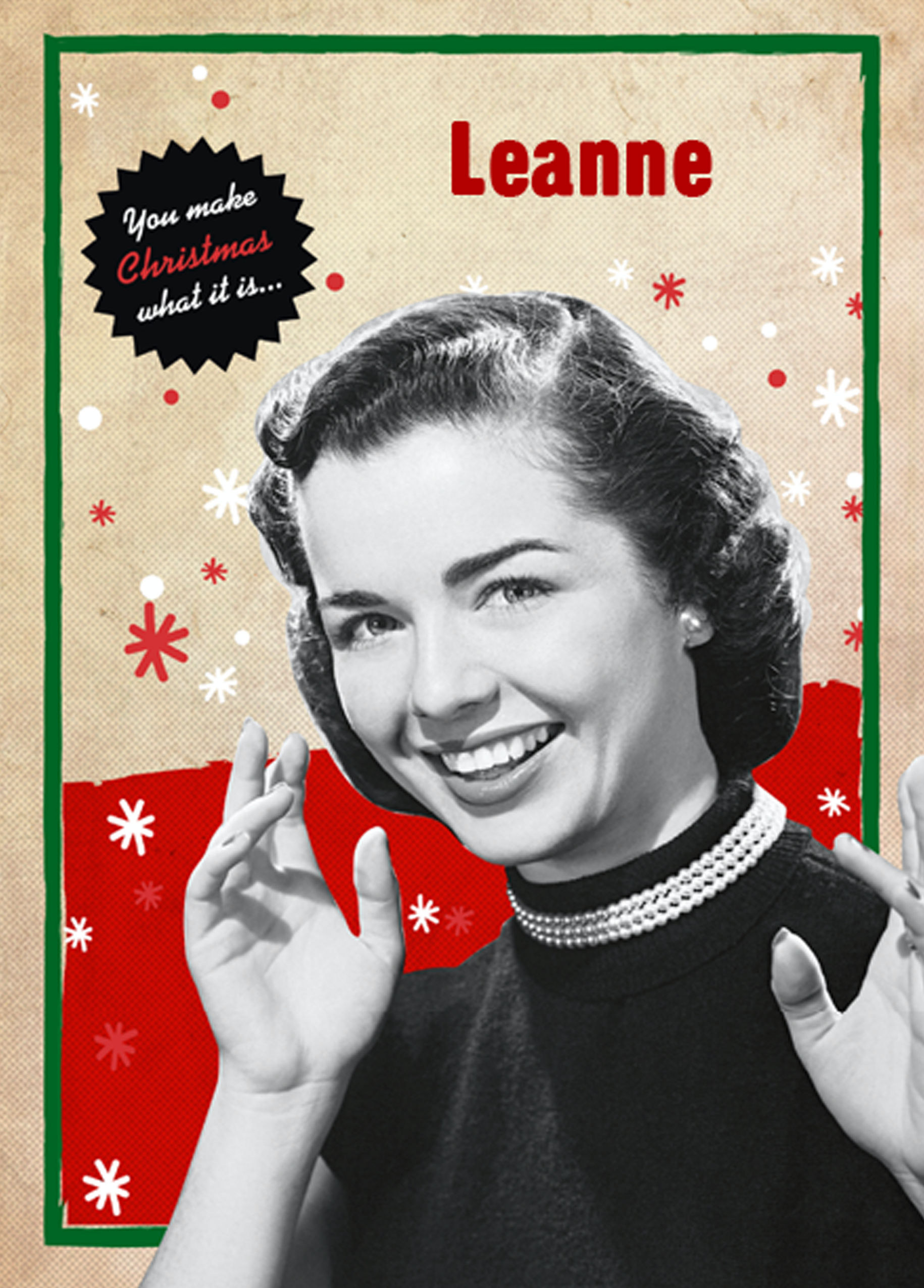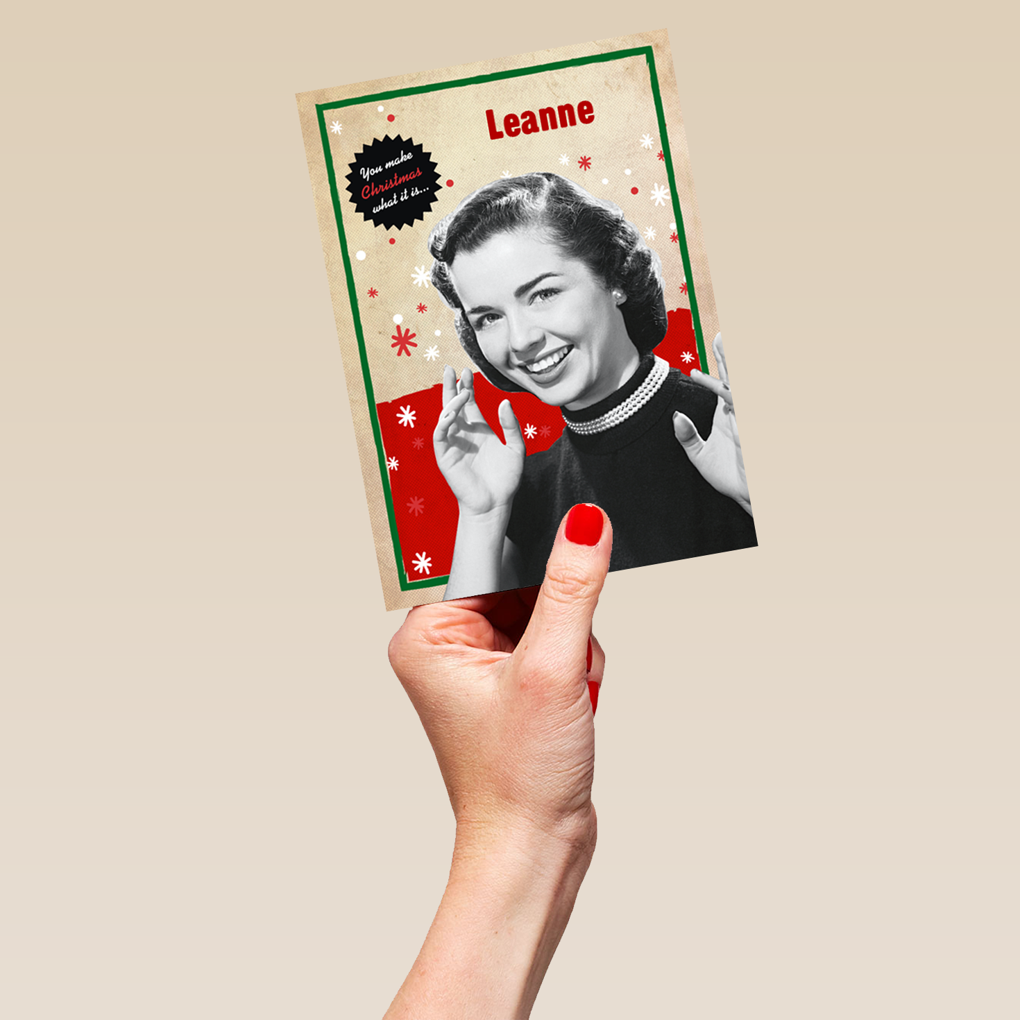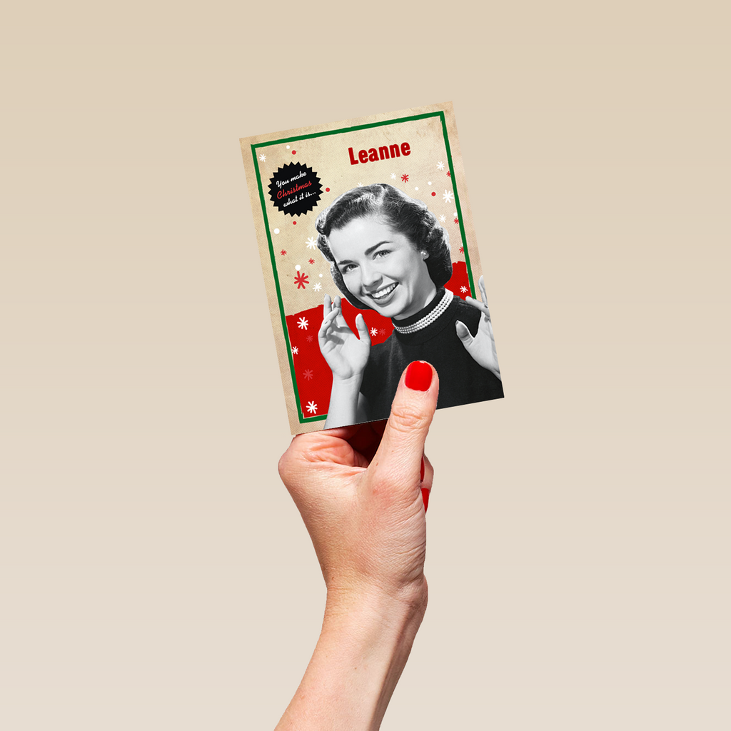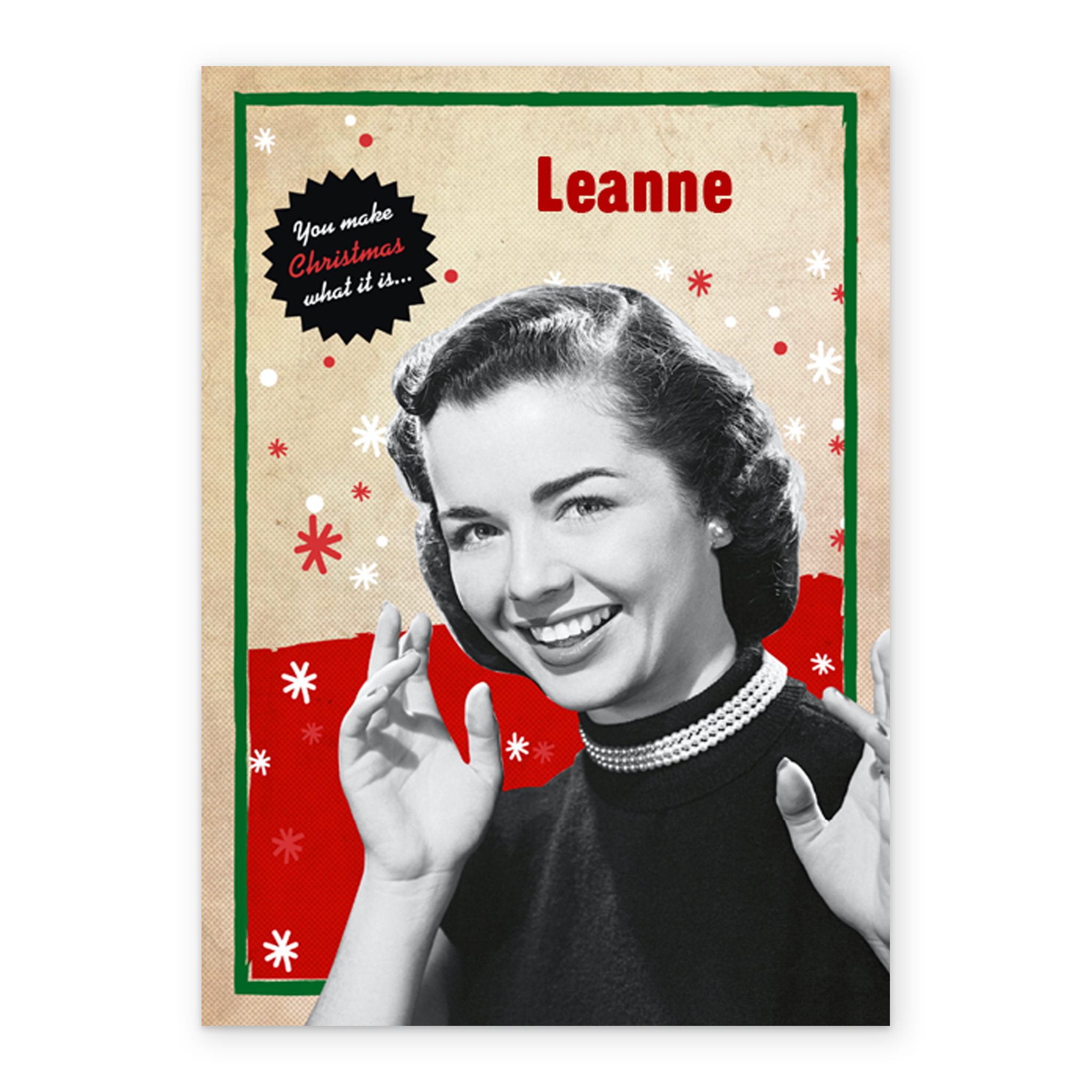 Printed on premium-quality board, this card features a vintage feel and space for a personalised name, with the message 'You make Christmas what it is...'.