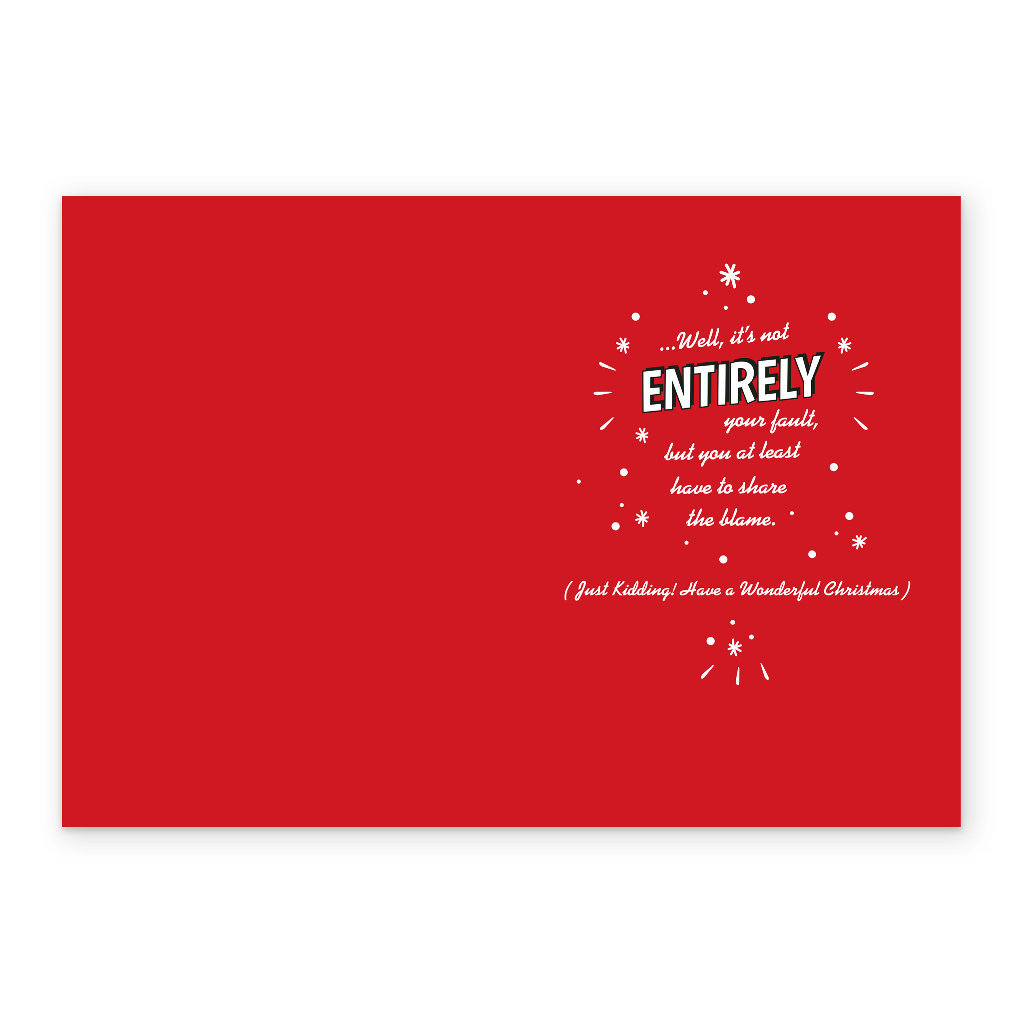Message Inside Reads: ...Well, it's not Entirely your fault, but you at least have to share the blame. (Just kidding! Have a wonderful Christmas)