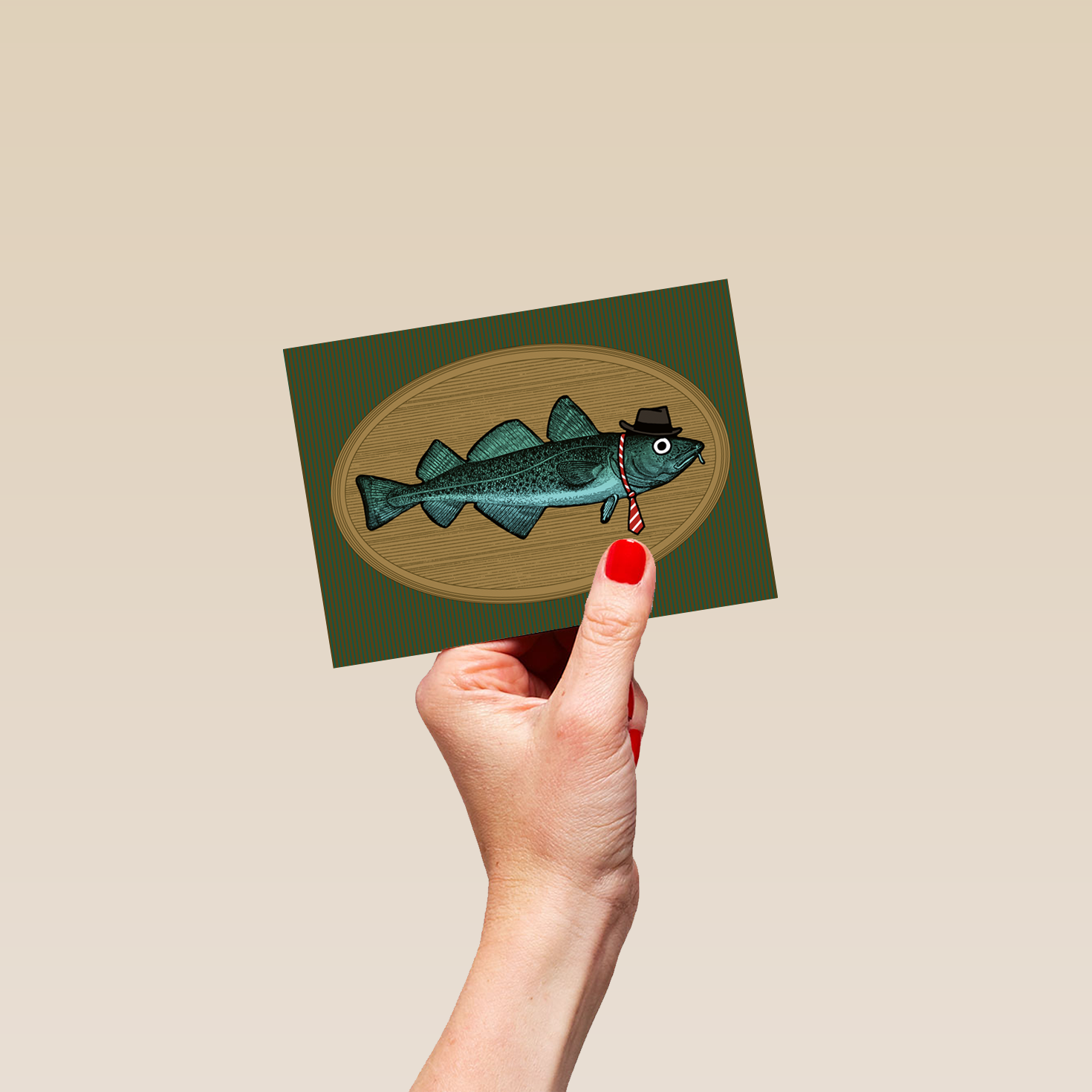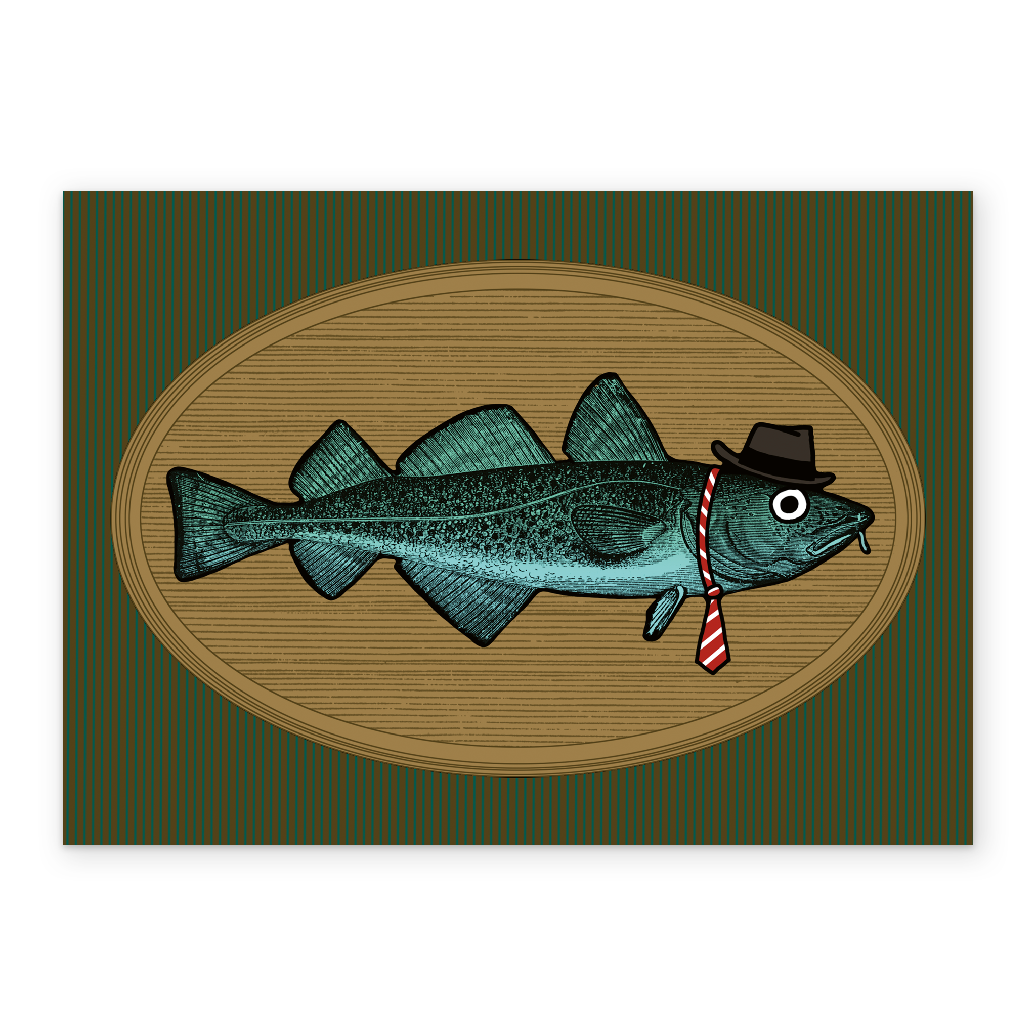 Printed on premium-quality board, this card features a funny whimsical fish wearing a black top hat and a red-and-white striped tie, and comes complete with a co-ordinating white envelope.