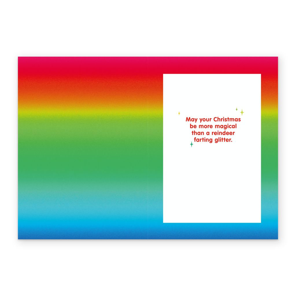 Message inside reads: May your Christmas be more magical than a reindeer farting glitter.