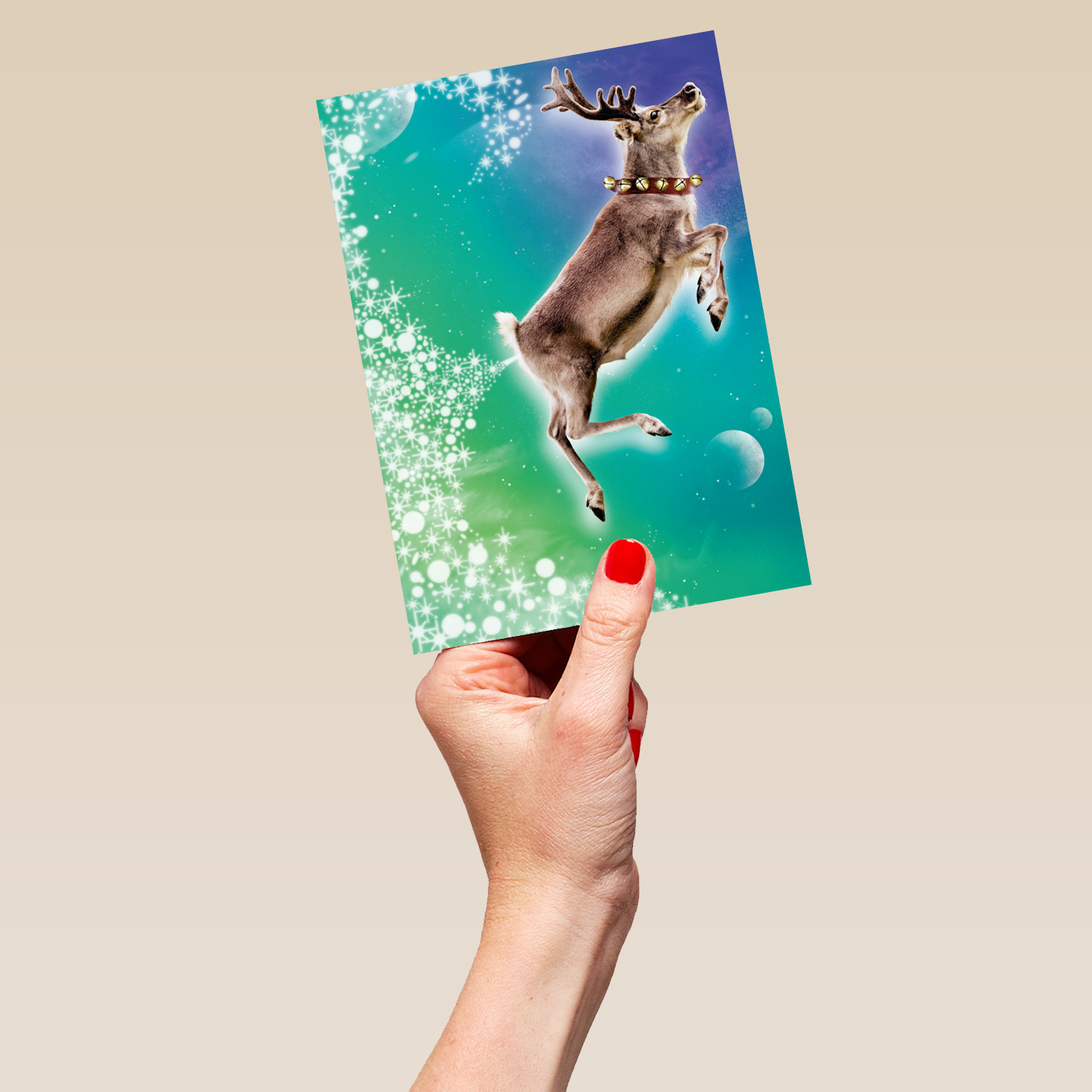 Personalised Funny Flying Reindeer Christmas Card