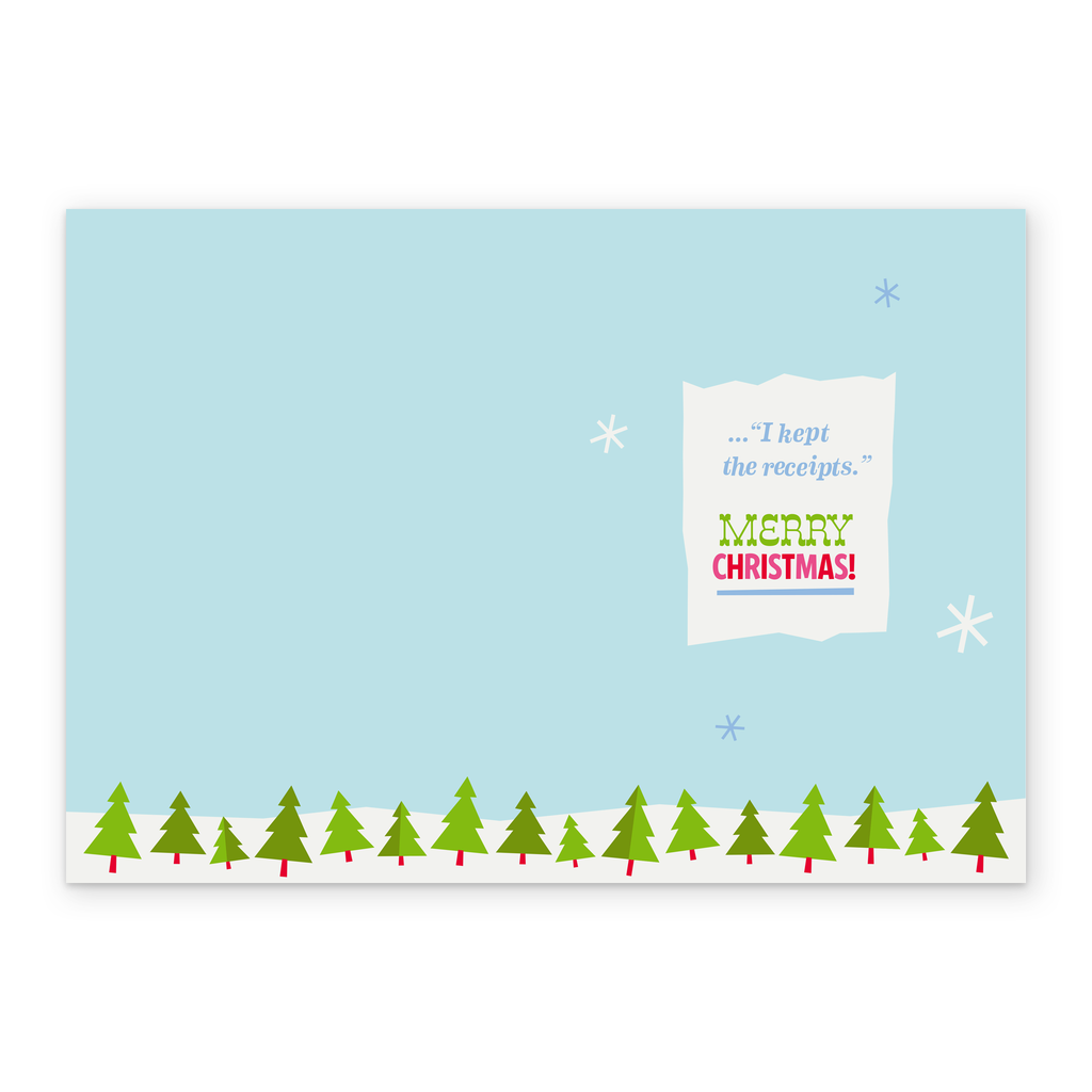 Message inside reads: ..."I kept the receipts." Merry Christmas!
