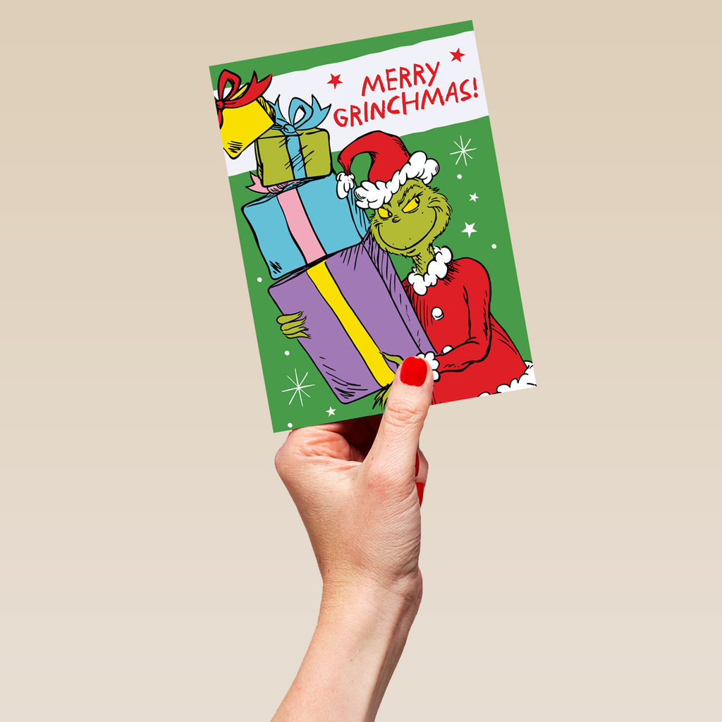 Show them you care with a personalised funny The Grinch Christmas card from Hallmark. Our Christmas cards are printed on premium quality, FSC®-certified card & delivered nationwide. This card is available as standard 12cm by 16.7cm and large 15.5cm by 21.6cm.