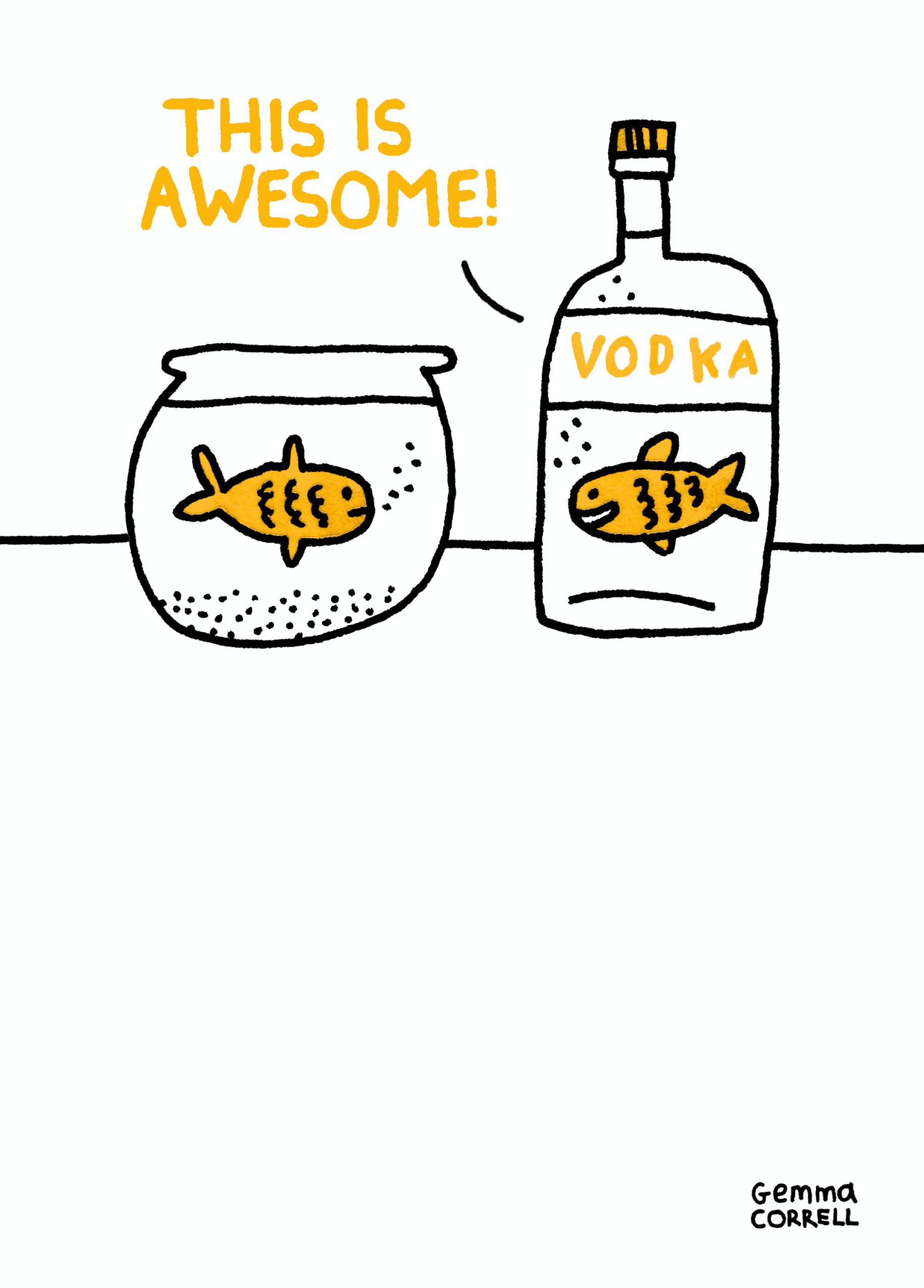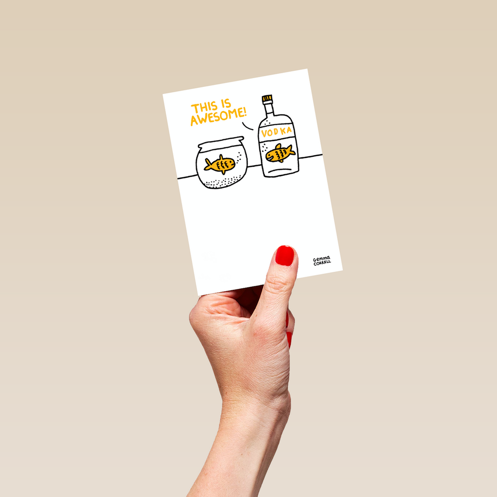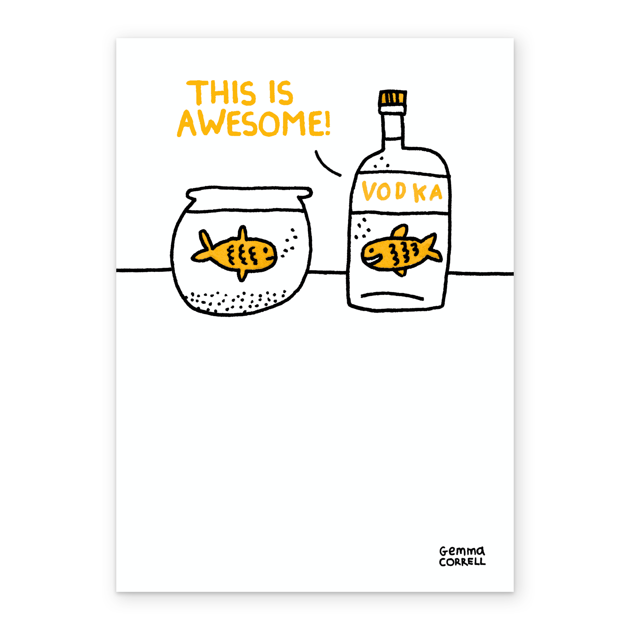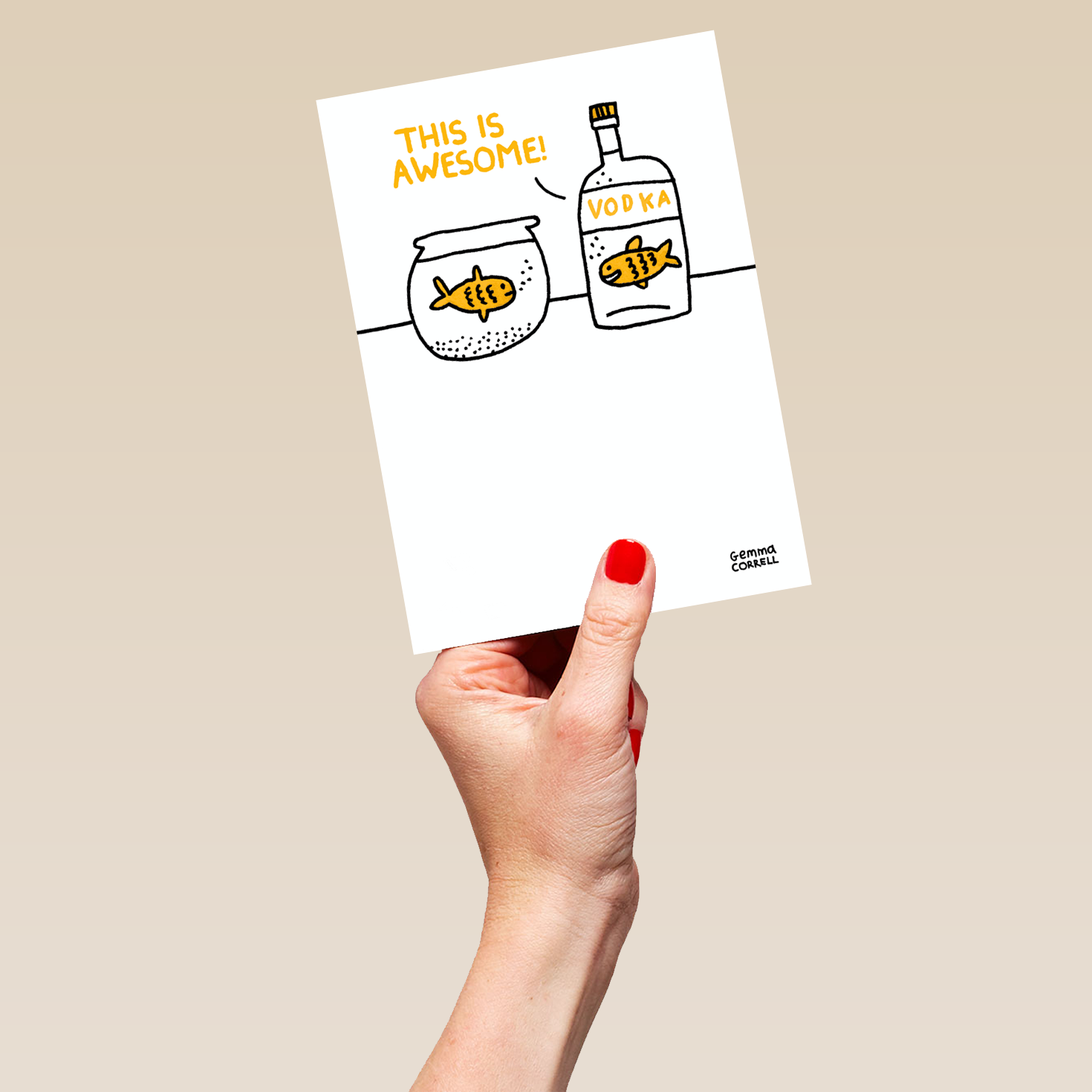 Personalised Funny Illustrated Cartoon Vodka Goldfish Birthday Card