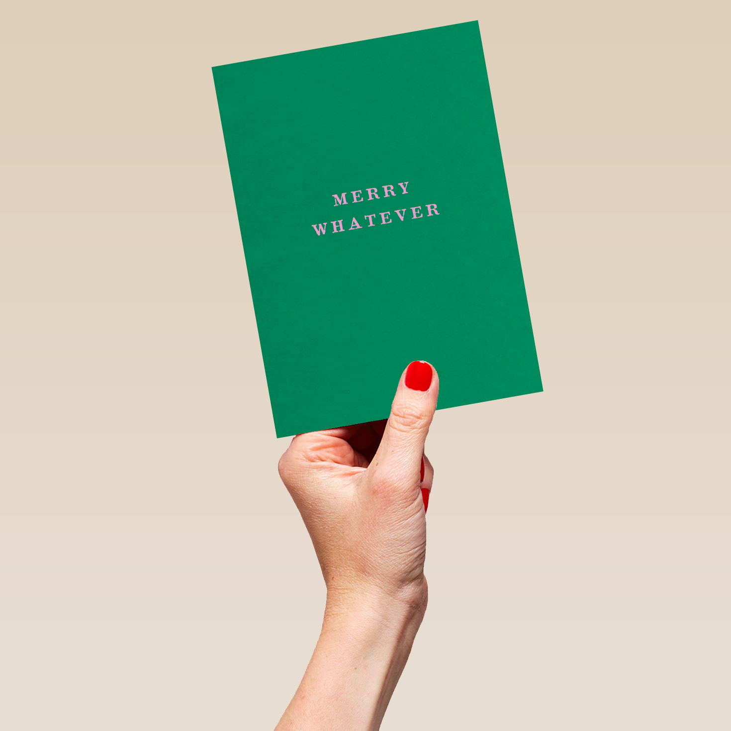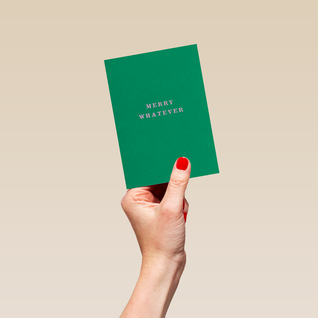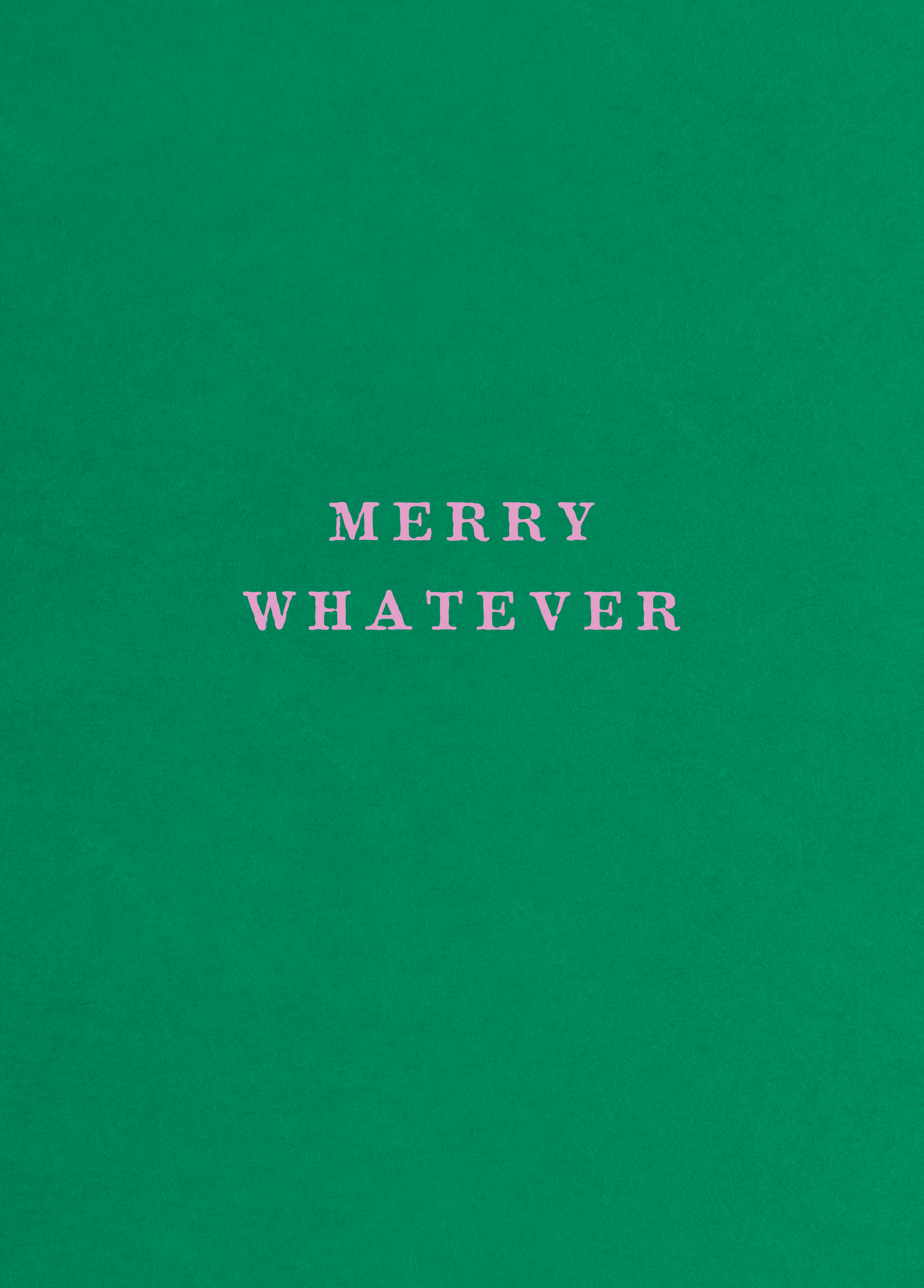 Show them you care with a personalised funny merry whatever Christmas card from Hallmark. Our greetings cards are printed on premium quality, FSC®-certified card & delivered nationwide. This card is available as standard 12cm by 16.7cm and large 15.5cm by 21.6cm.