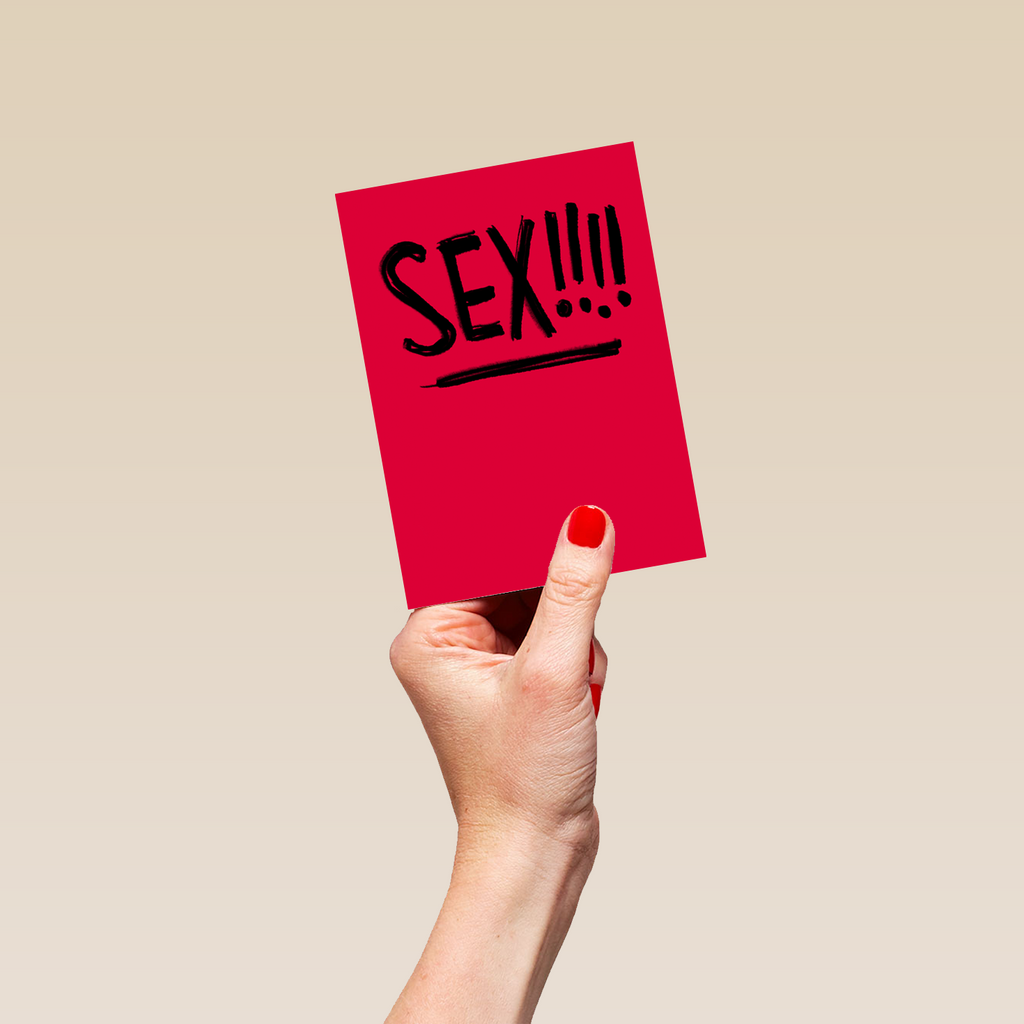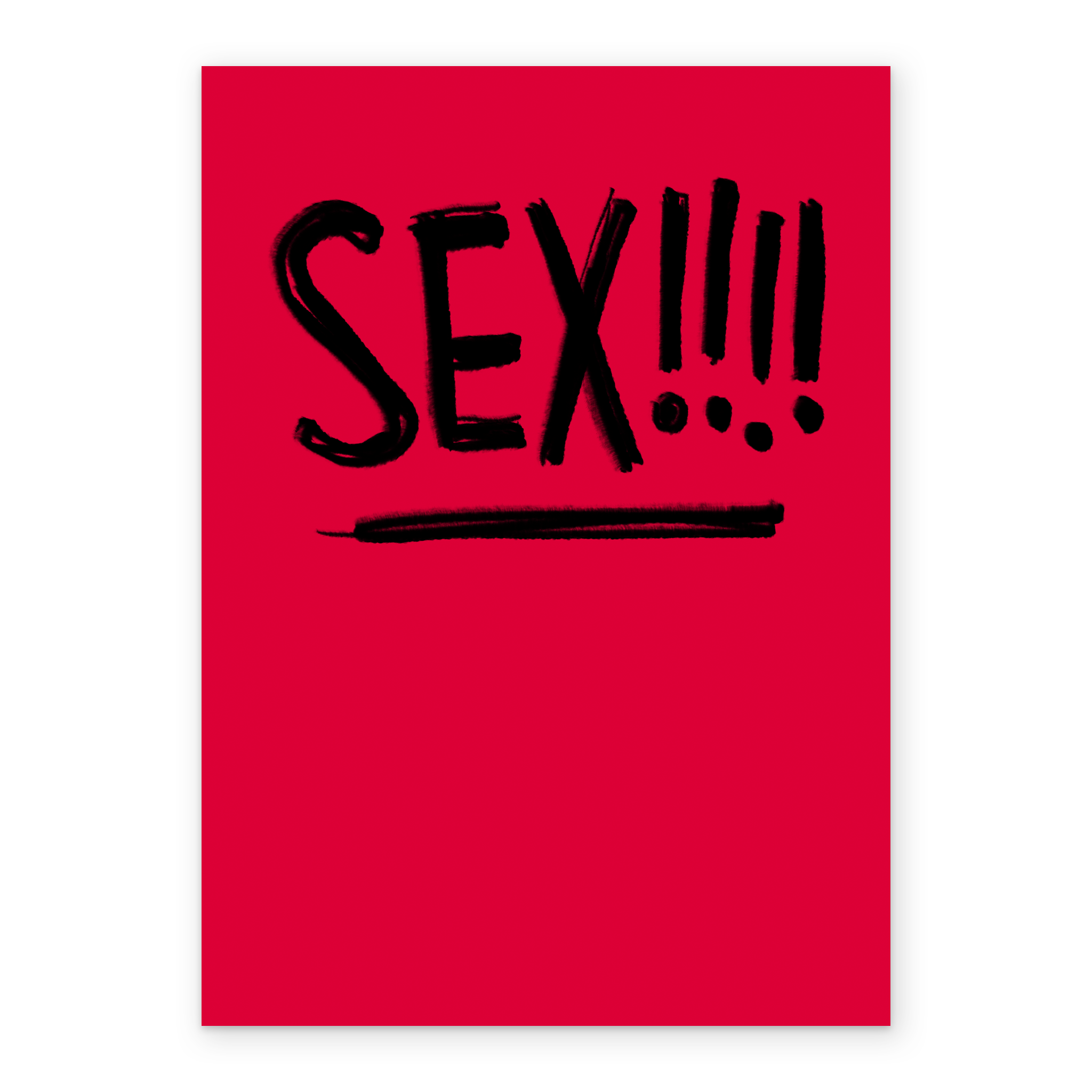 Printed on premium-quality board, this card features funny black lettering on a red background, with the message 'SEX!!!!', and comes complete with a co-ordinating white envelope.