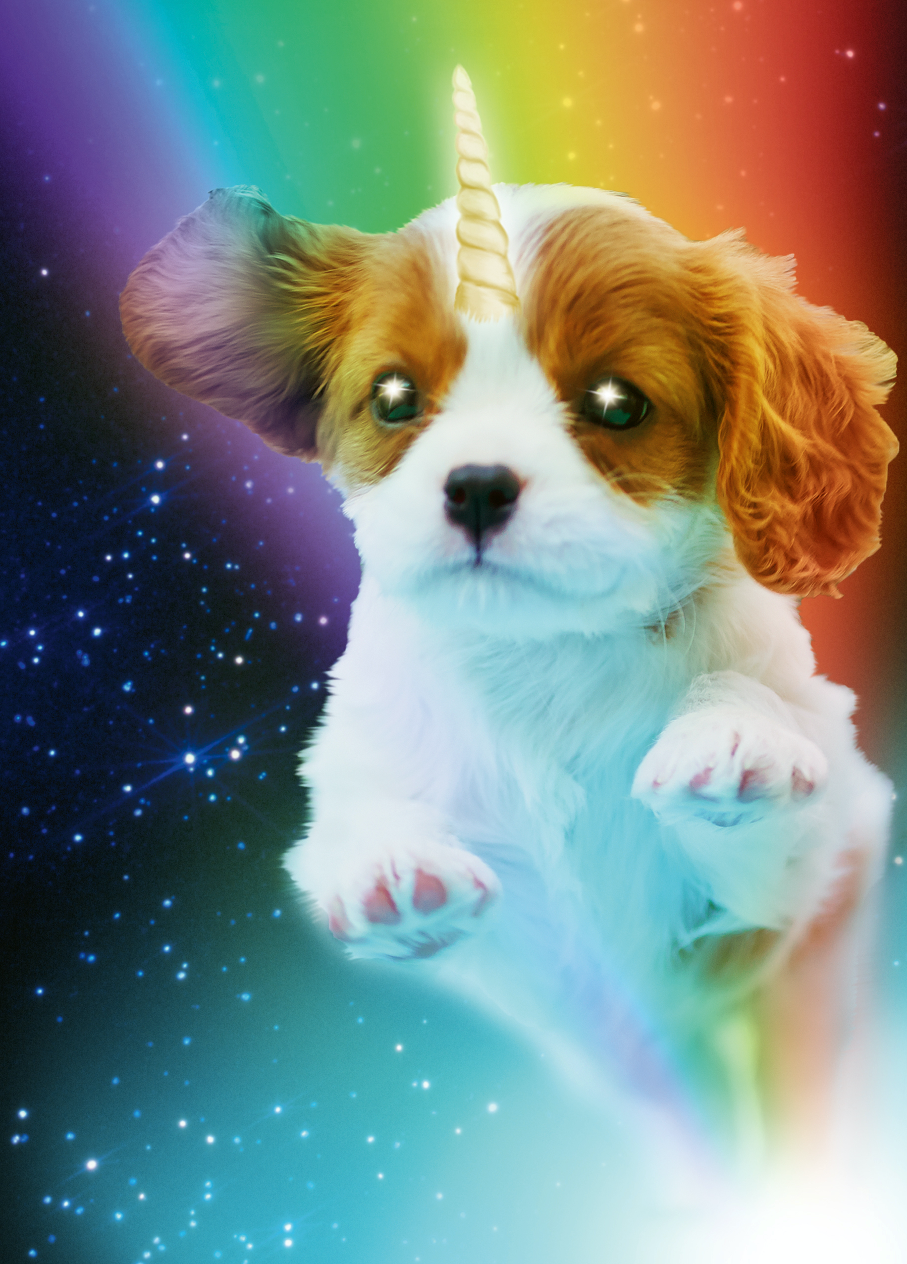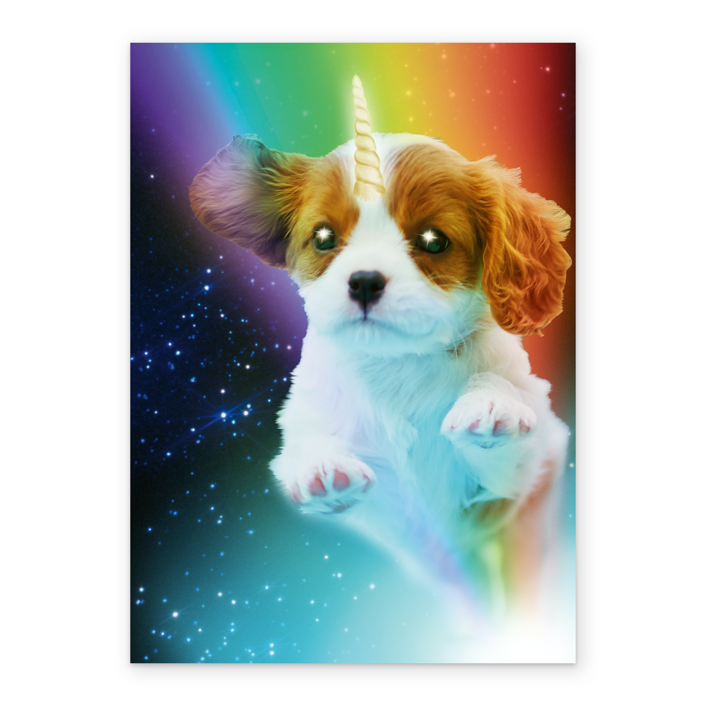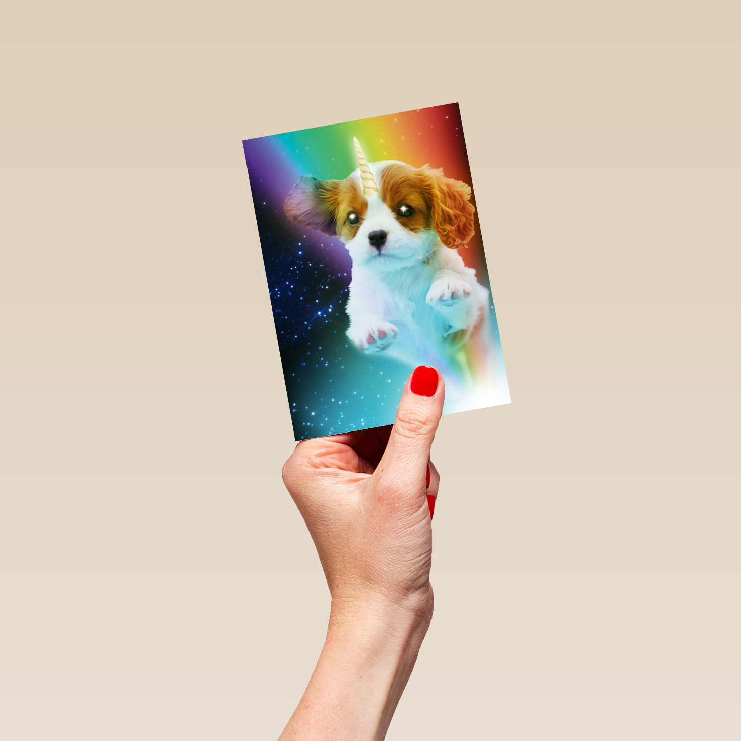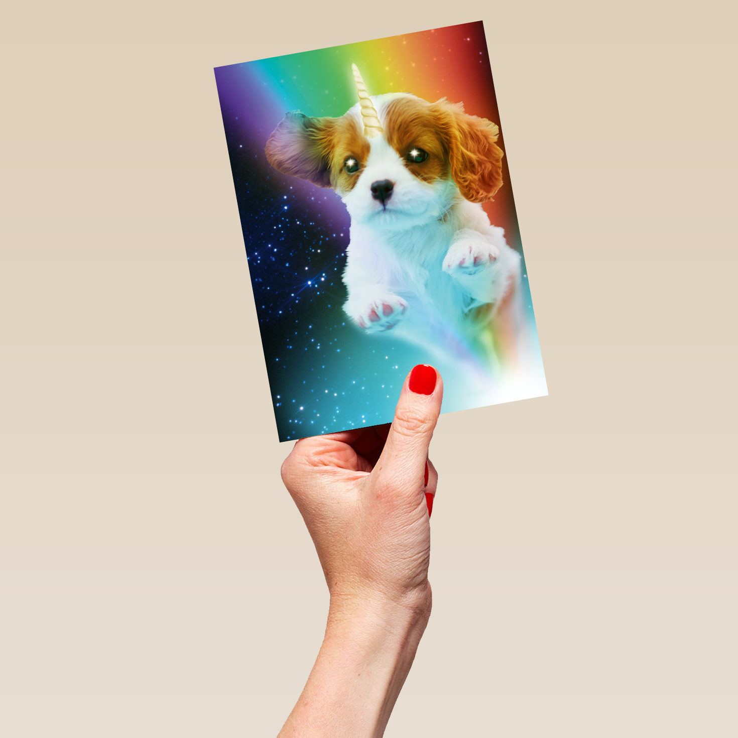 Personalised Funny Rainbow Space Puppy Birthday Card