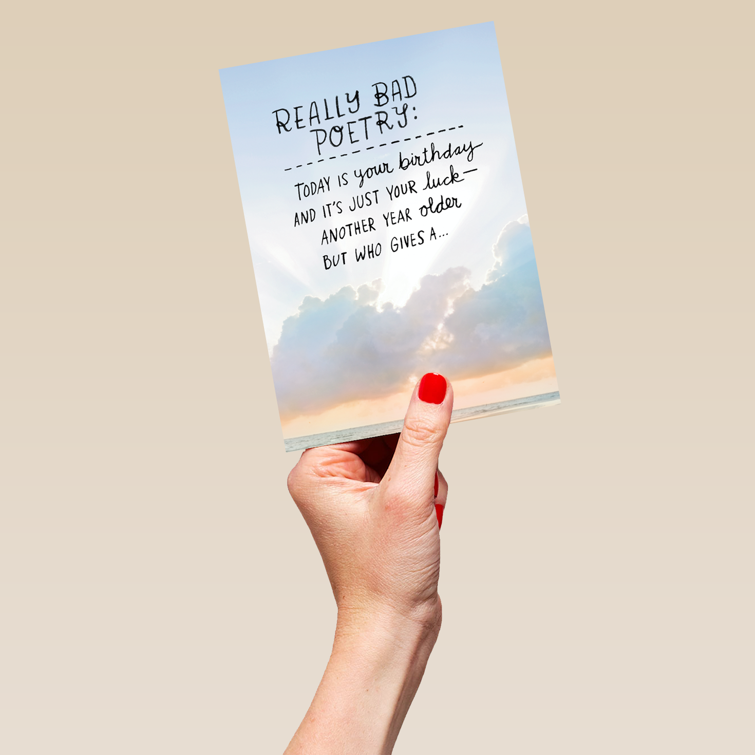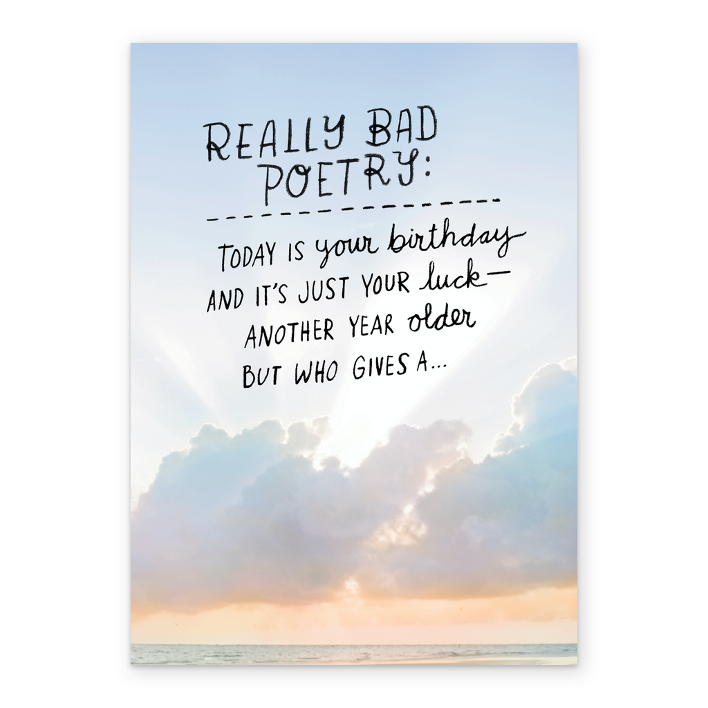 Show them you care with a personalised funny really bad poetry birthday card from Hallmark. Our birthday cards are printed on premium quality, FSC®-certified card & delivered nationwide.