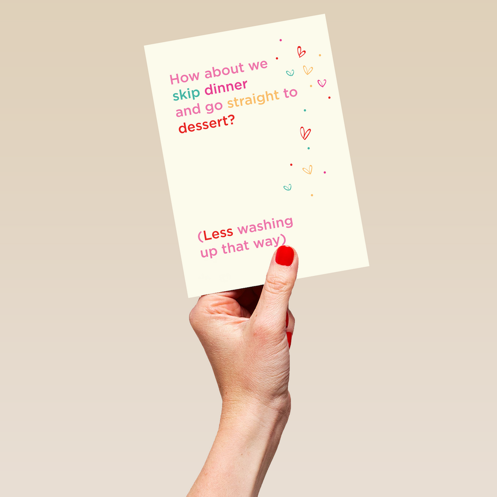 Show them you care this Valentine's Day with a personalised Funny Romantic Dinner card.