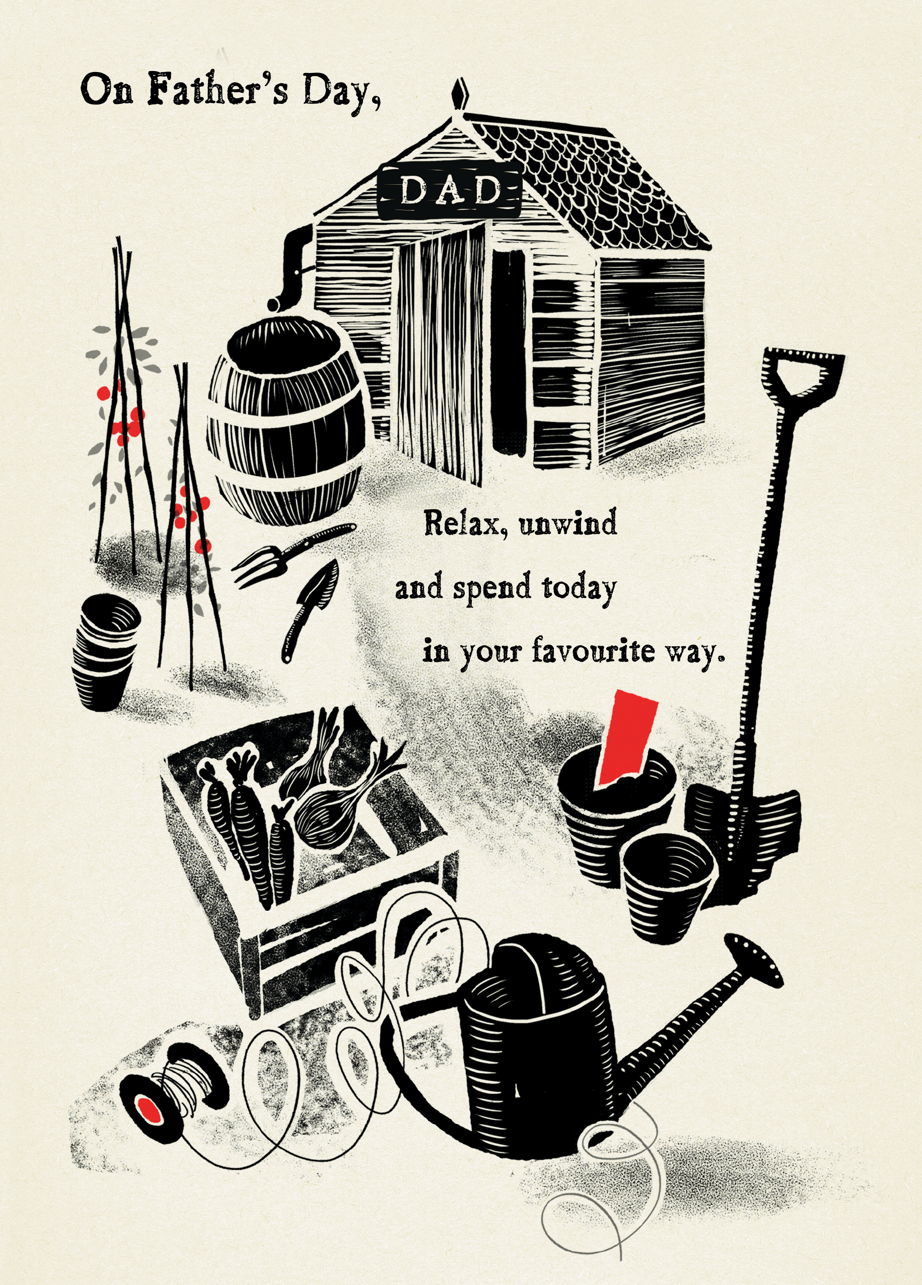 Show them you care with a personalised gardening illustration Father's Day card from Hallmark. Our Father's Day cards are printed on premium quality, FSC®-certified card & delivered nationwide.This card is available as standard 12cm by 16.7cm and large 15.5cm by 21.6cm.