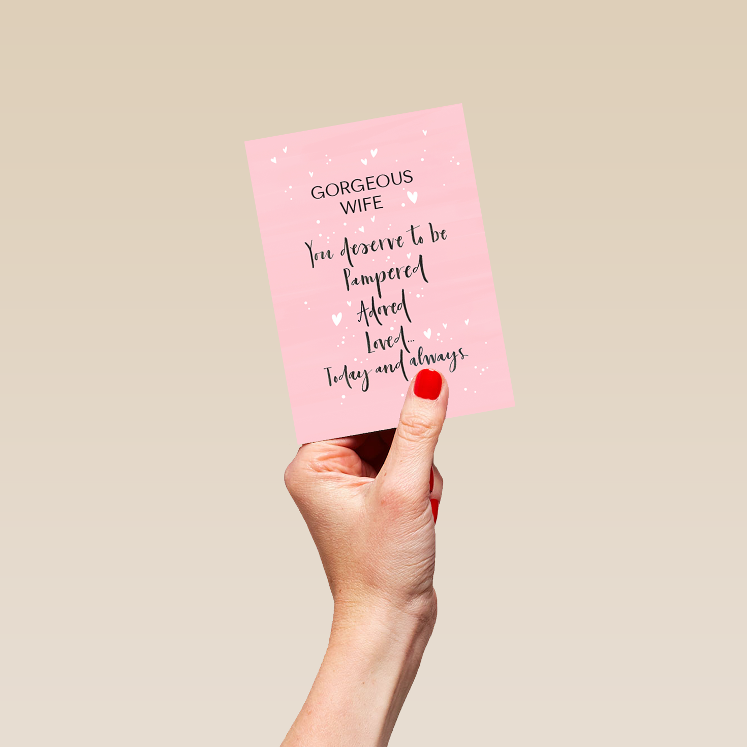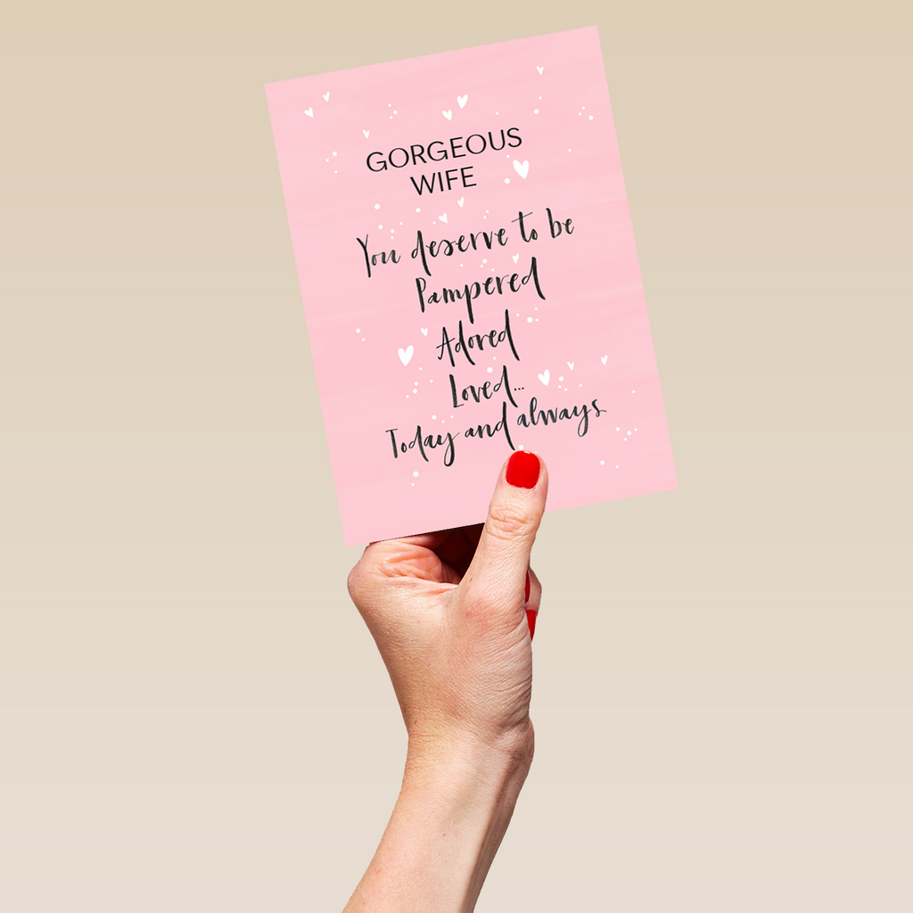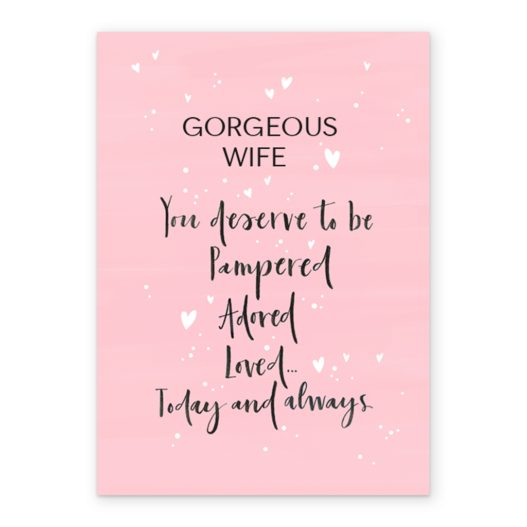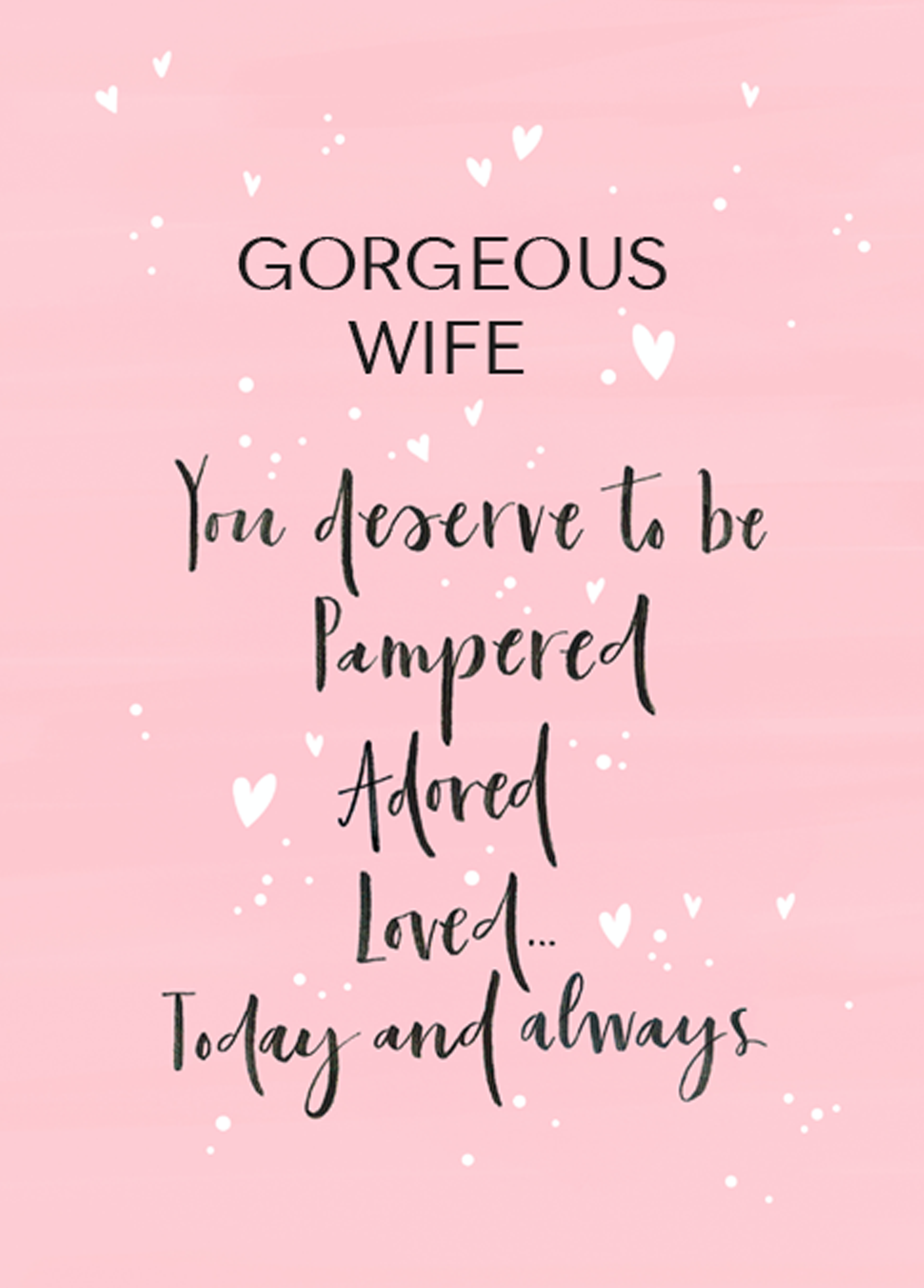 Show them you care with a personalised gorgeous wife card from Hallmark. Our birthday cards are printed on premium quality, FSC®-certified card & delivered nationwide. This card is available as standard 12cm by 16.7cm and large 15.5cm by 21.6cm.