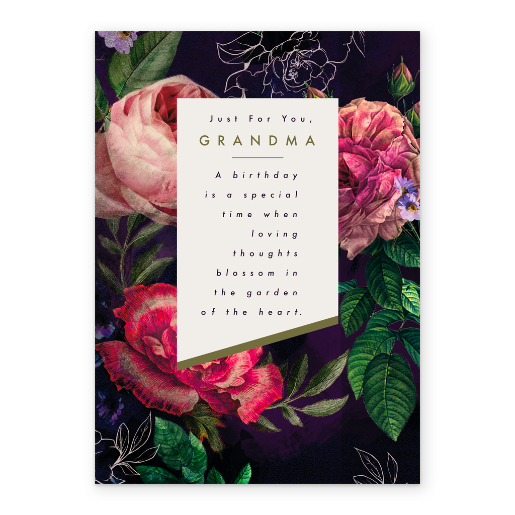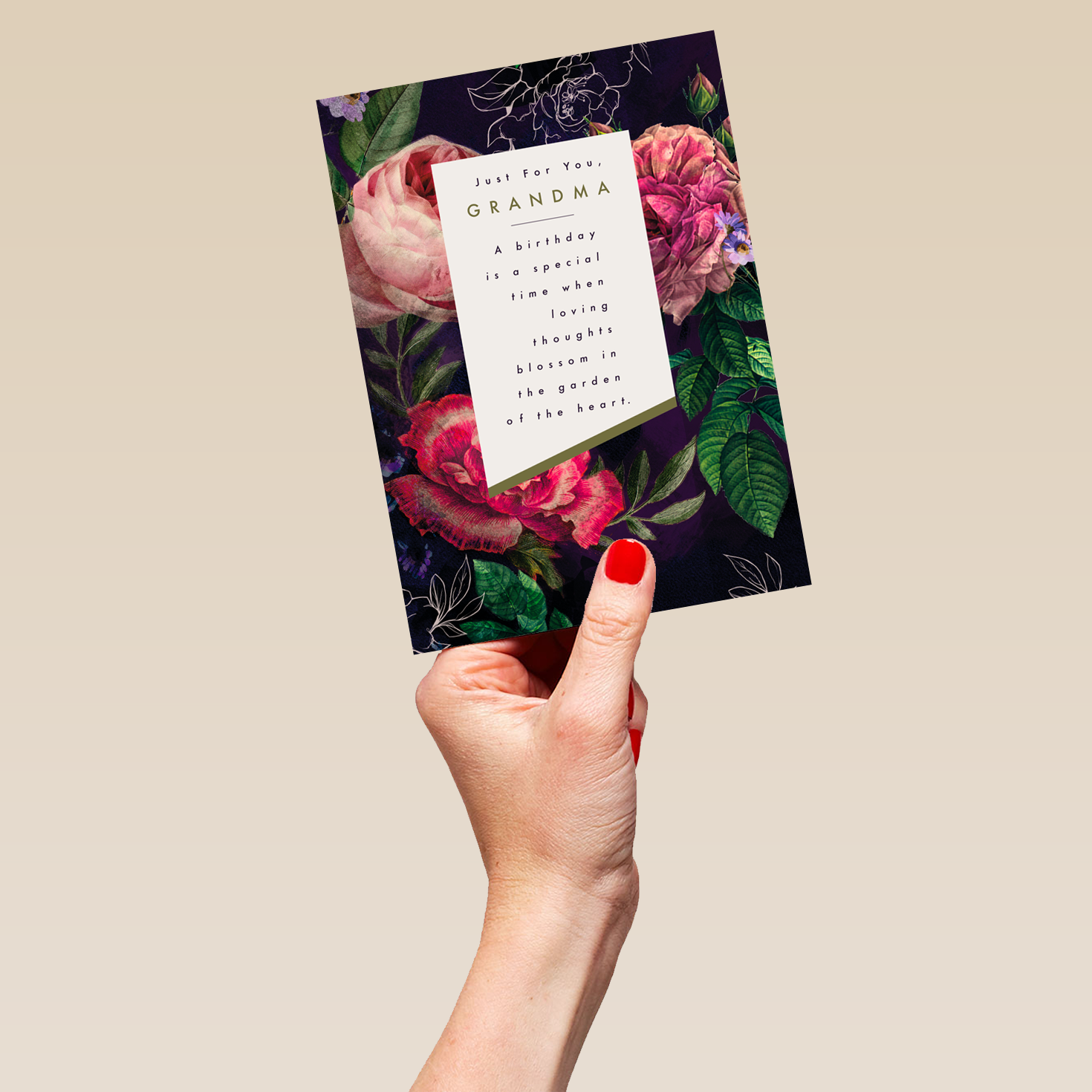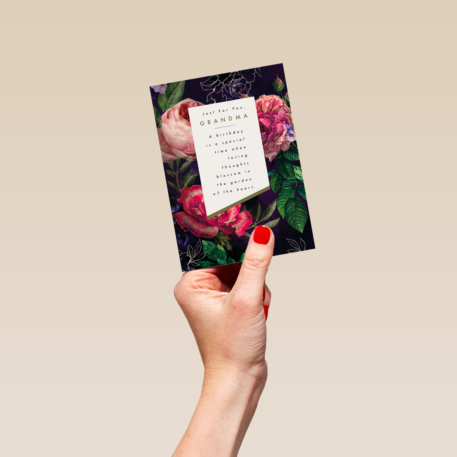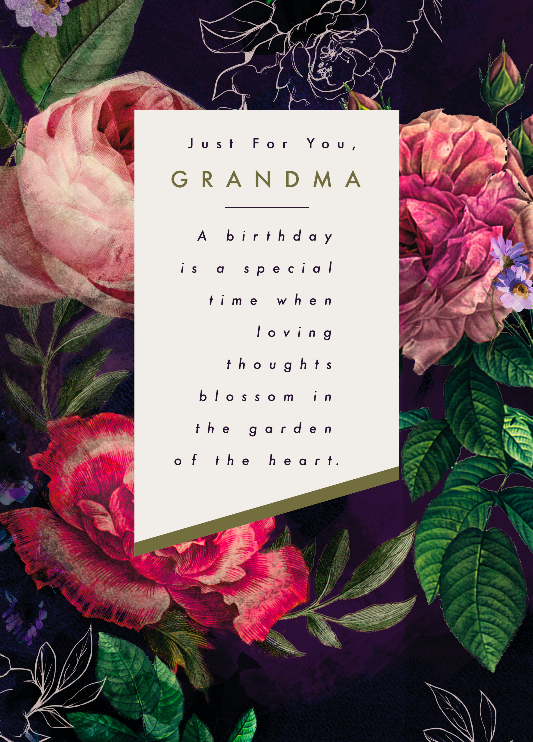Show them you care with a personalised grandma classic verse flowers card from Hallmark. Our birthday cards are printed on premium quality, FSC®-certified card & delivered nationwide. This card is available as standard 12cm by 16.7cm and large 15.5cm by 21.6cm.