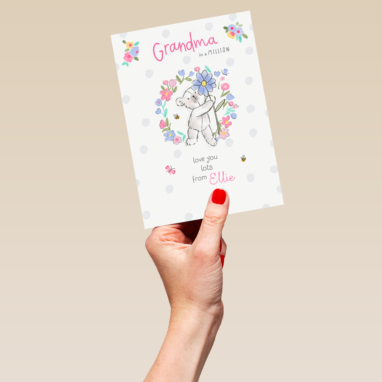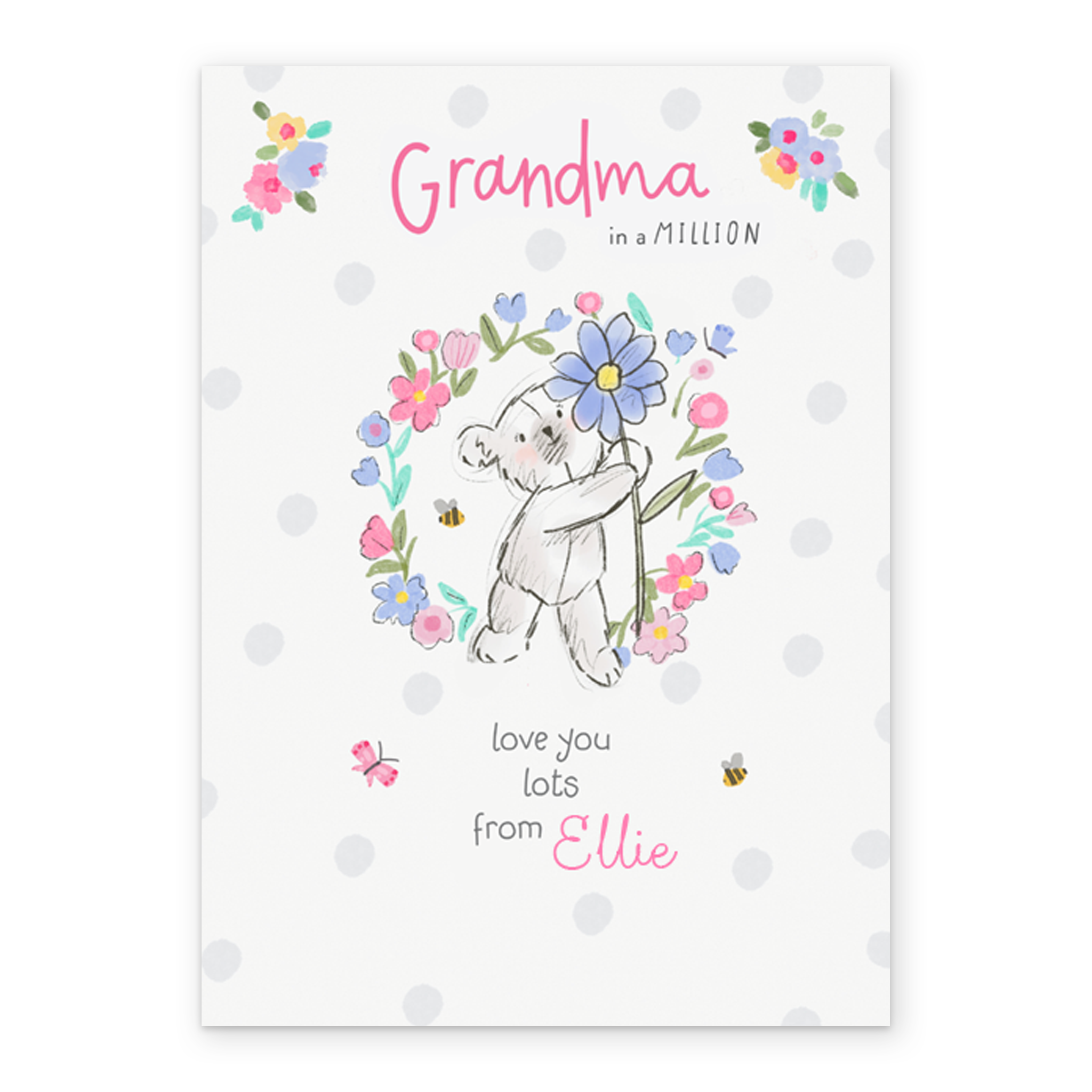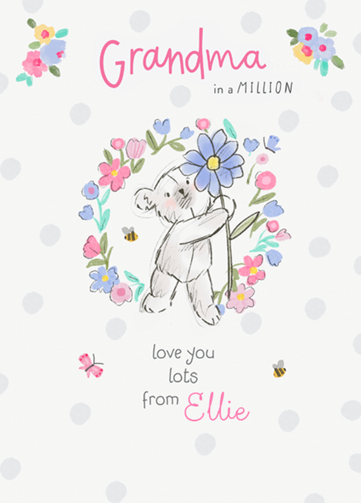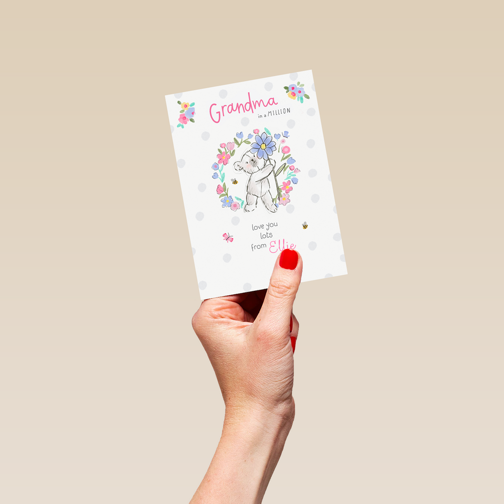 Show them you care with a personalised grandma cute bear card from Hallmark. Our birthday cards are printed on premium quality, FSC®-certified card & delivered nationwide. This card is available as standard 12cm by 16.7cm and large 15.5cm by 21.6cm.