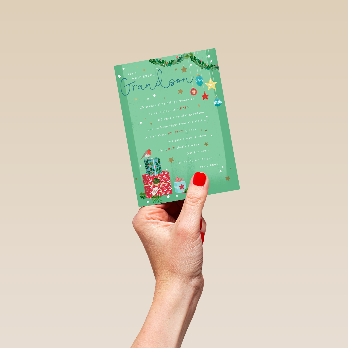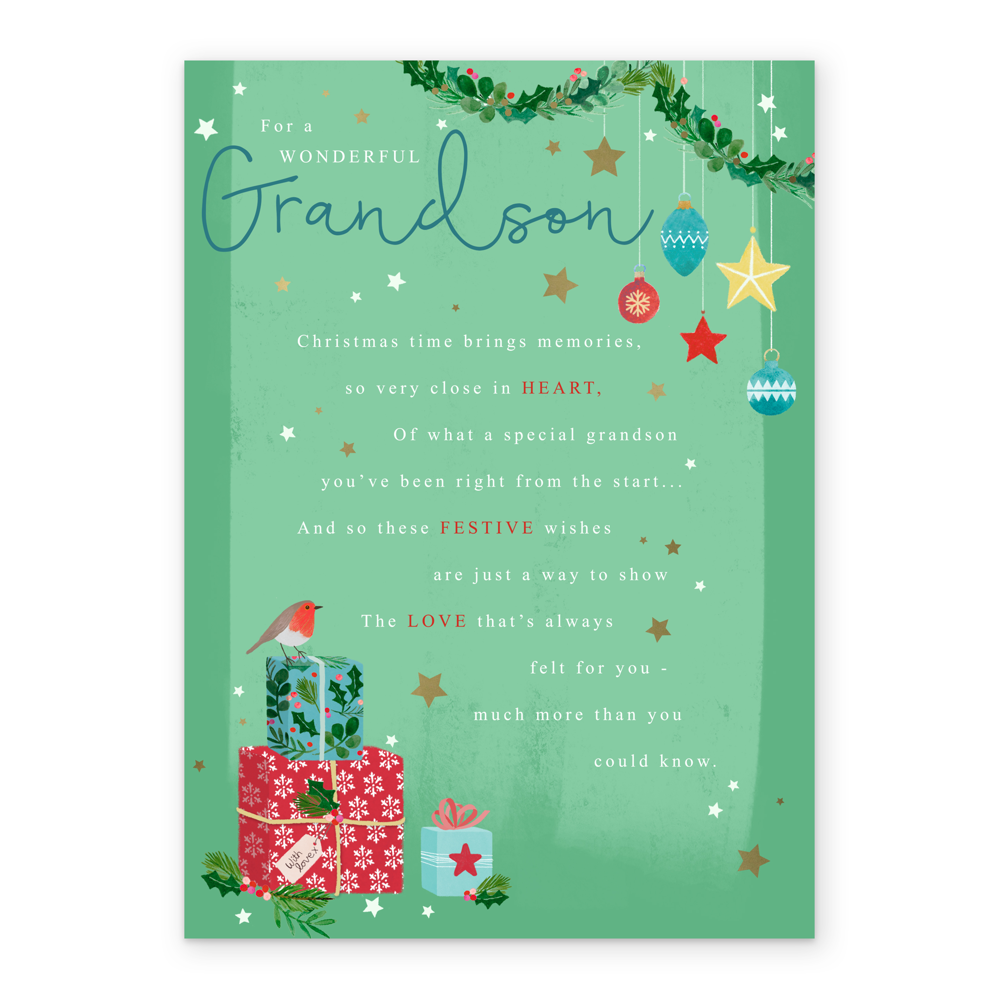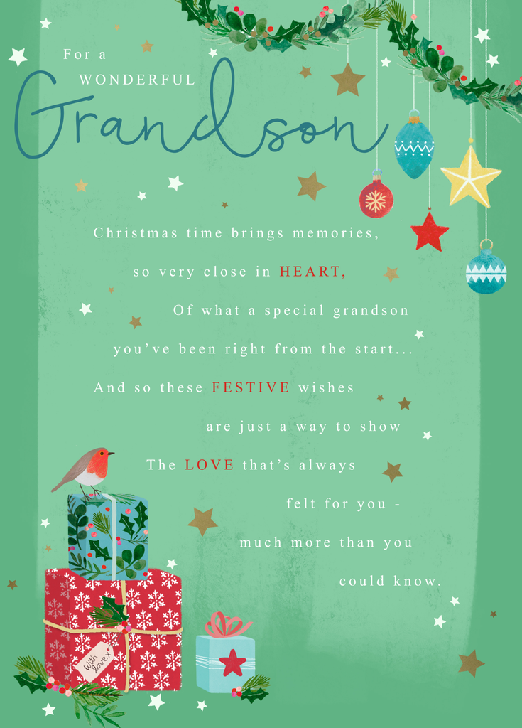 Show them you care with a personalised grandson presents verse traditional Christmas card from... View more details