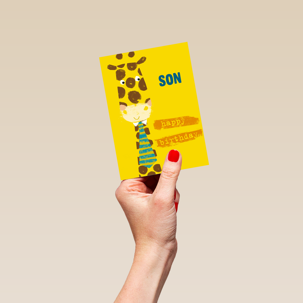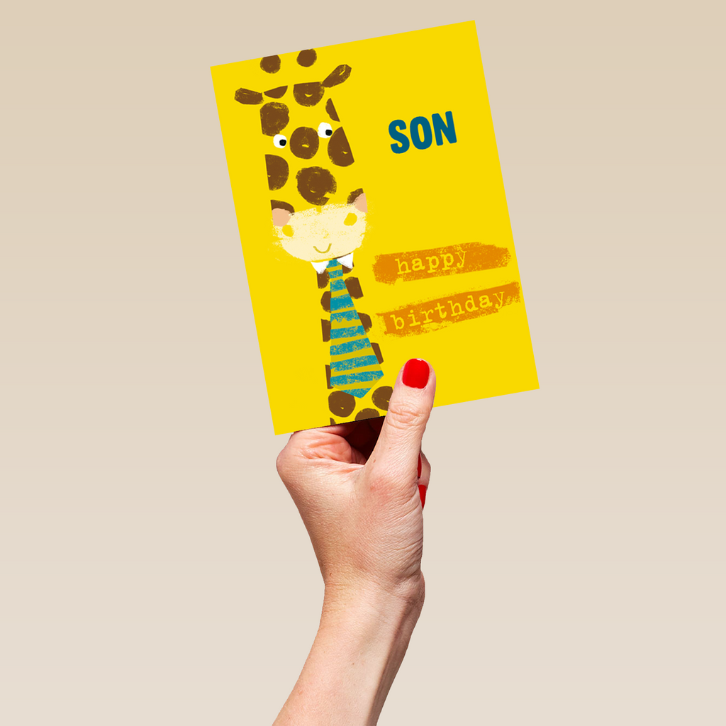 Show them you care with a personalised happy birthday son cute giraffe card from Hallmark. Our birthday cards are printed on premium quality, FSC®-certified card & delivered nationwide. This card is available as standard 12cm by 16.7cm and large 15.5cm by 21.6cm.