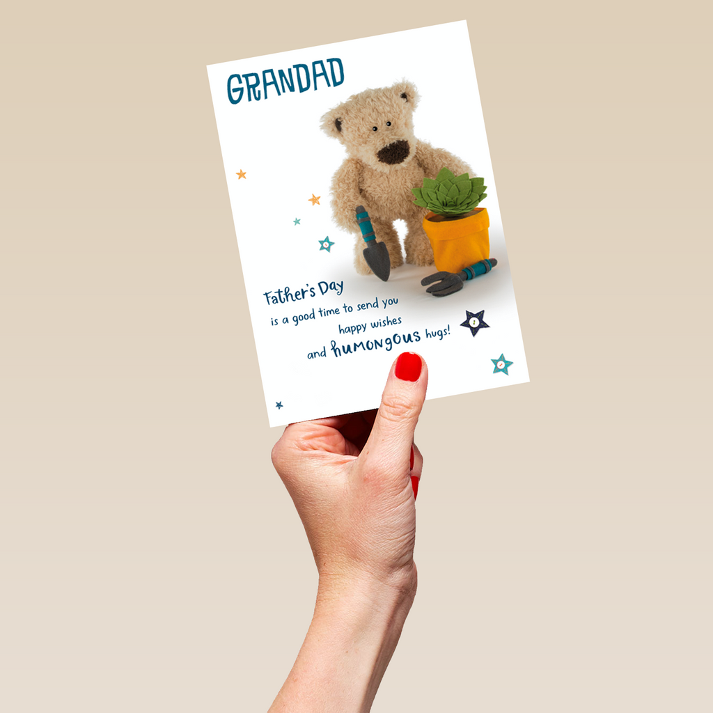 Show them you care with a personalised Father's Day grandad gardening bear card from Hallmark.... View more details