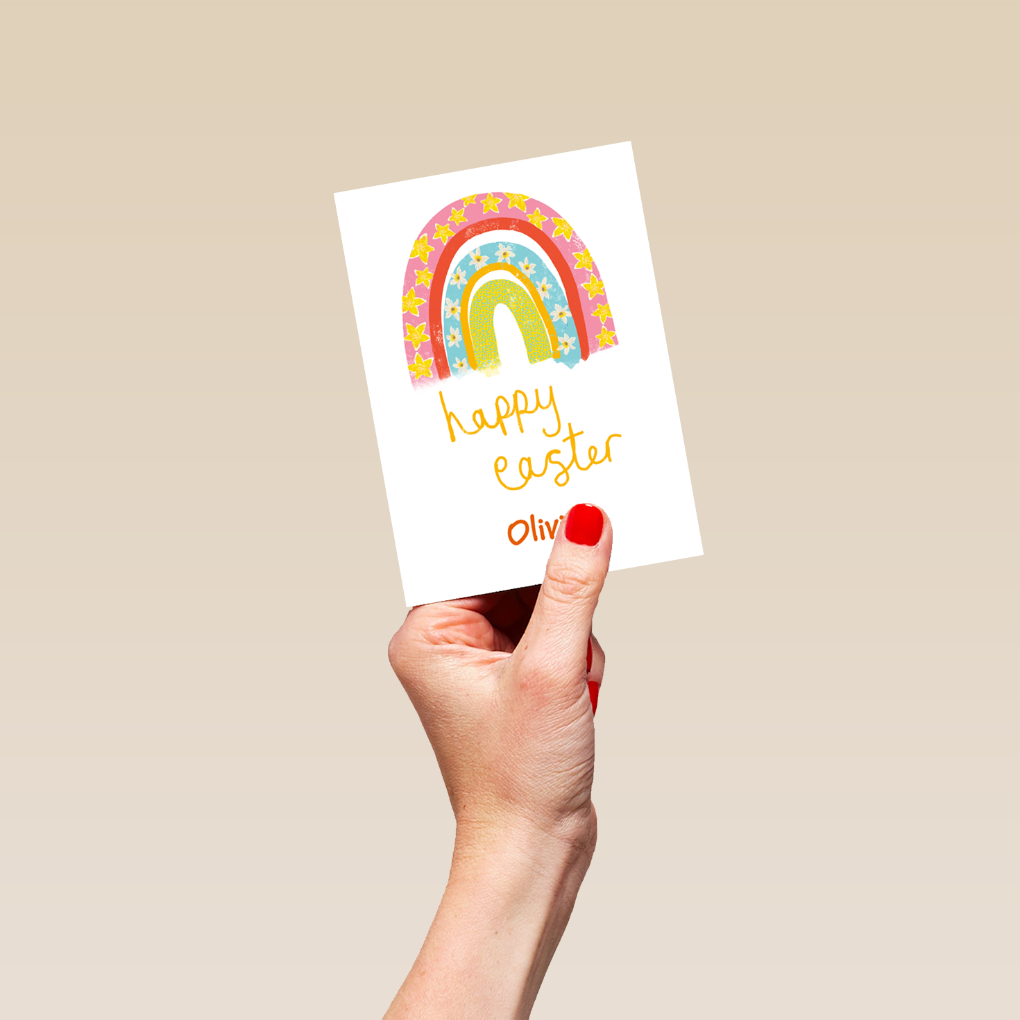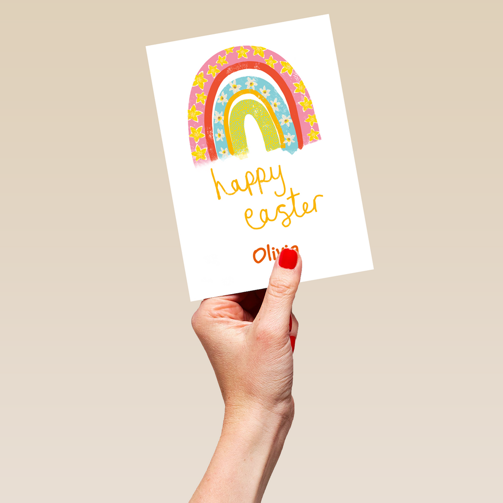 Show them you care with a personalised Happy Floral Rainbow Easter Card from Hallmark.